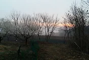 마을로 내려오니 5시 30분이 지났고, 덕흥마을 회관 앞에서 노을진 하늘이 보인다.
