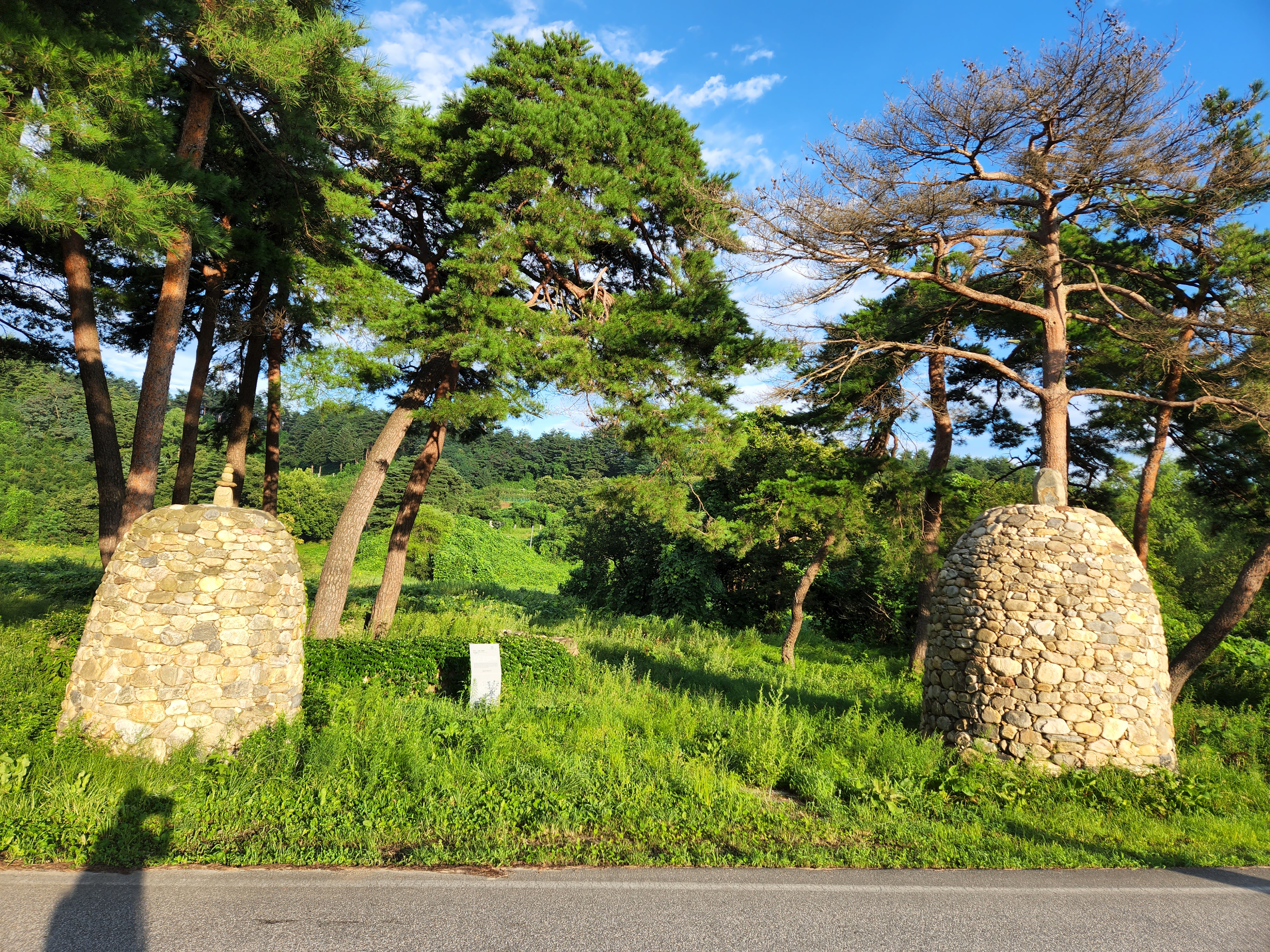 풀밭사이로 난 인적을 발견하고 뱀 나올까 겁이나서