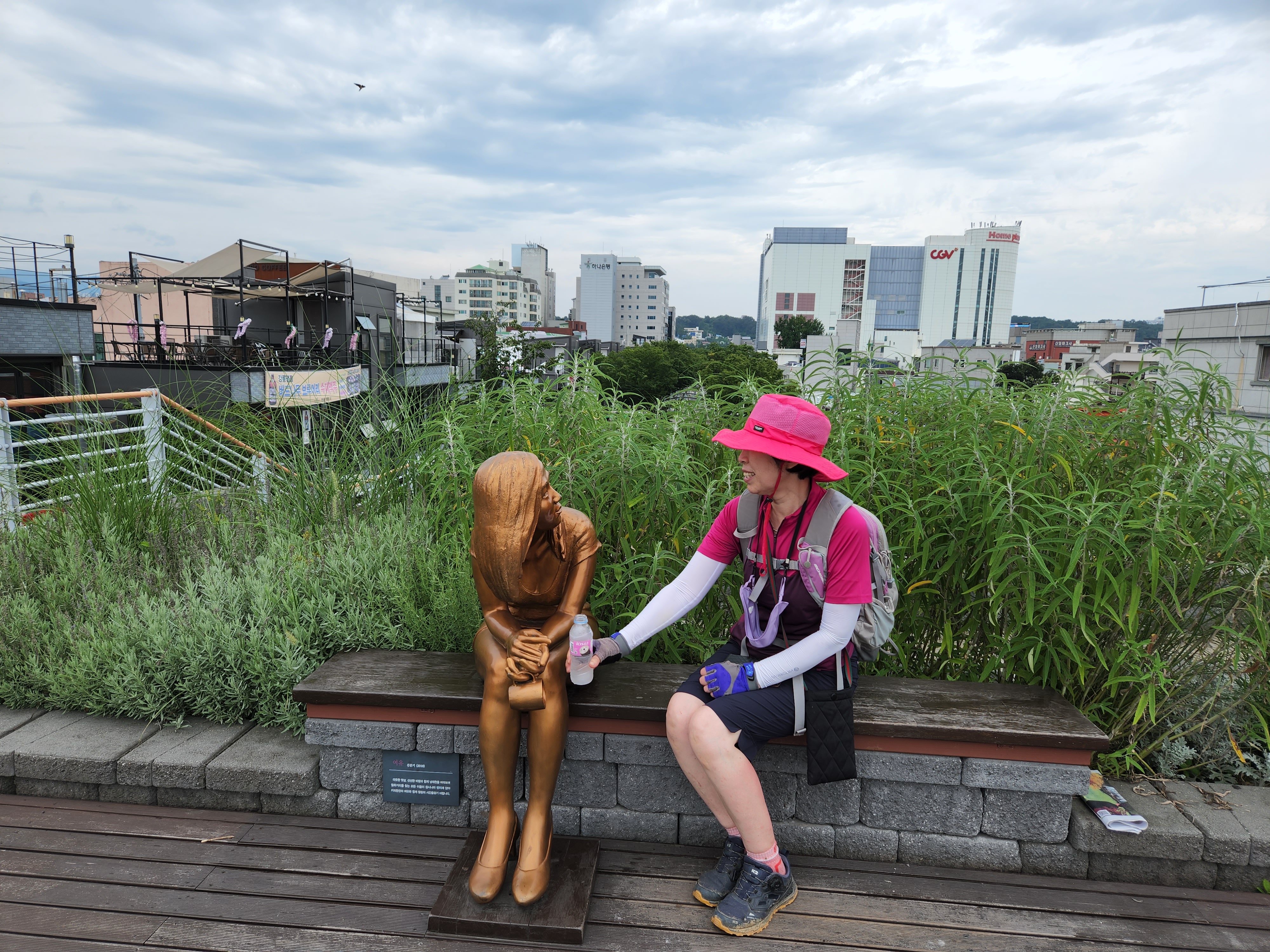 고대하던 쉼터가 나타나 다리쉼하며 간식을 먹고 간다.