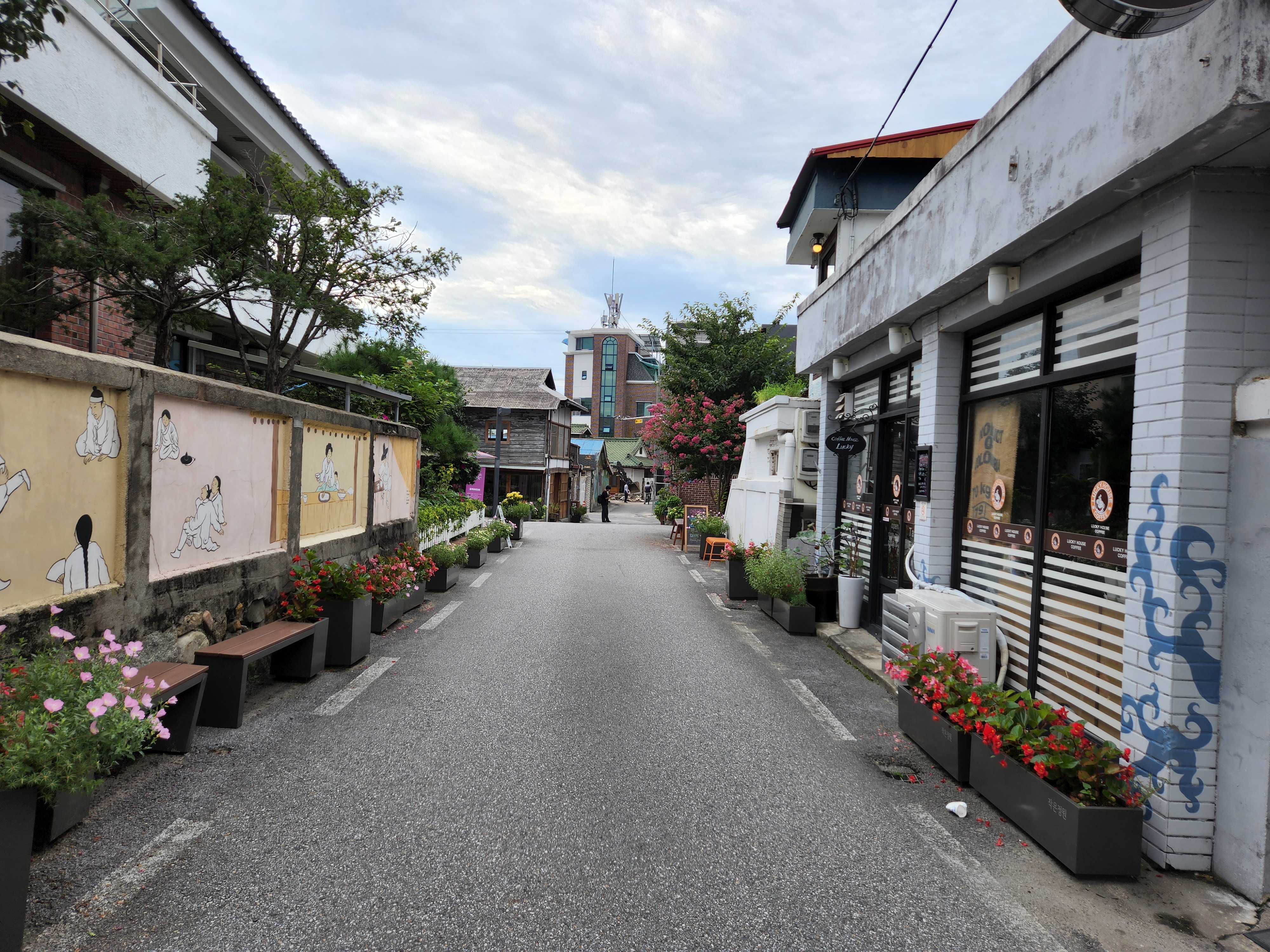예쁜꽃으로 단장되어 있는 골목에 들어서니