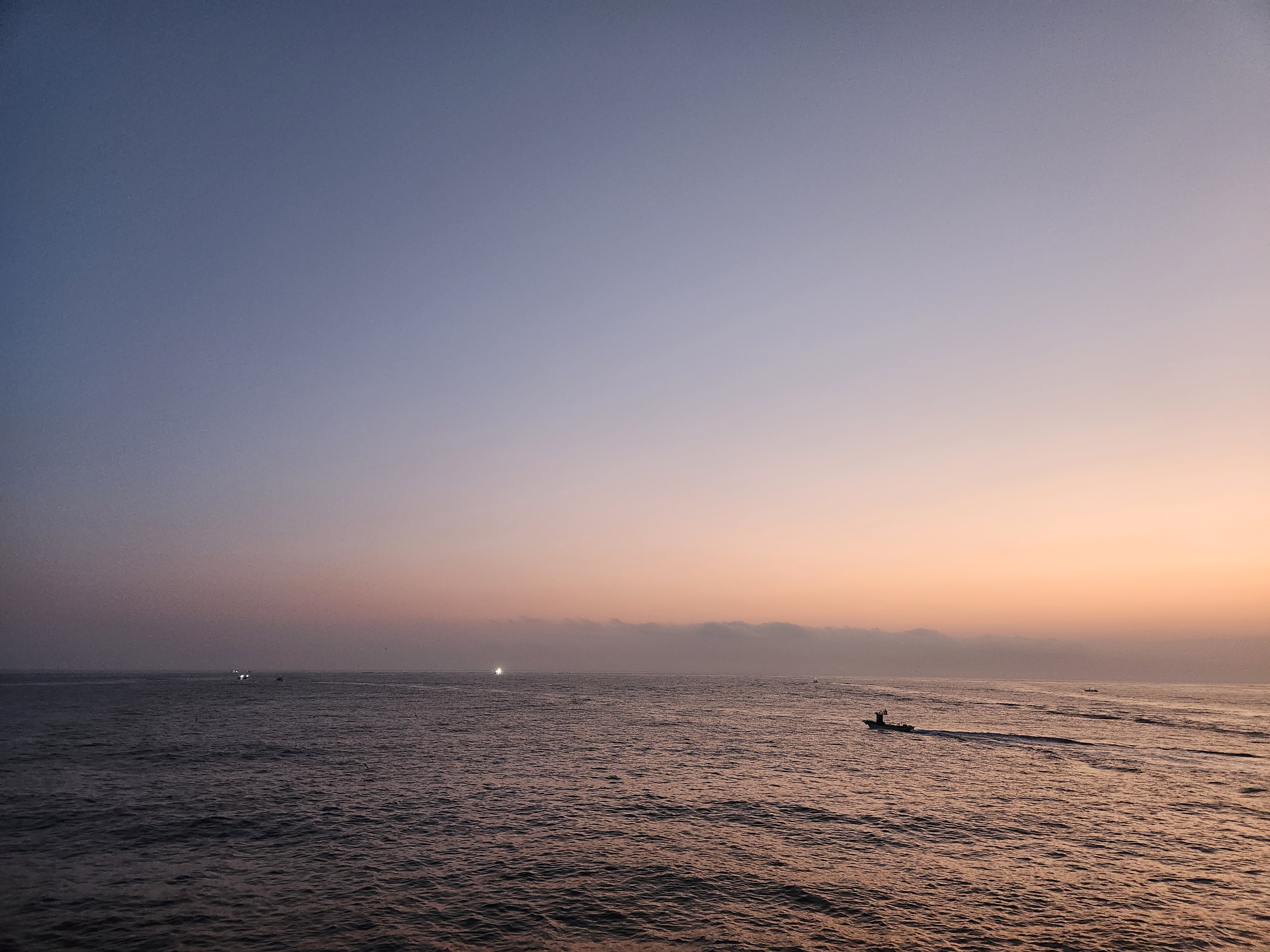 어선들이 불을 밝히고 어업활동을 하느라 분주히 오가고,