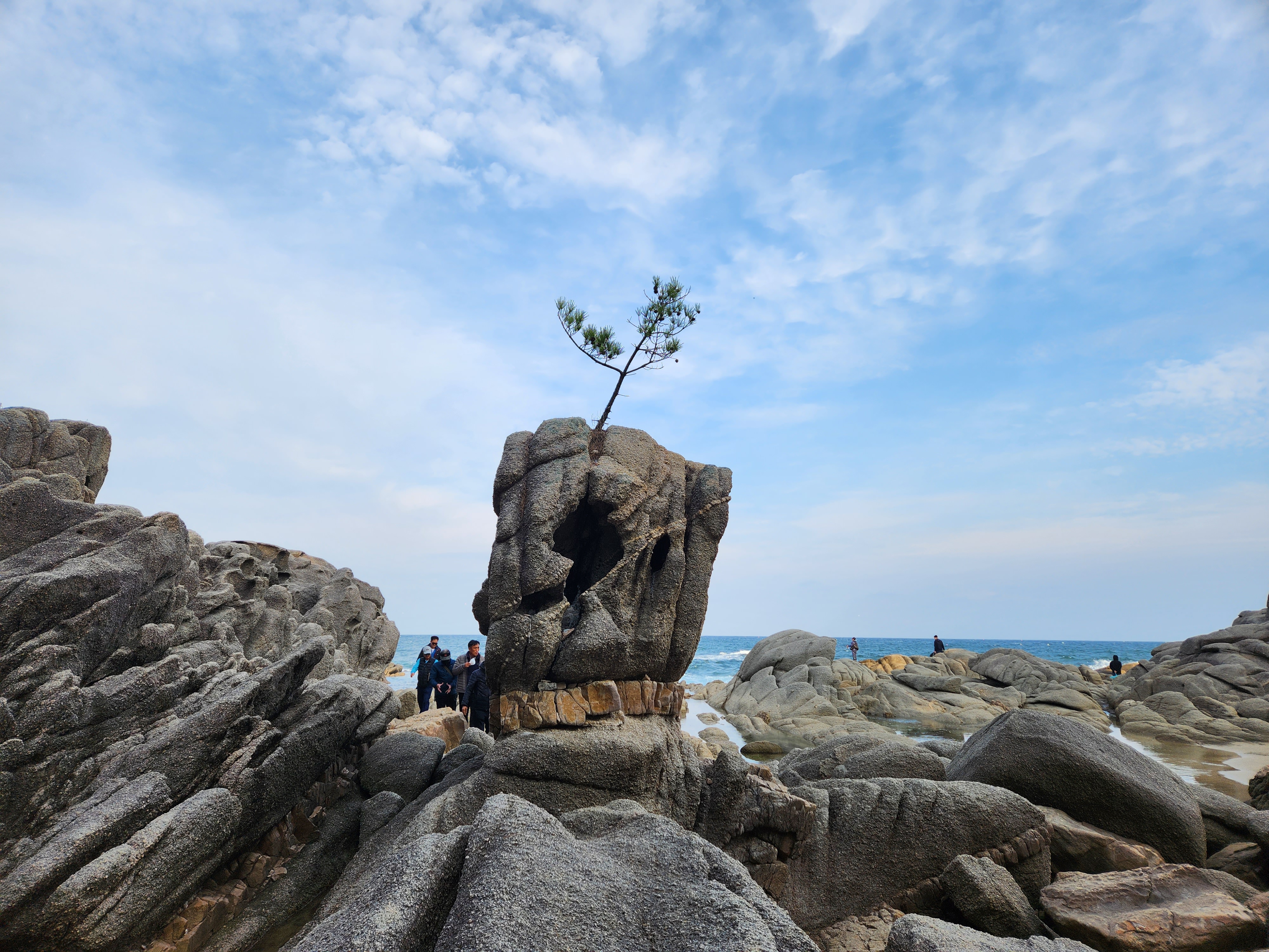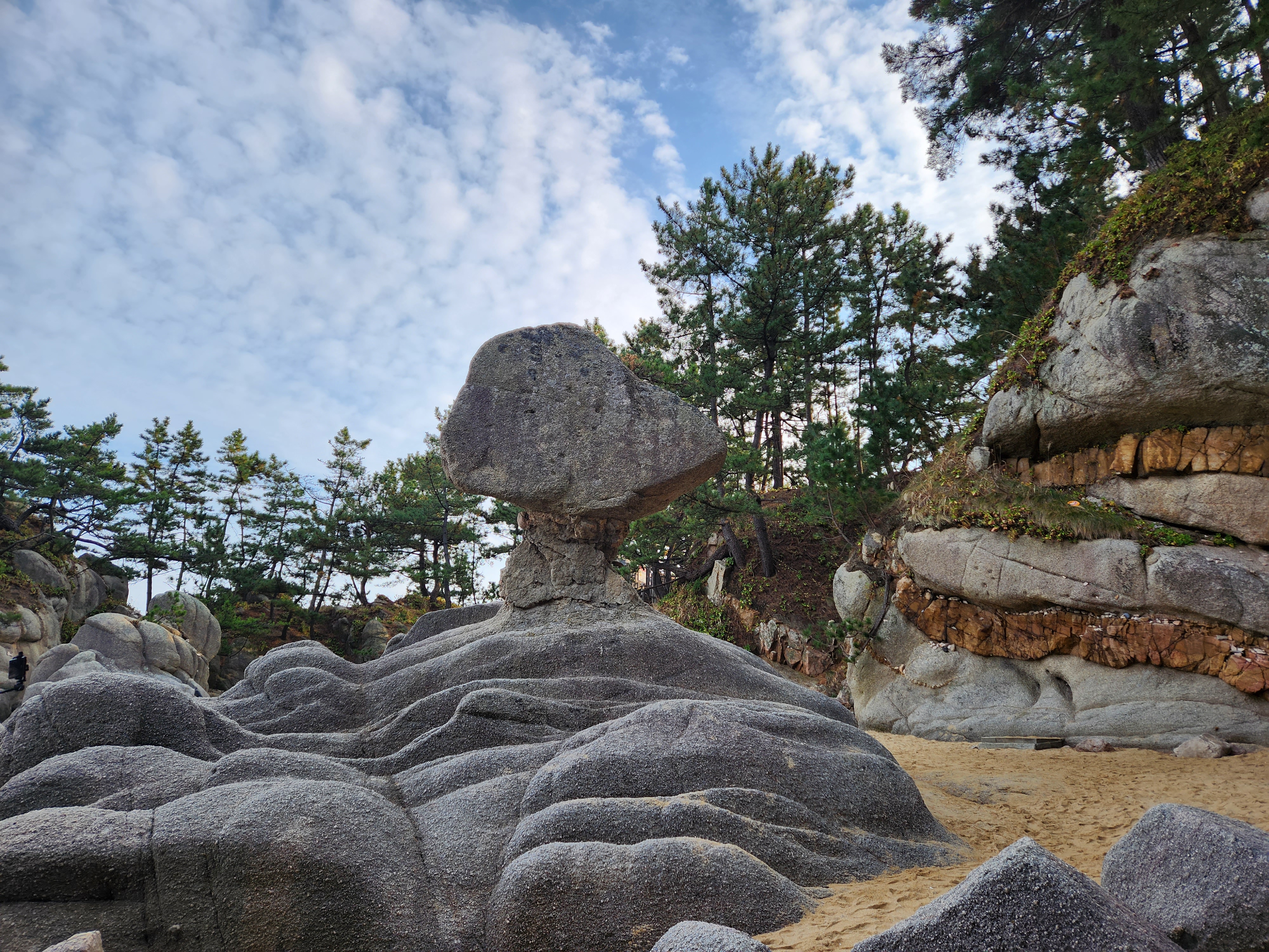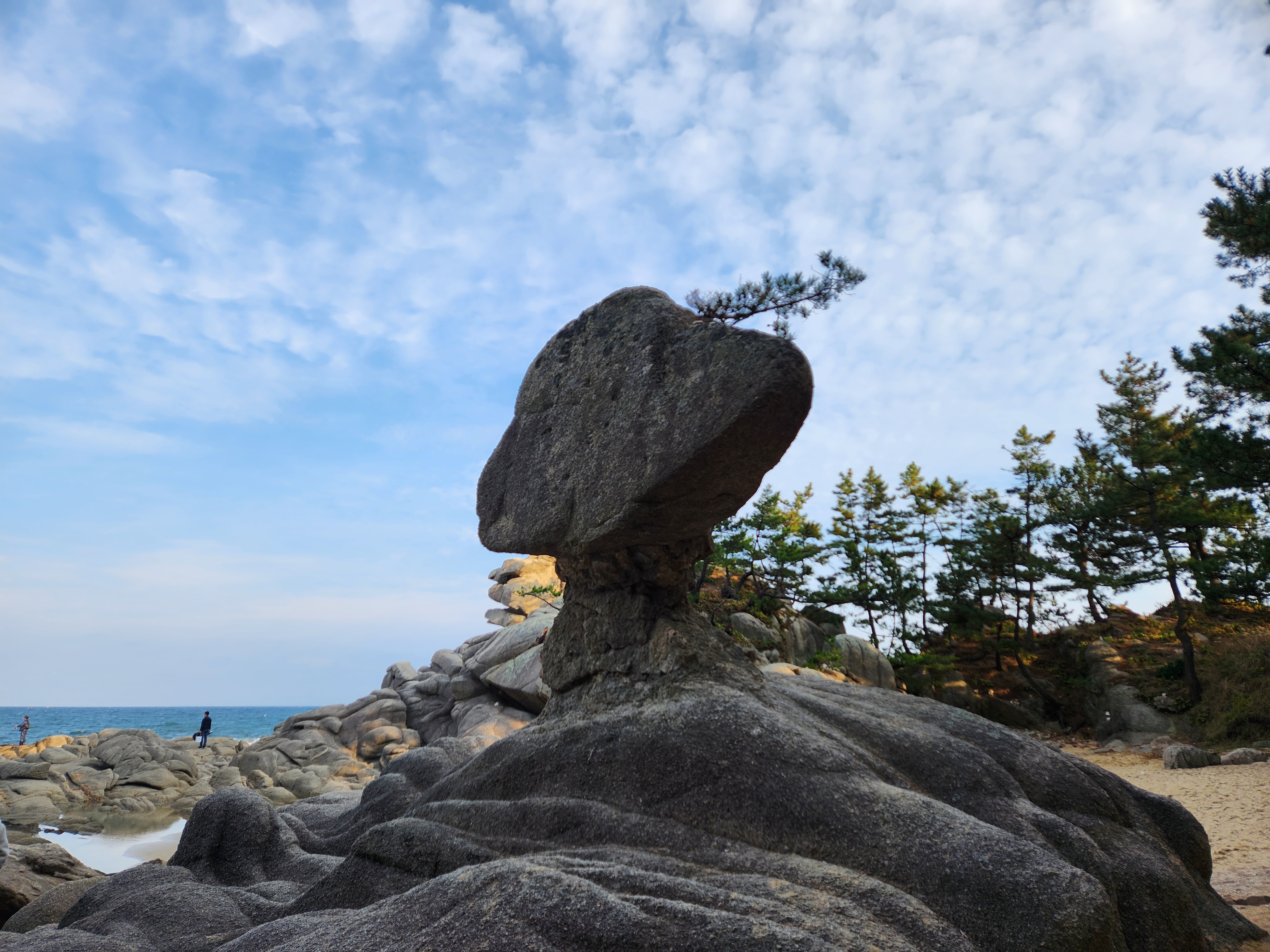 서낭바위는 송지호해변 남쪽의 화강암지대에 발달한