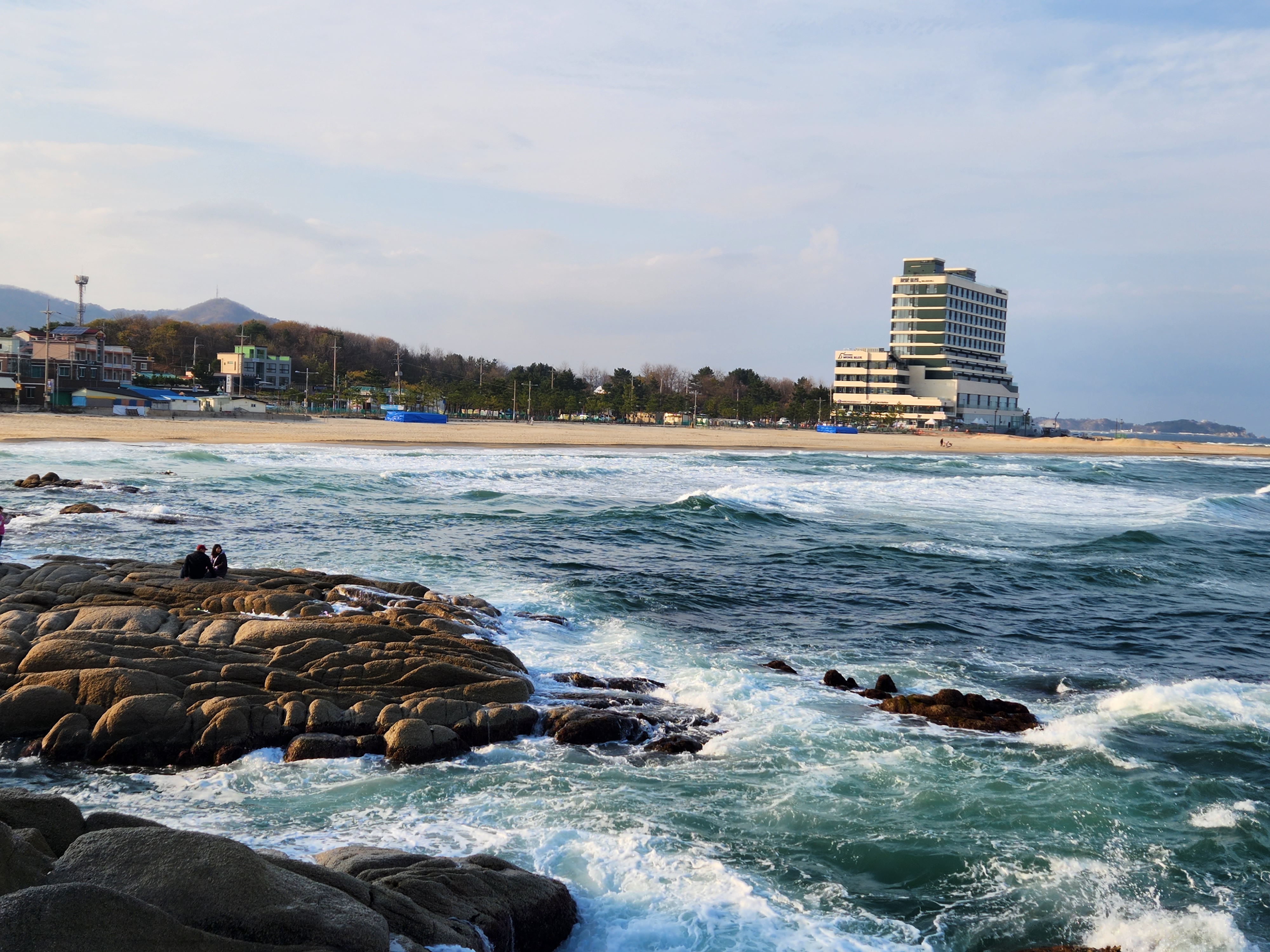 해수욕장을 막아 놓아서 들어갈 수가 없다.