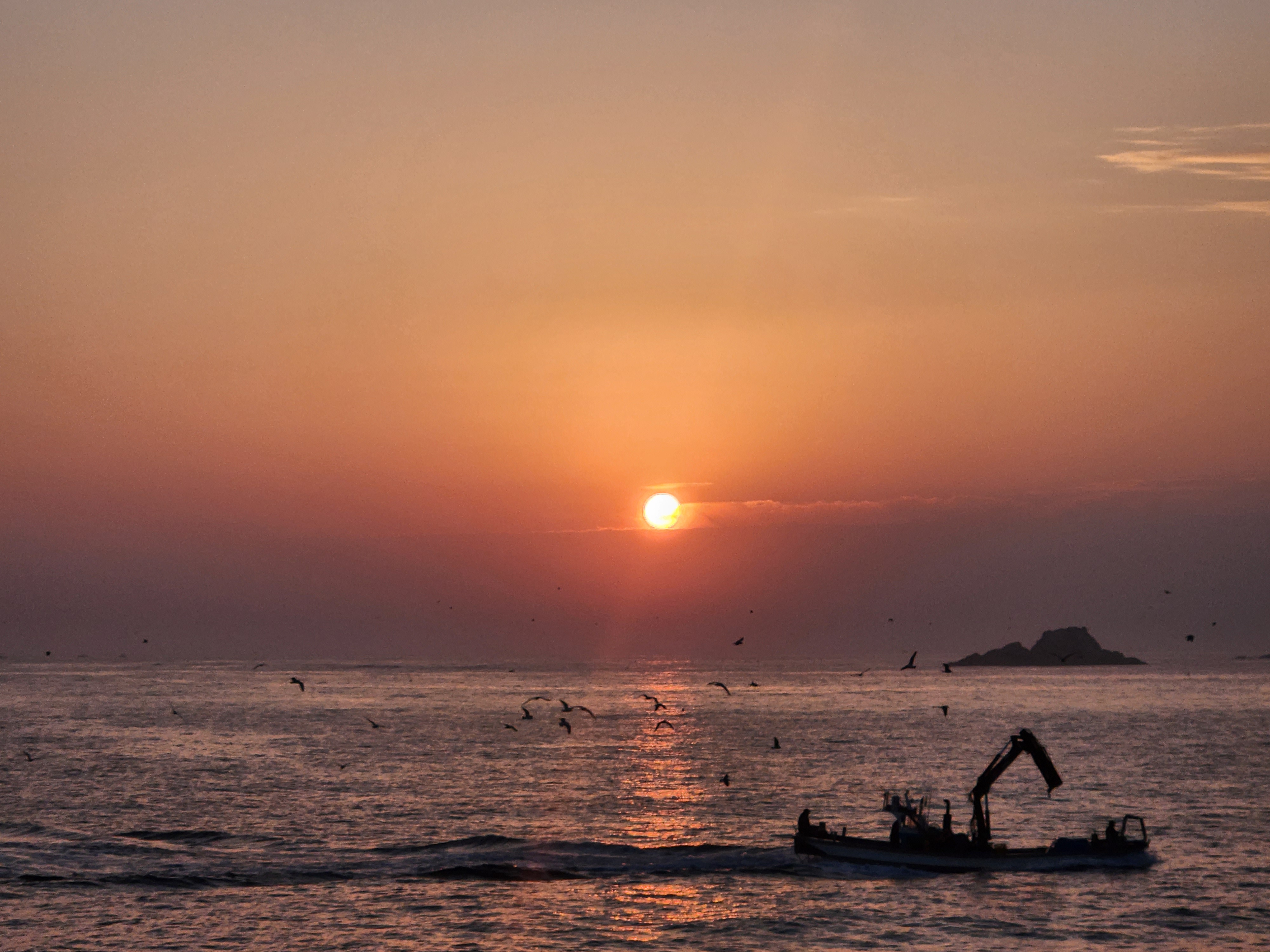 때마침 만선을 따라 갈매기떼가 날아든다.