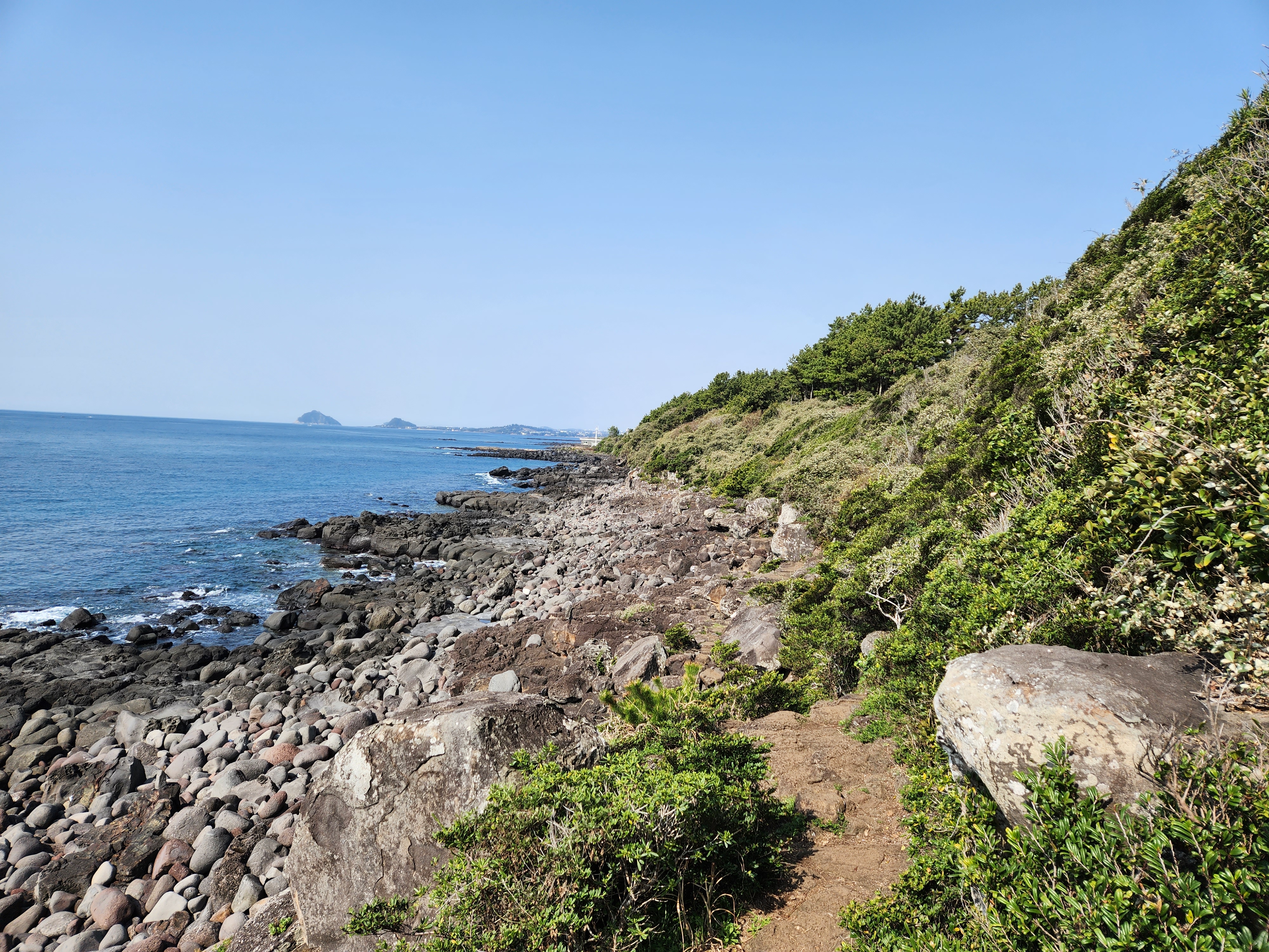 자연 그대로의 길과 해안선이 퍽 아름답다.