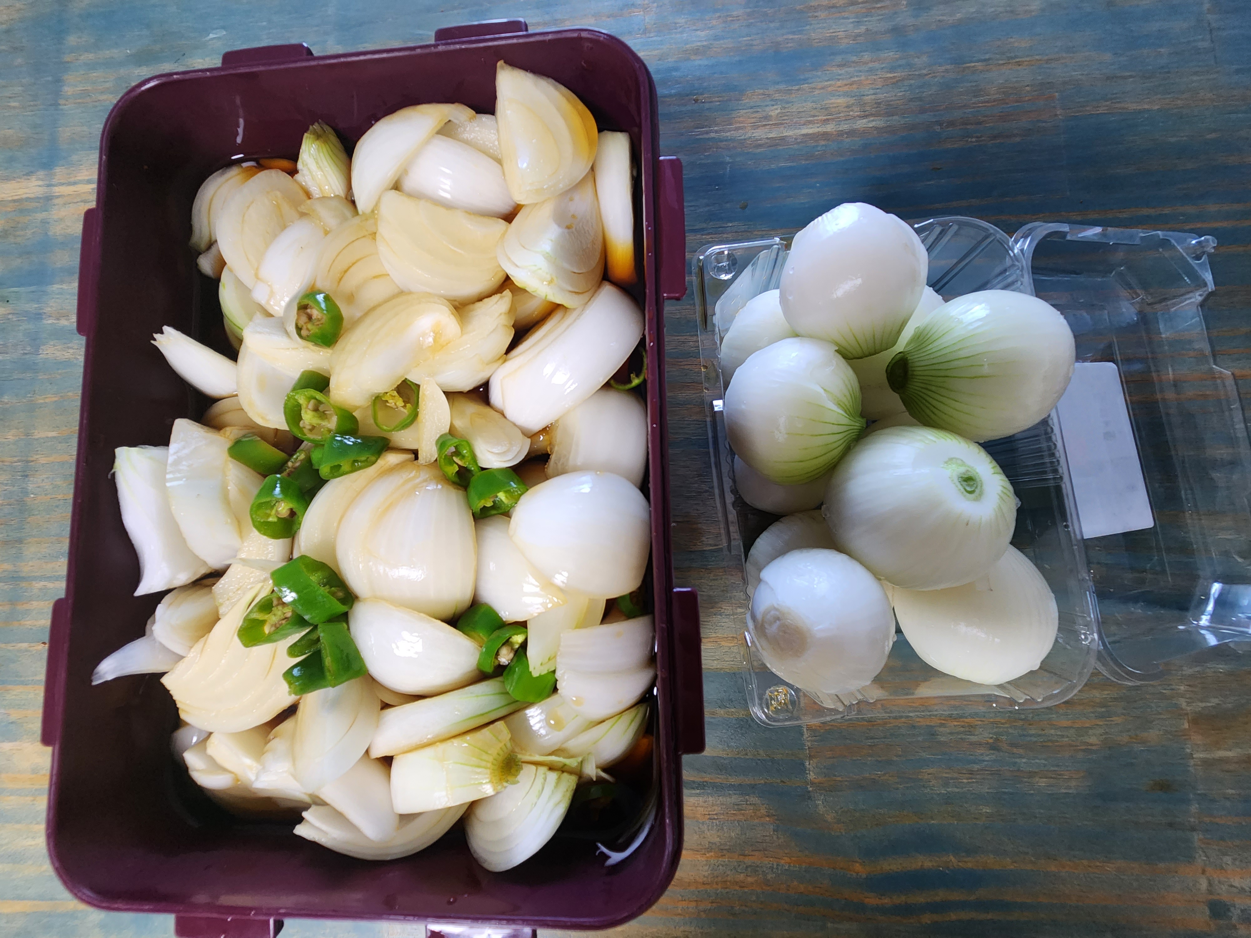 굵은것만 골라와서 양이 많아 양파 장아찌를 담근다.