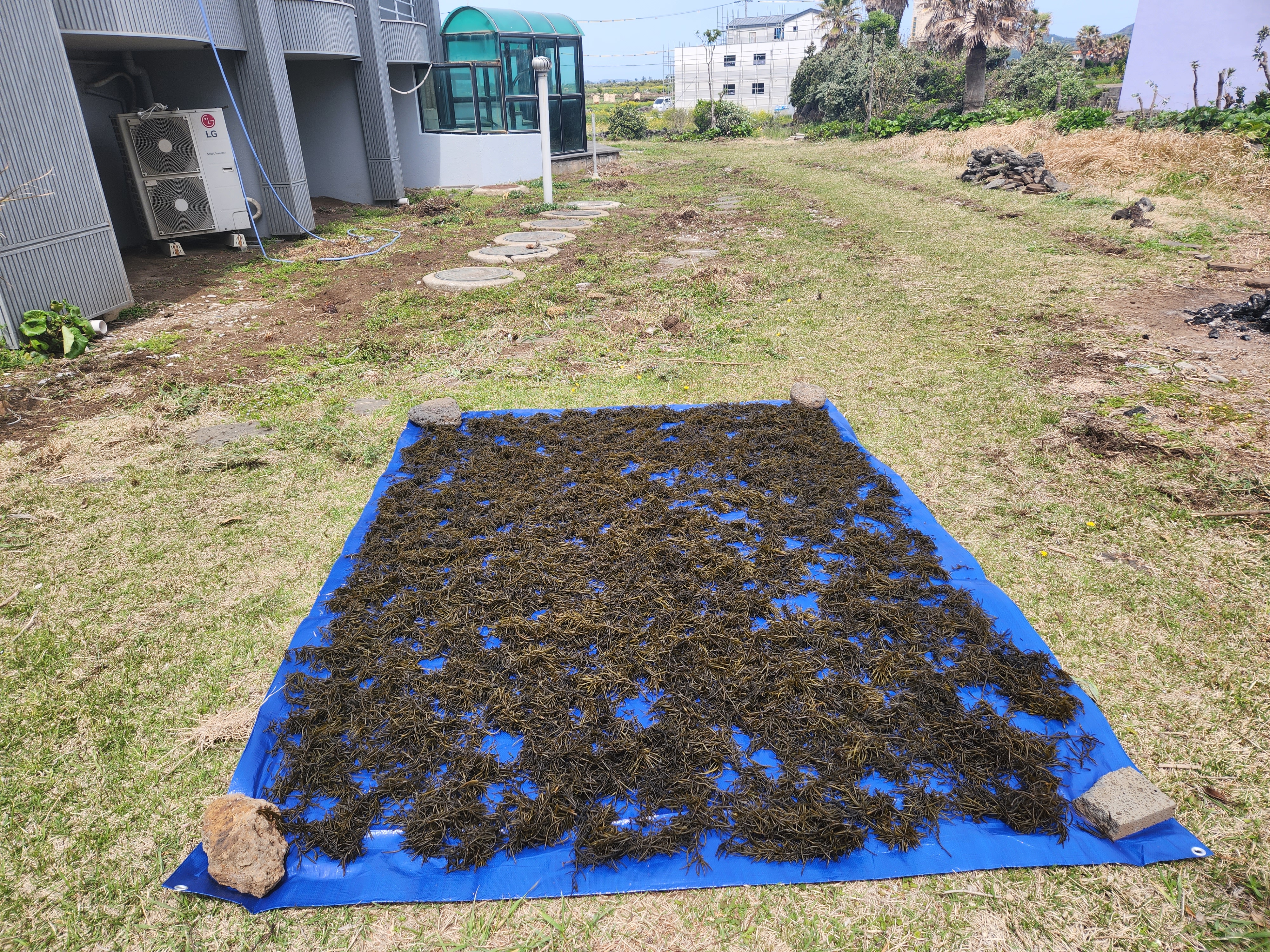 숙소 뒷곁 잔디마당에 펼쳐 놓는다.