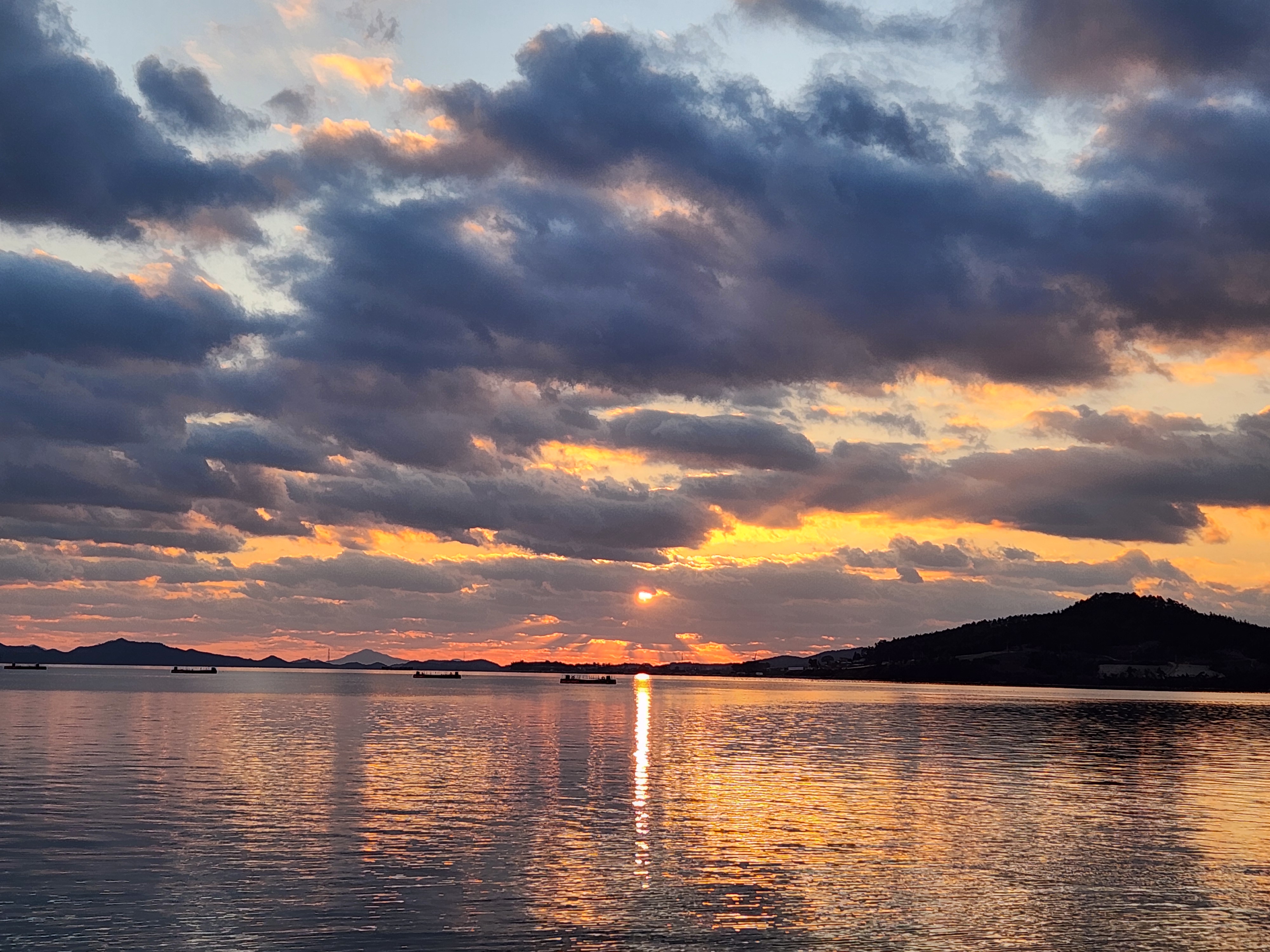 구름이 많아 저녁노을이 기대에 못 미치지만
