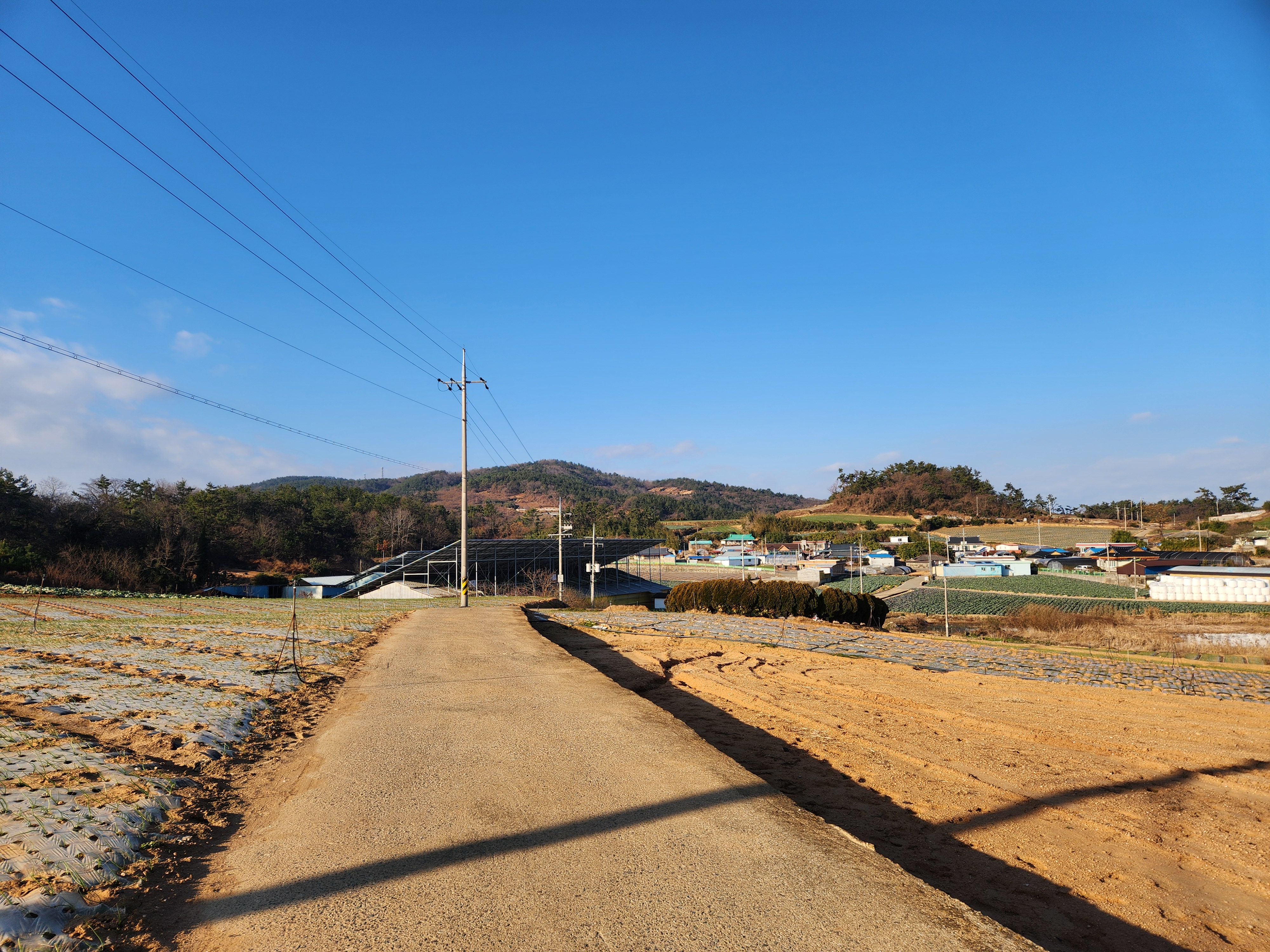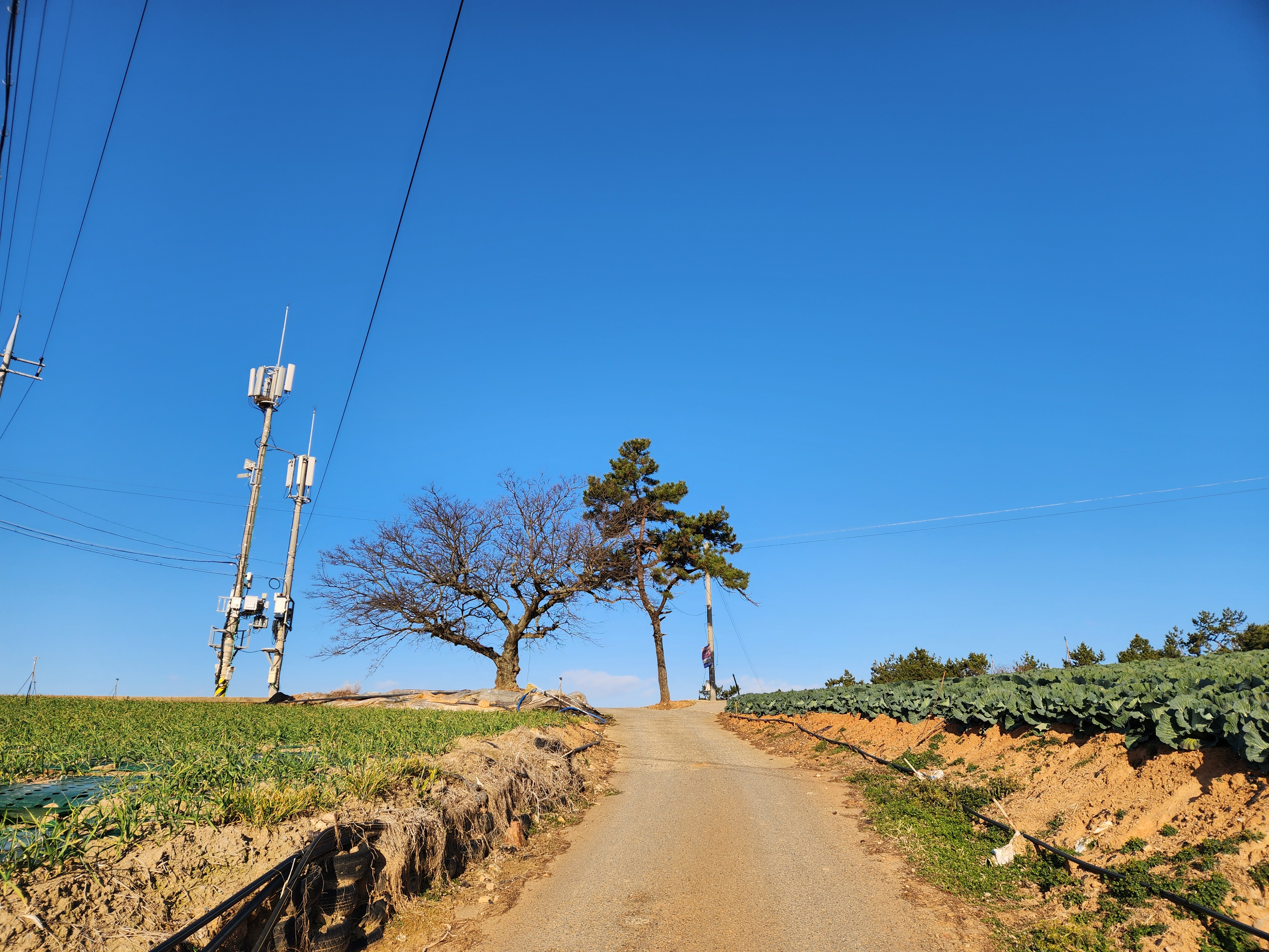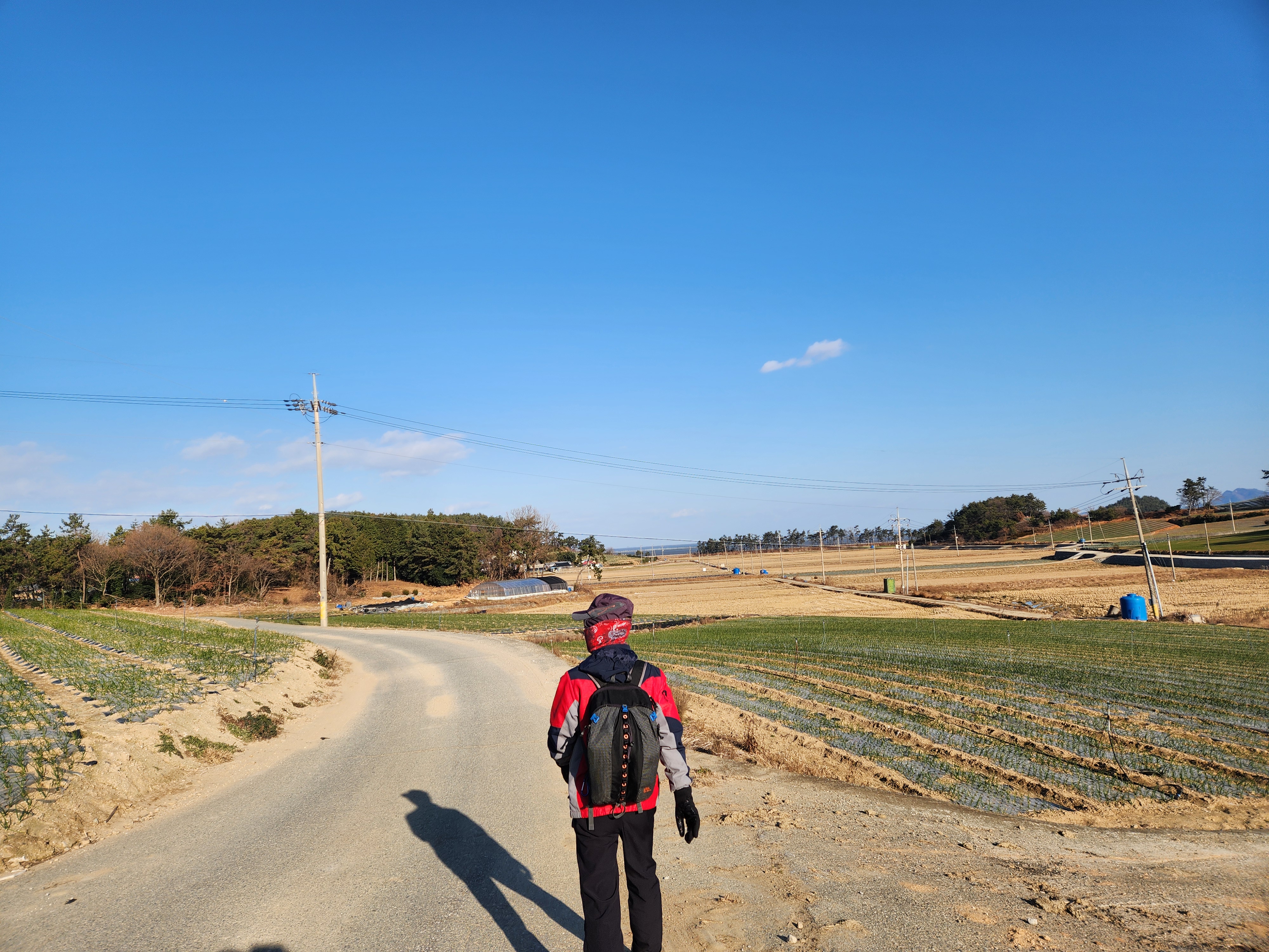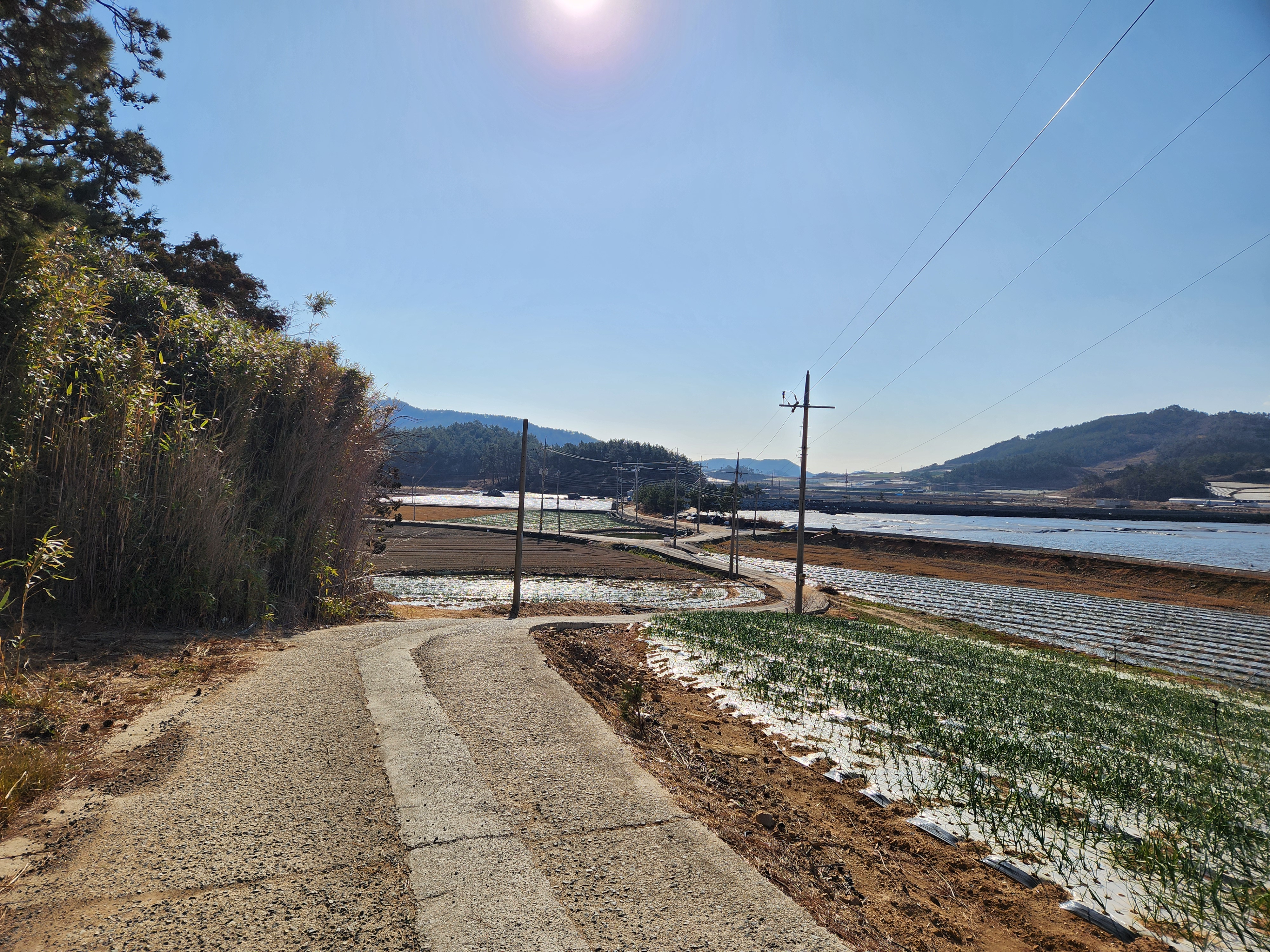 양파, 마늘밭들을 바라보며 걷는다.