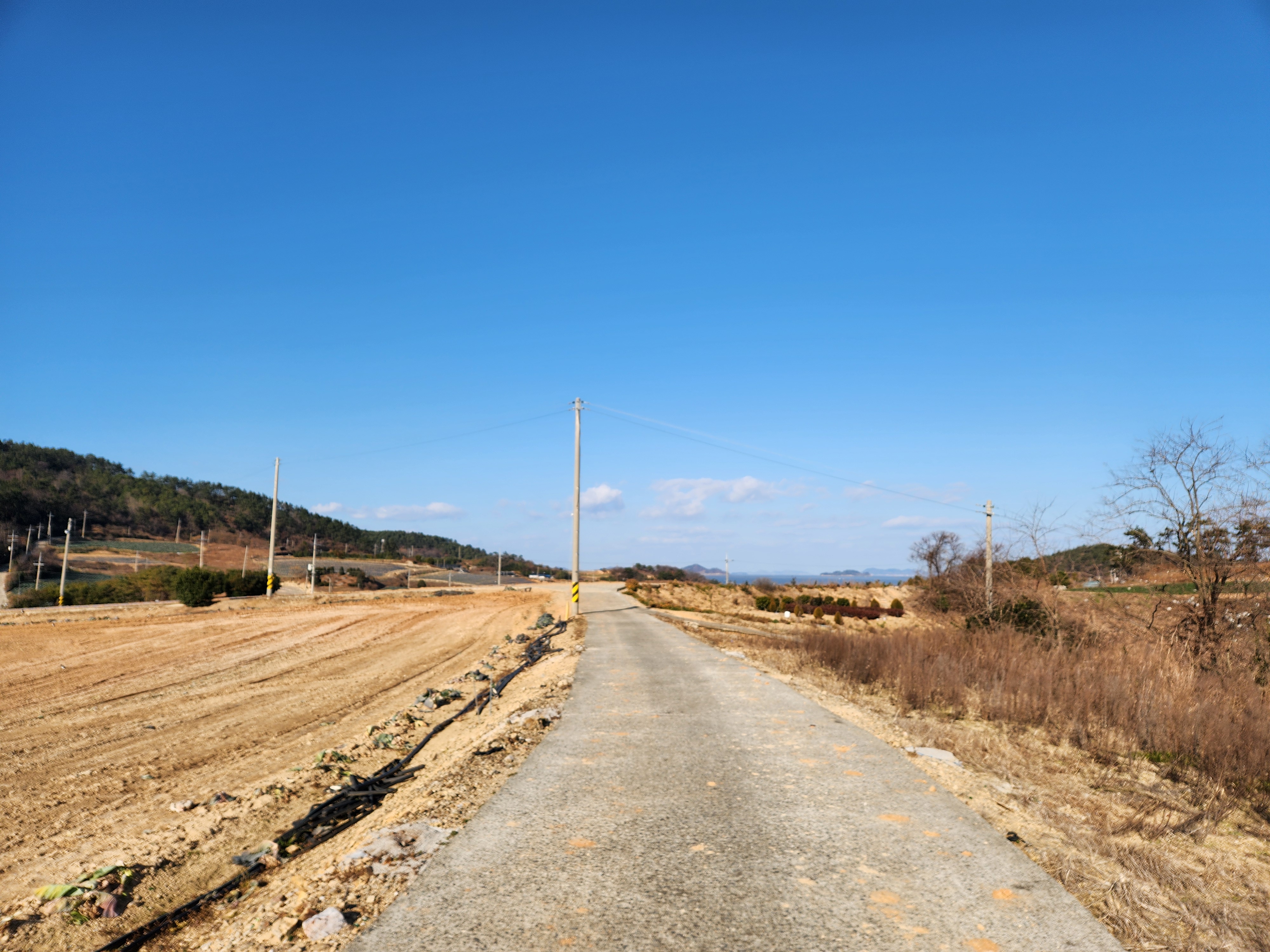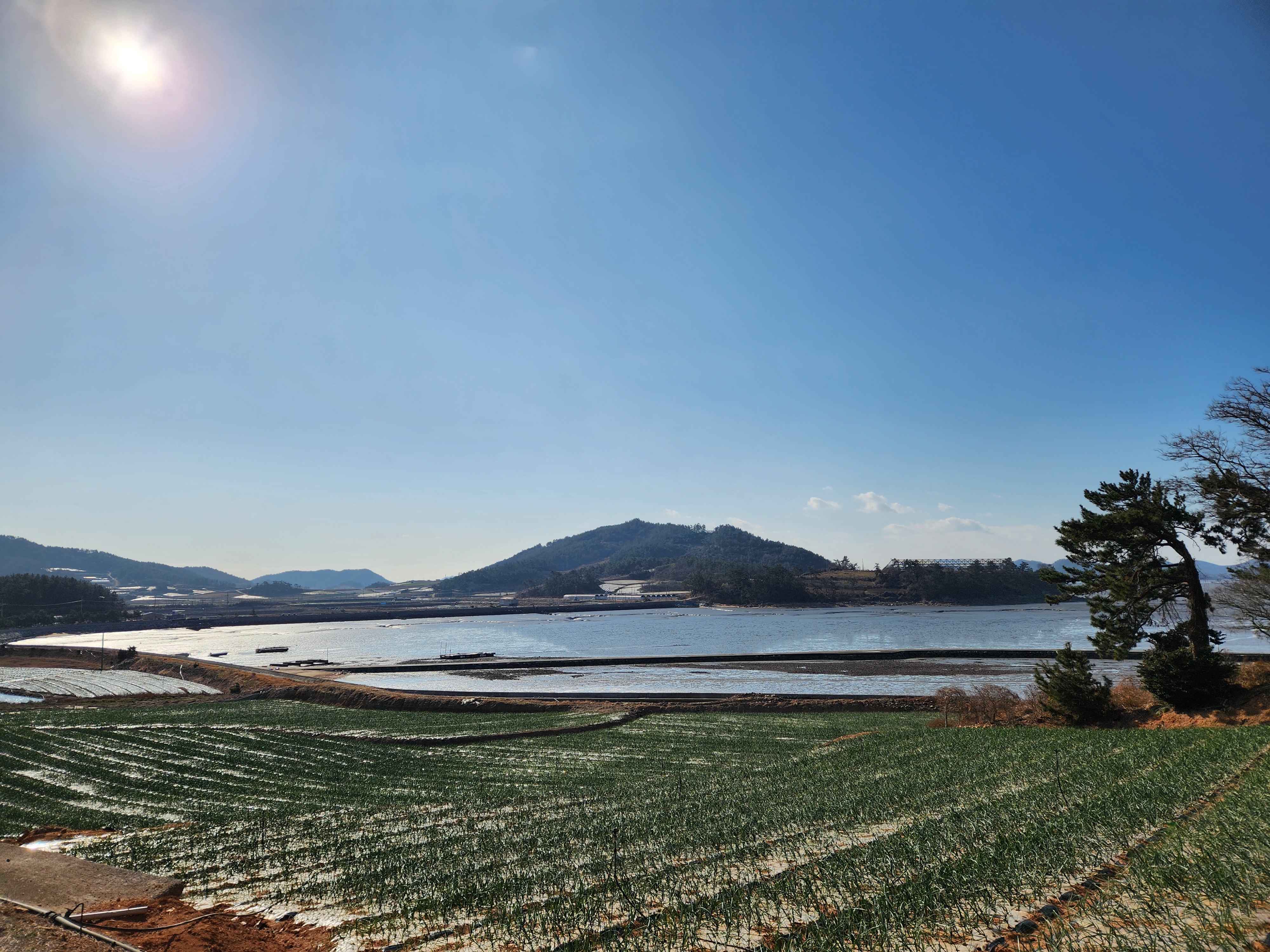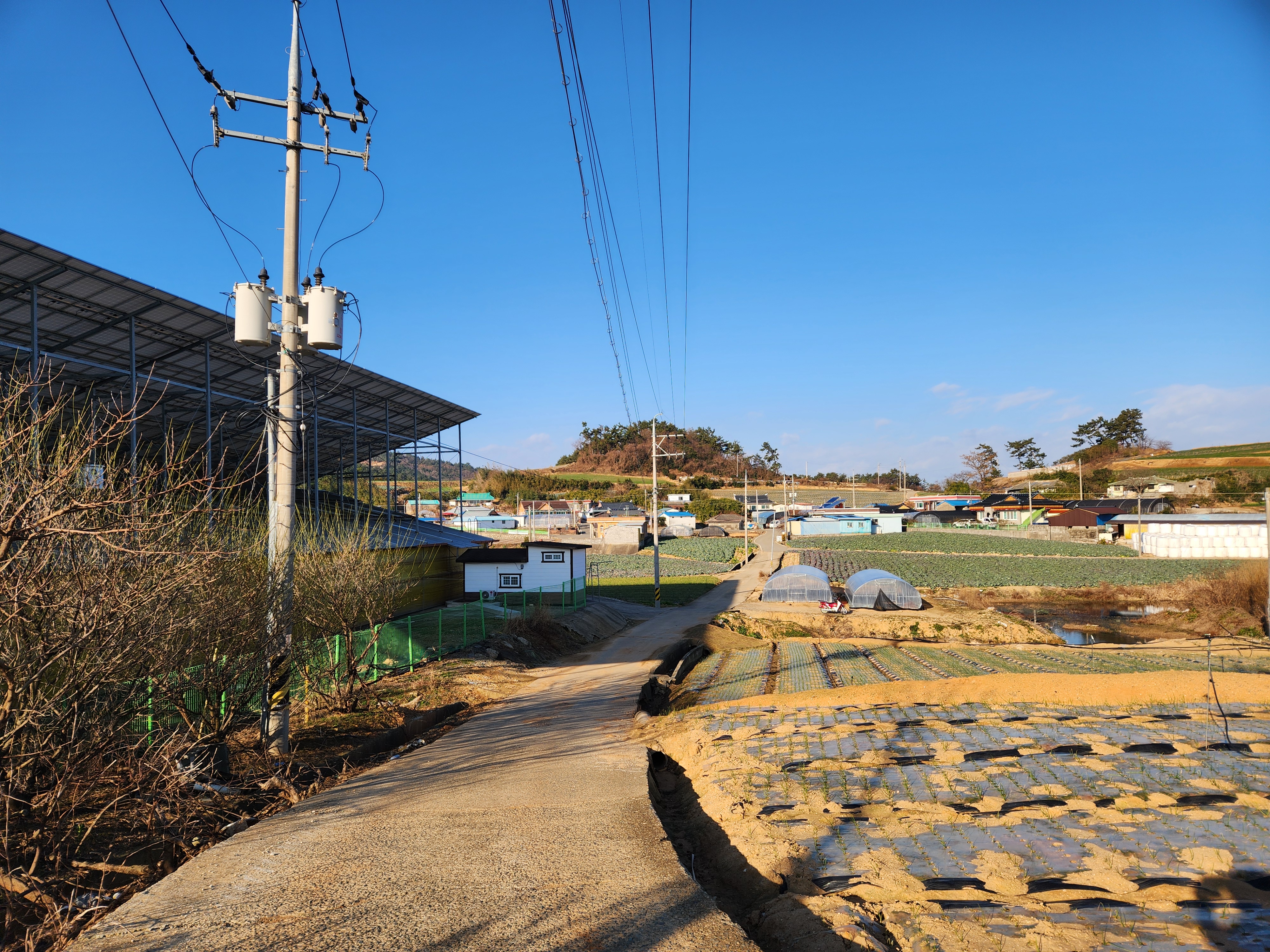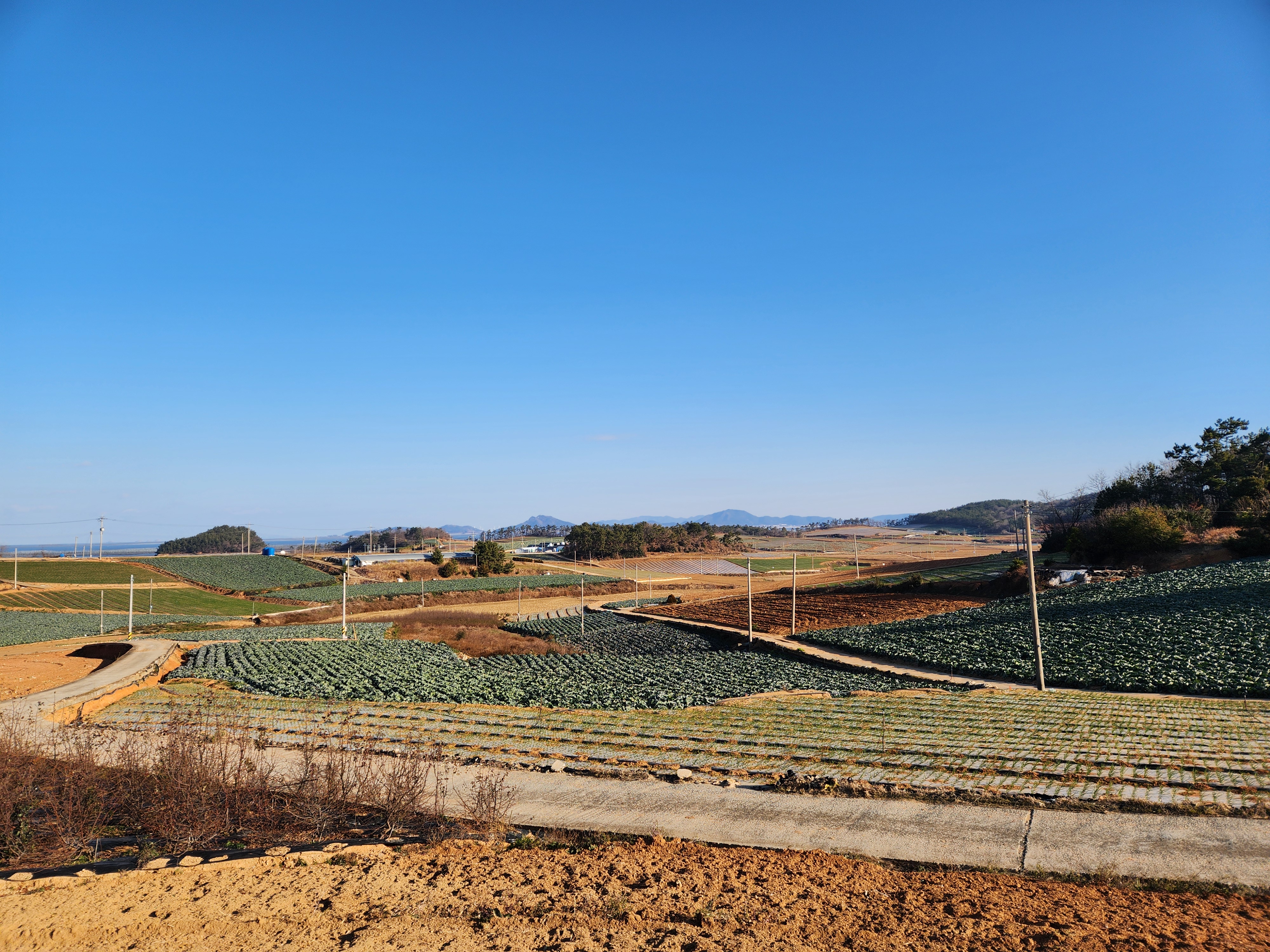 양파, 마늘밭들을 바라보며 걷는다.