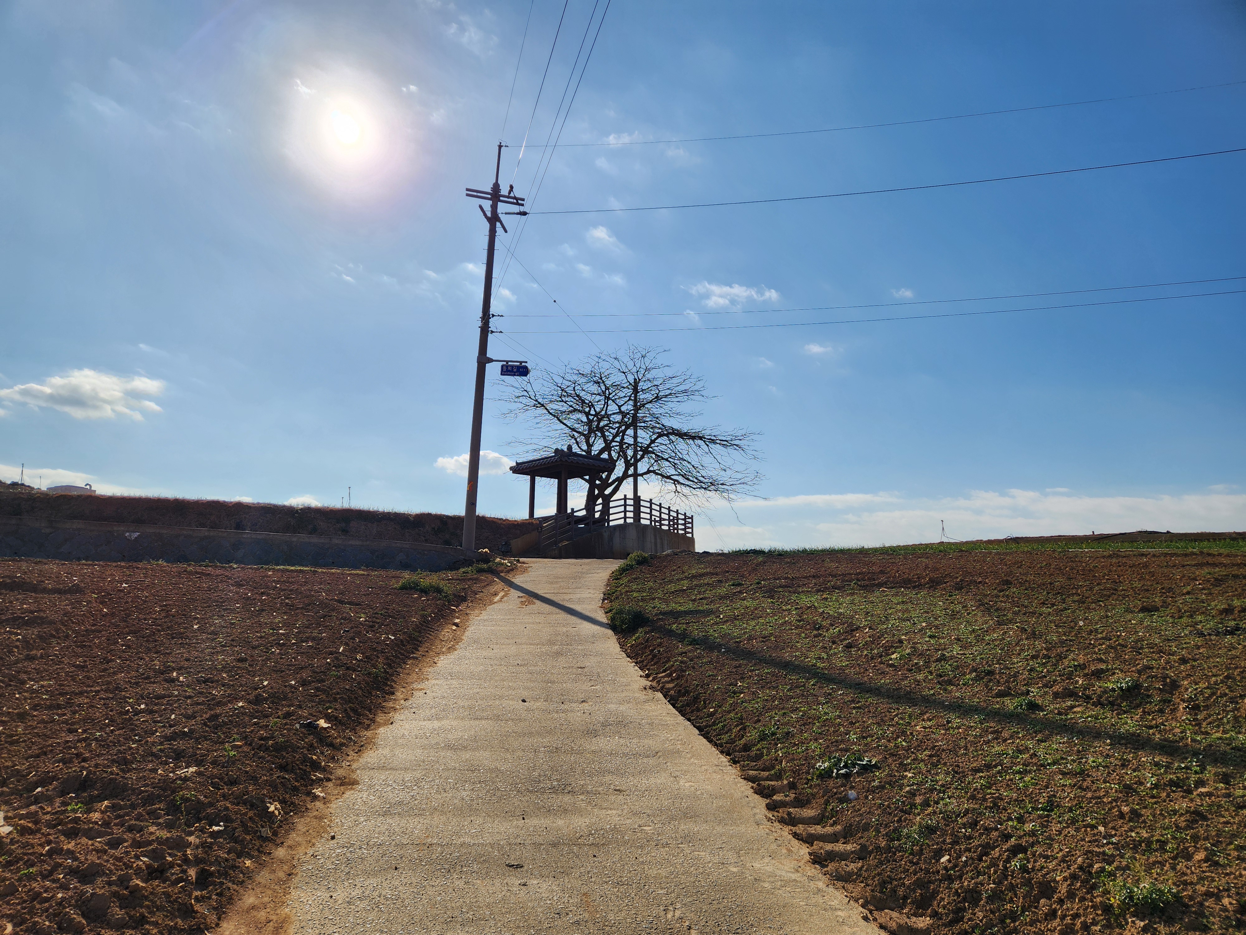 정자로 돌아와서 좌측의 밭길을 따라 걷는다.