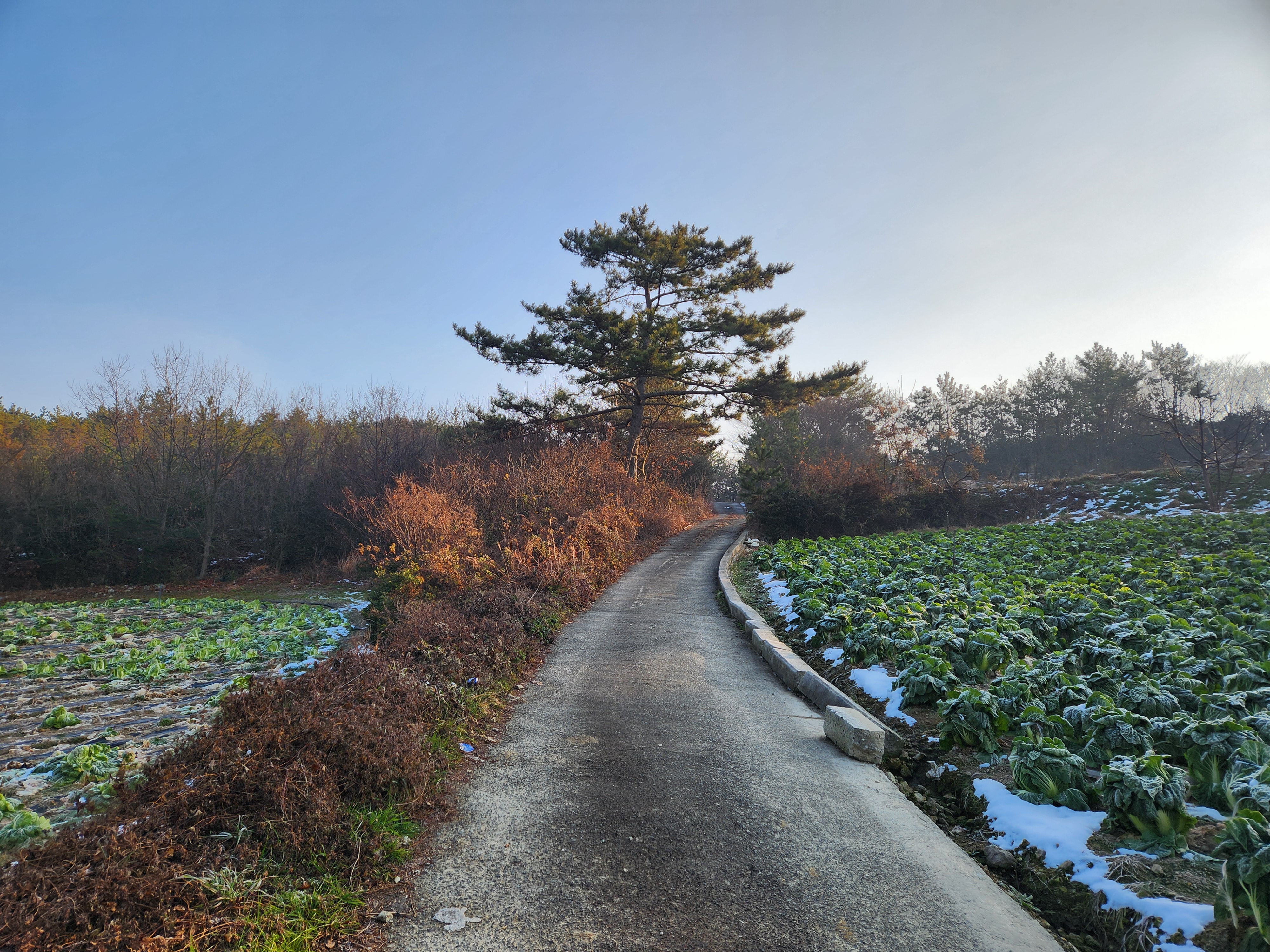 배추를 수확한 빈 밭길을 따라 걷는다.