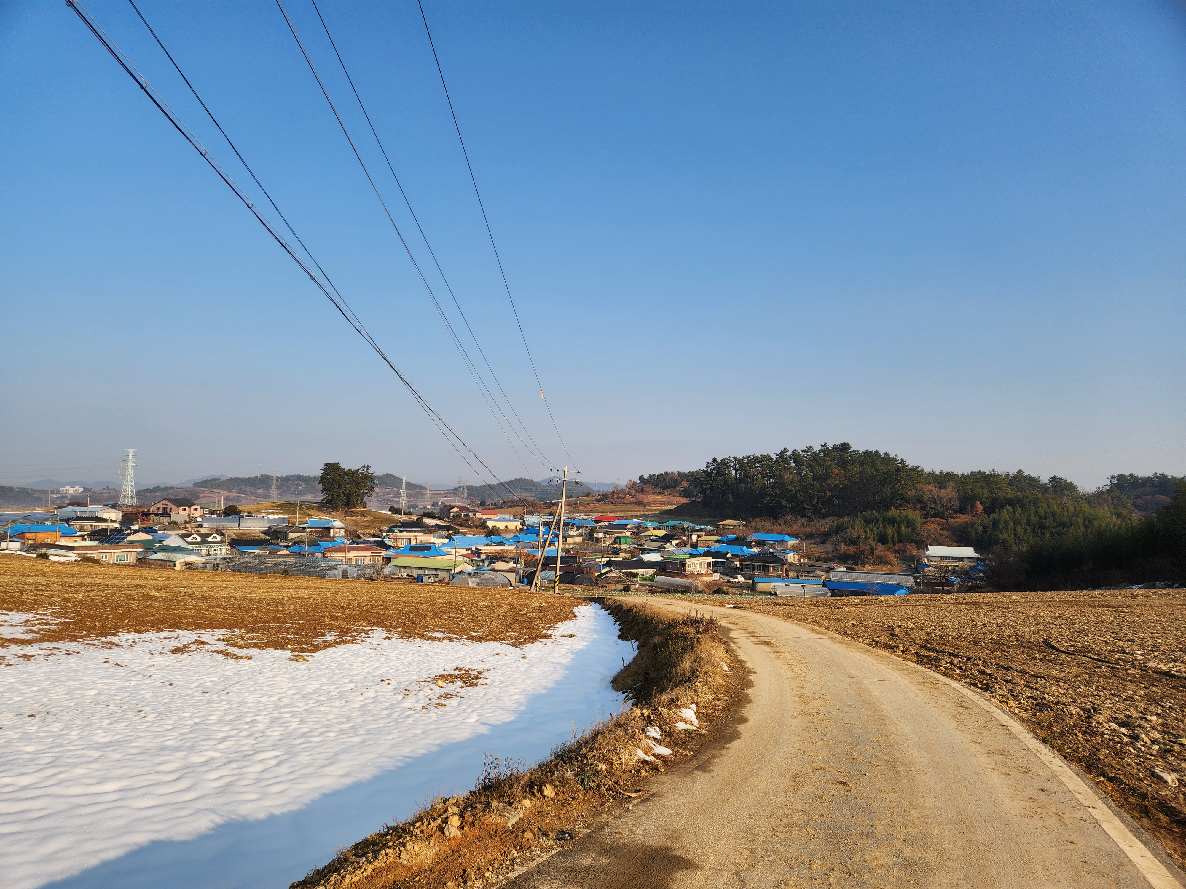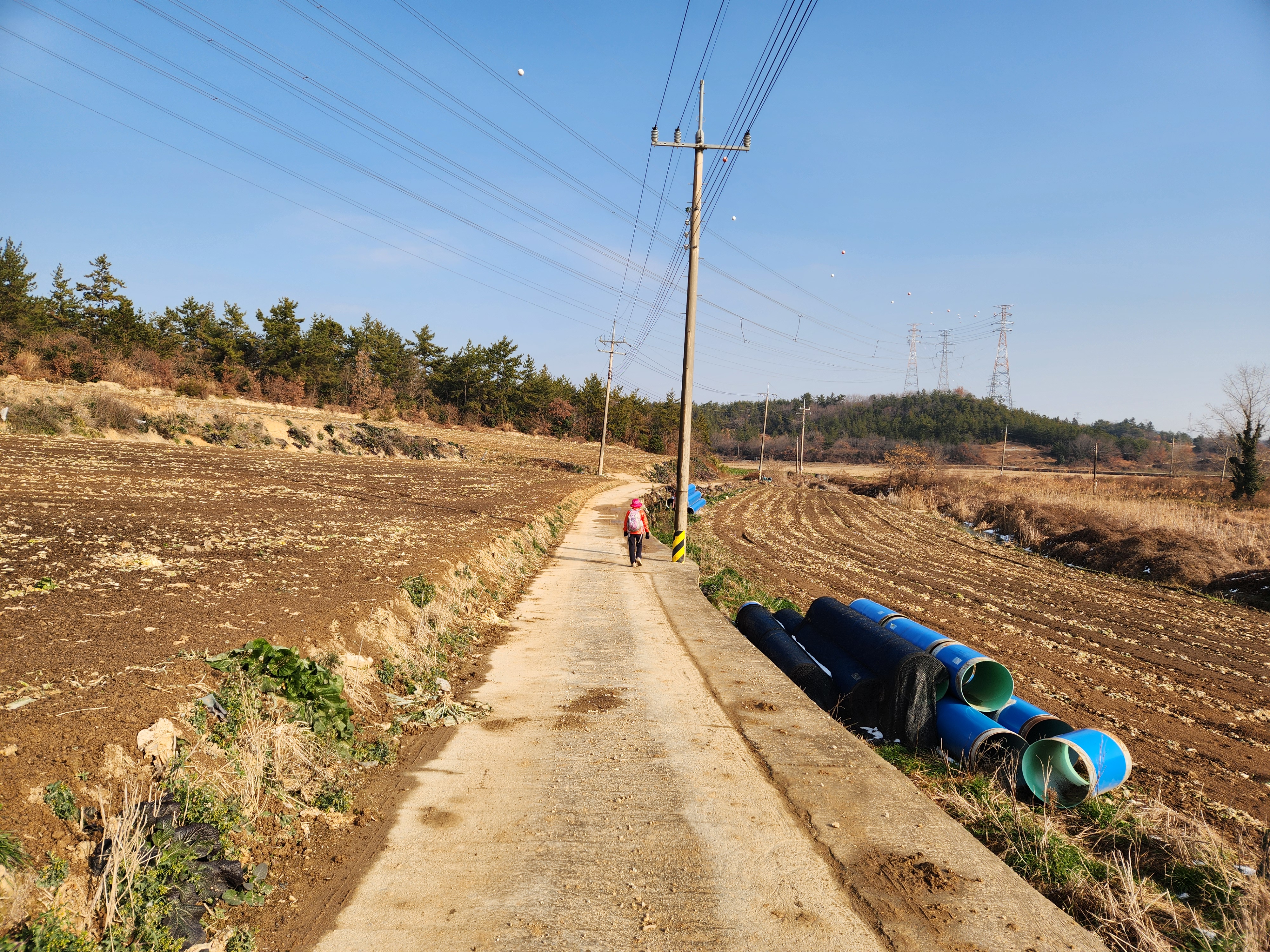 꼬불꼬불 농로로 이어지는 서해랑길이 환히 보인다.