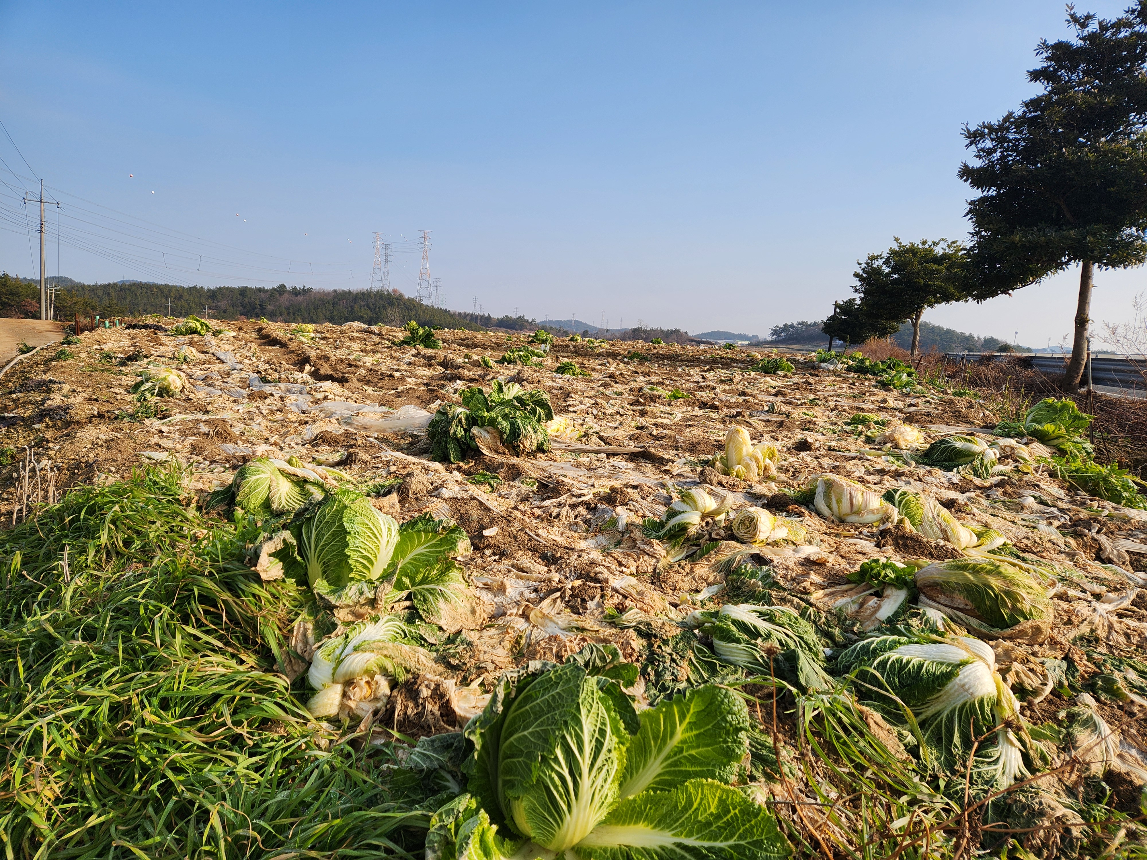 상품성이 없어 내팽겨쳐진 배추들이 넘 아깝다.