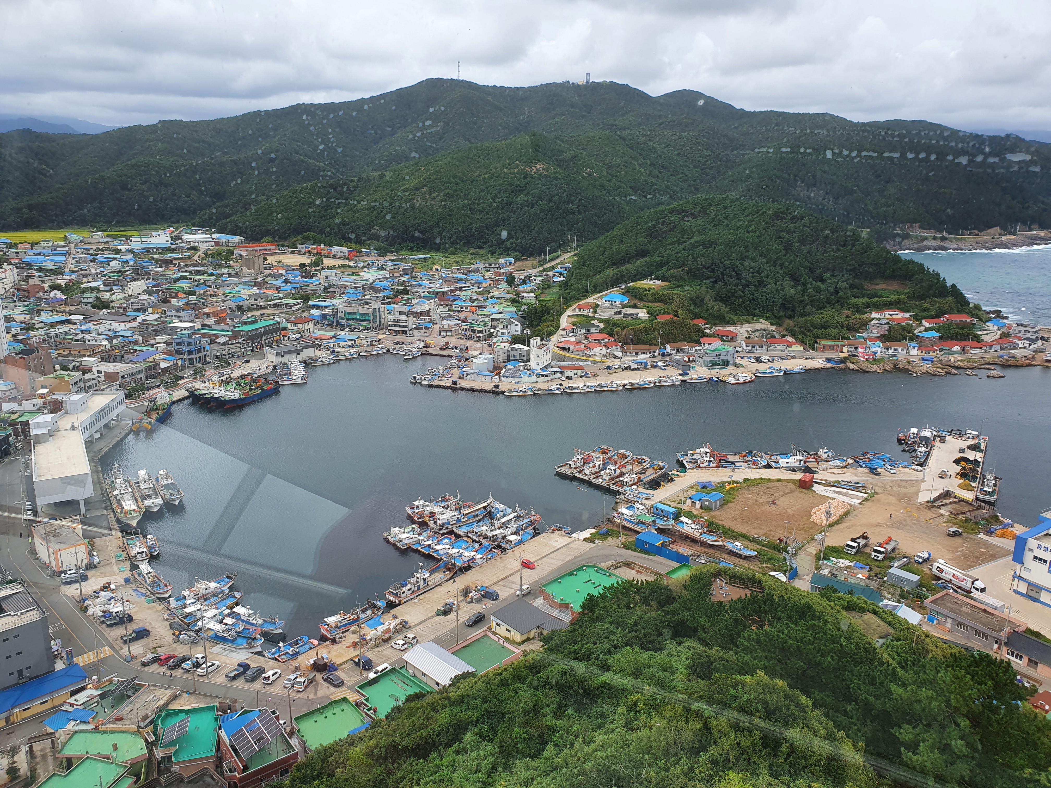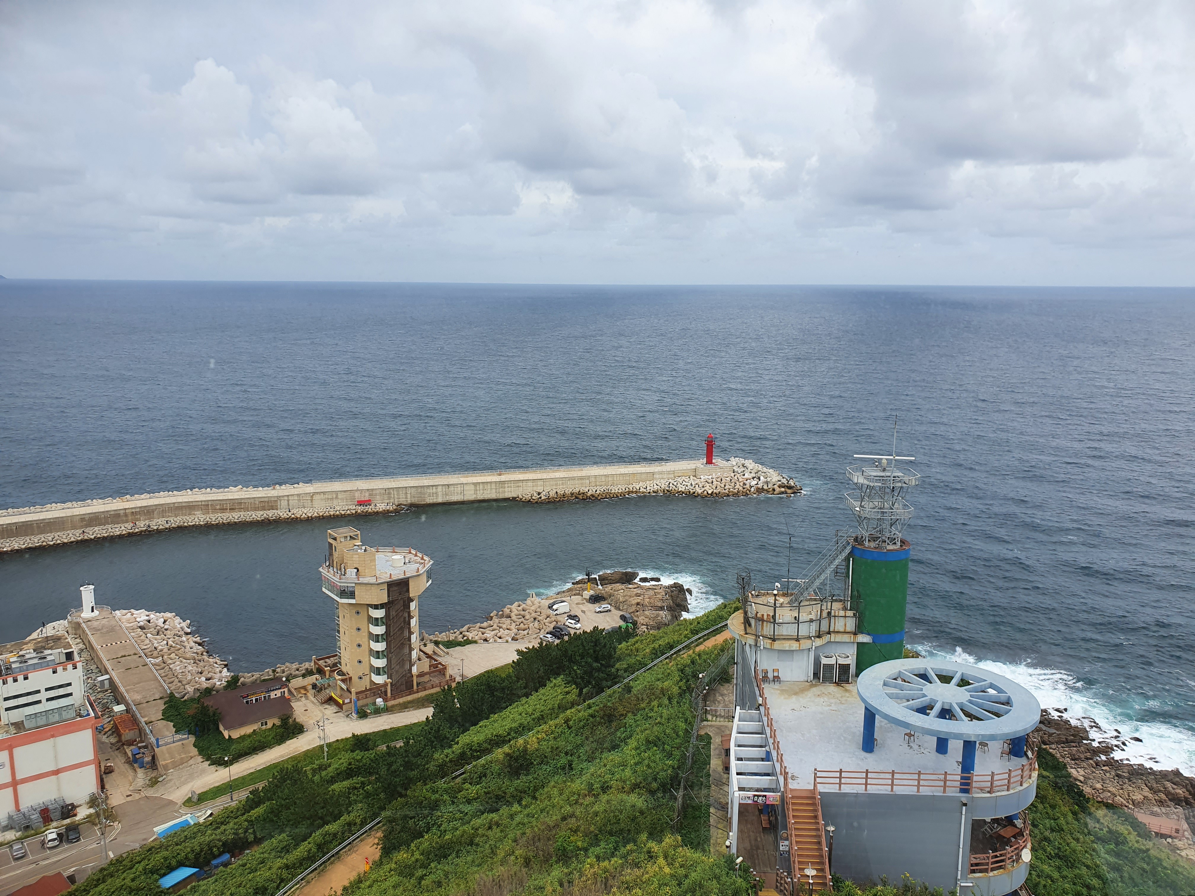 멀리 해맞이공원과 풍력발전단지가 한눈에 들어온다.
