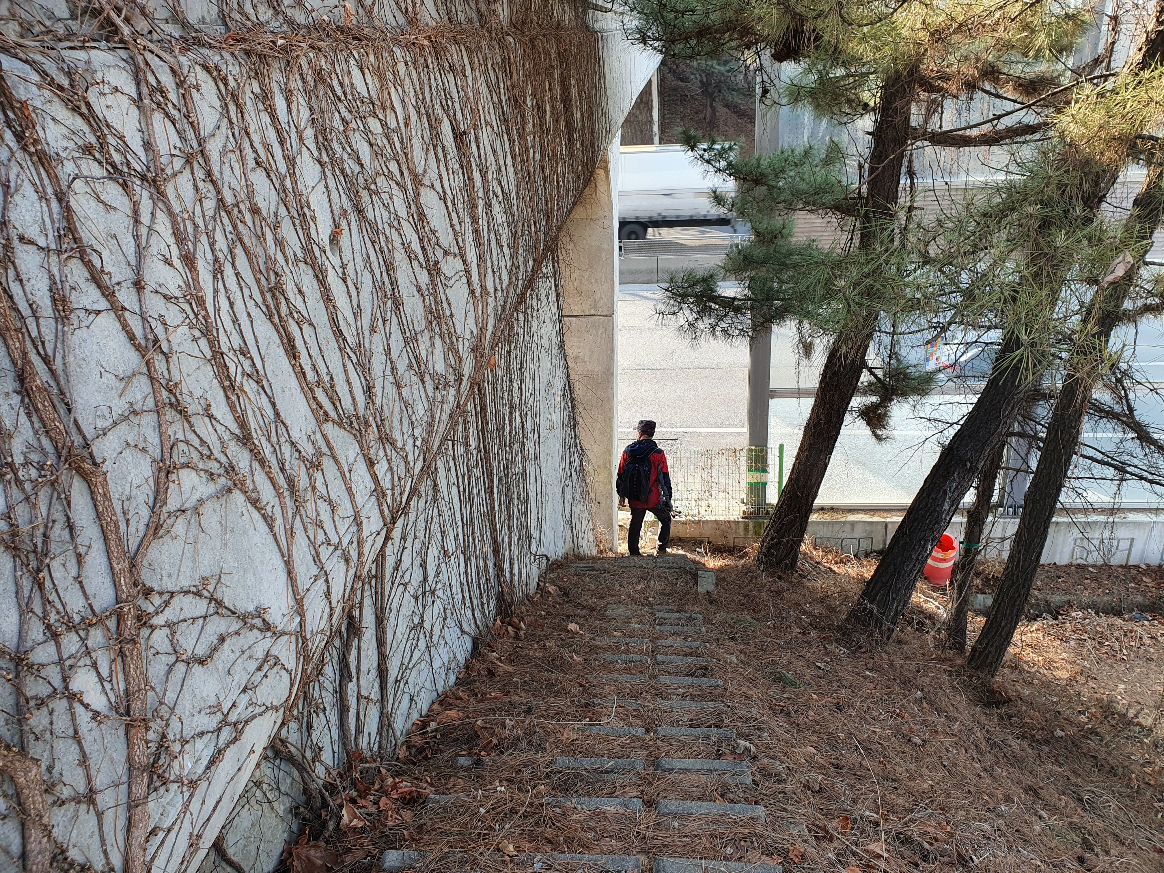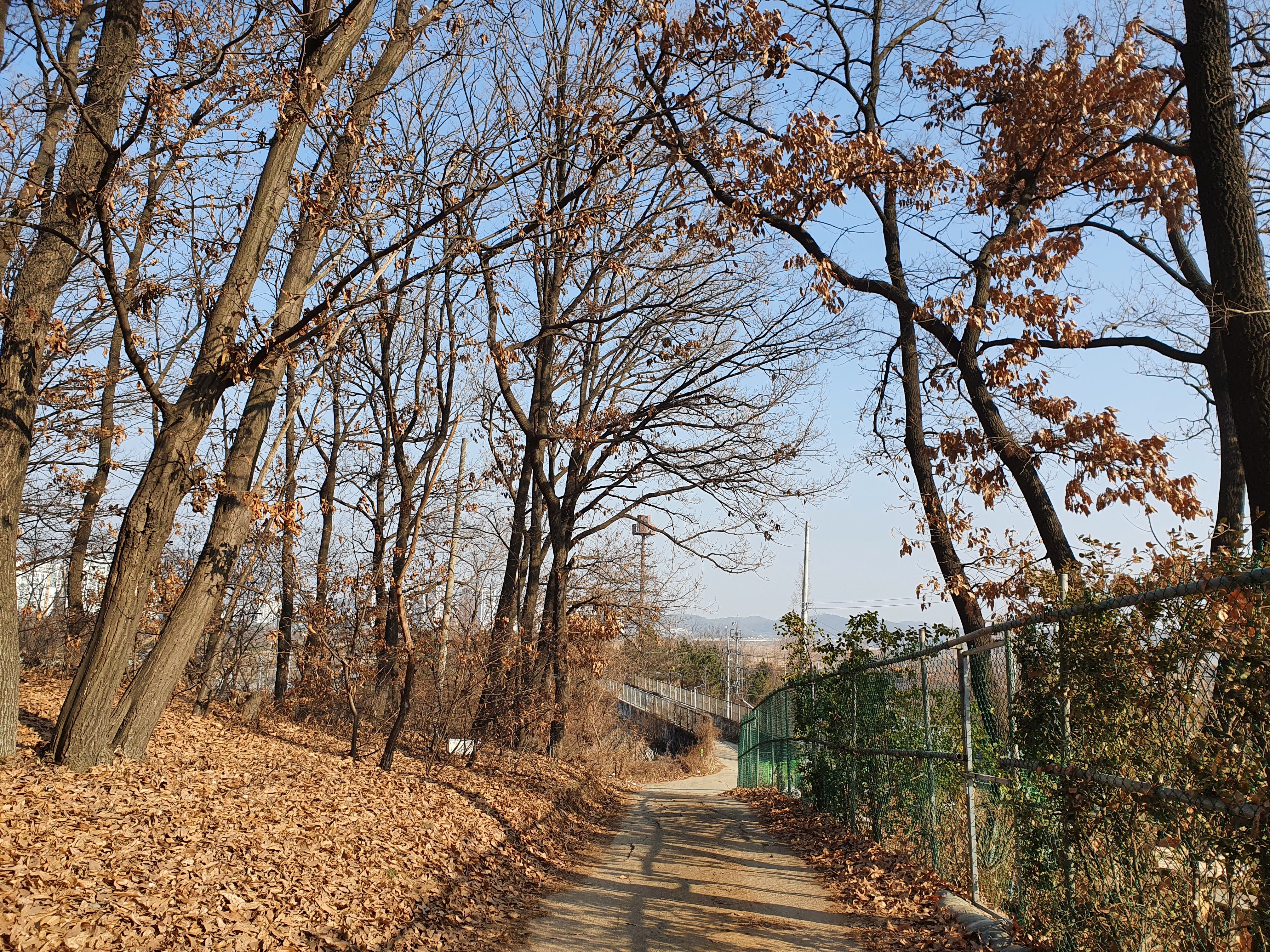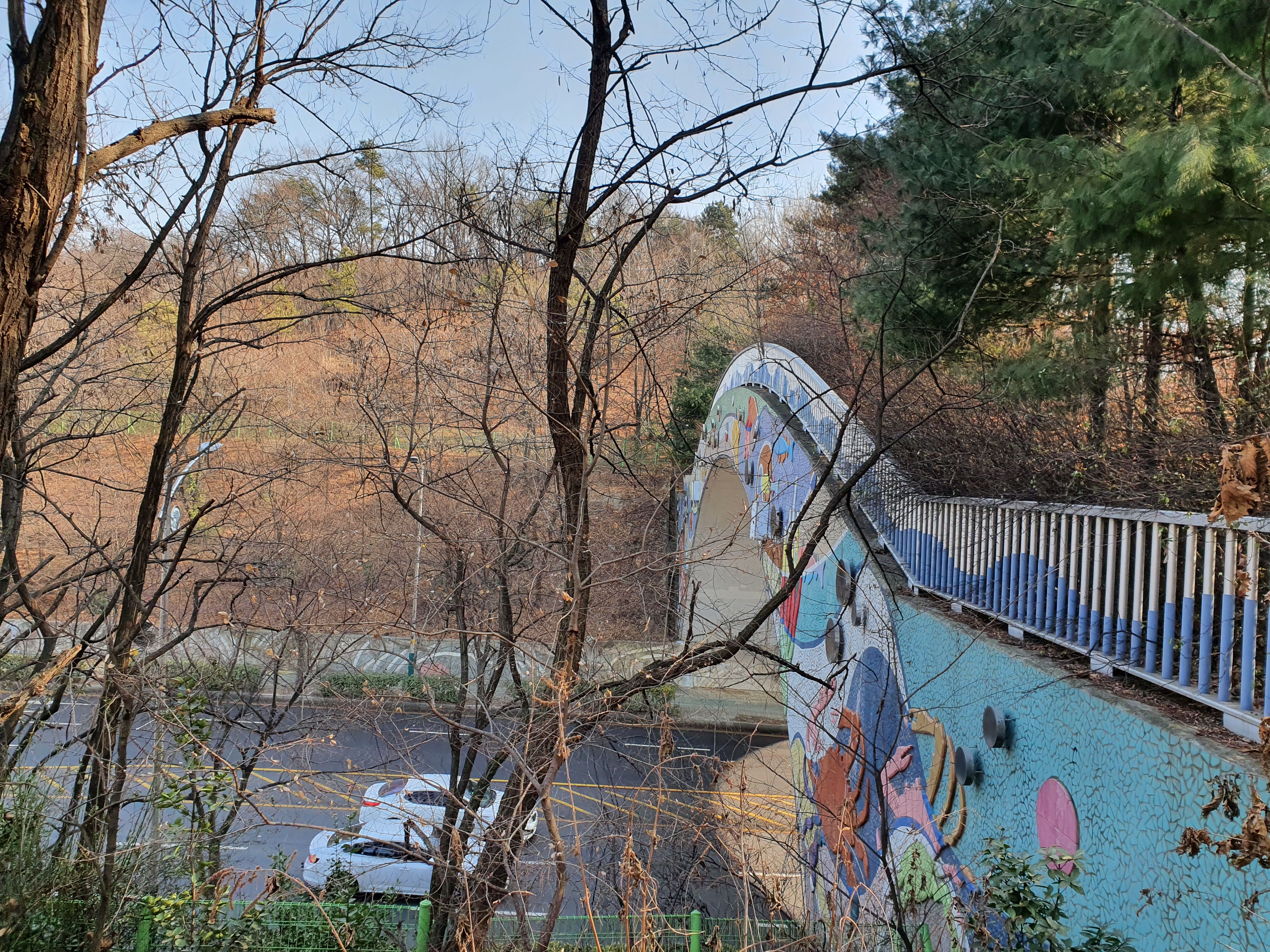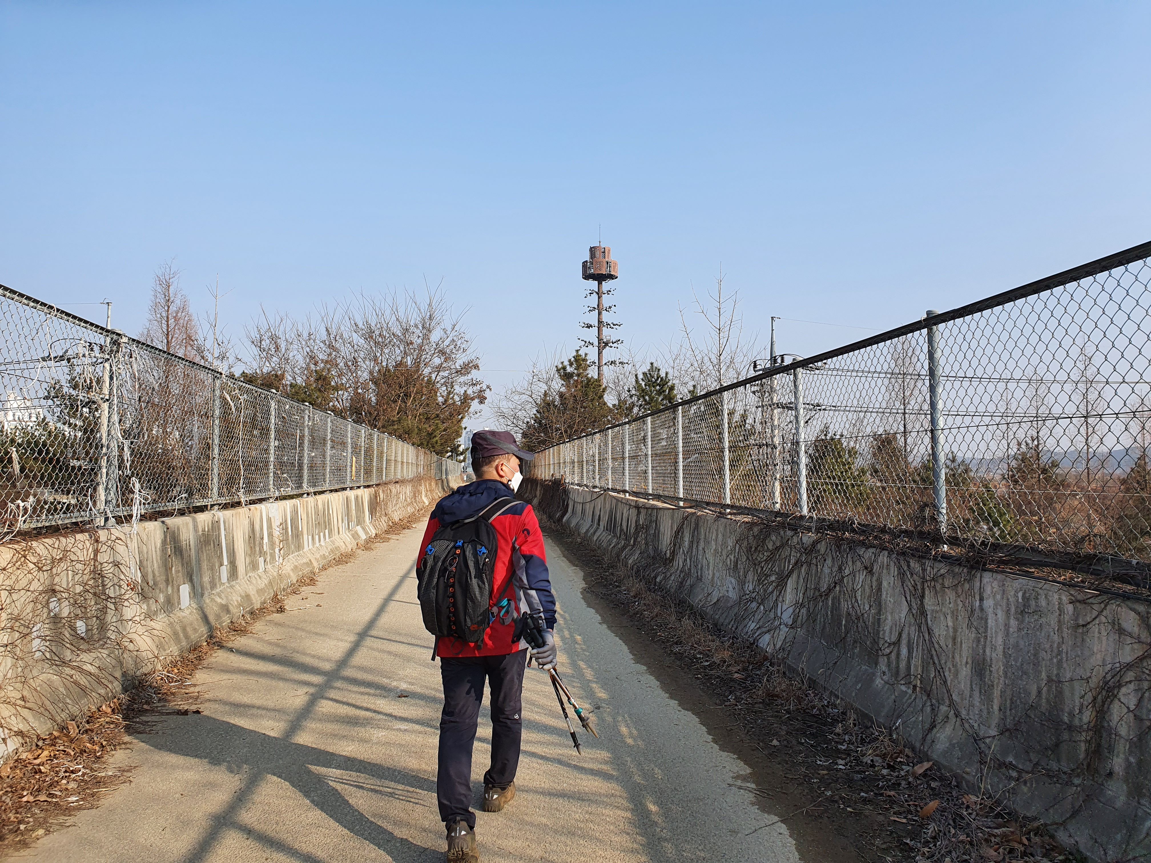 듬배산과 오봉산을 연결해부는 생태통로를 건너간다.