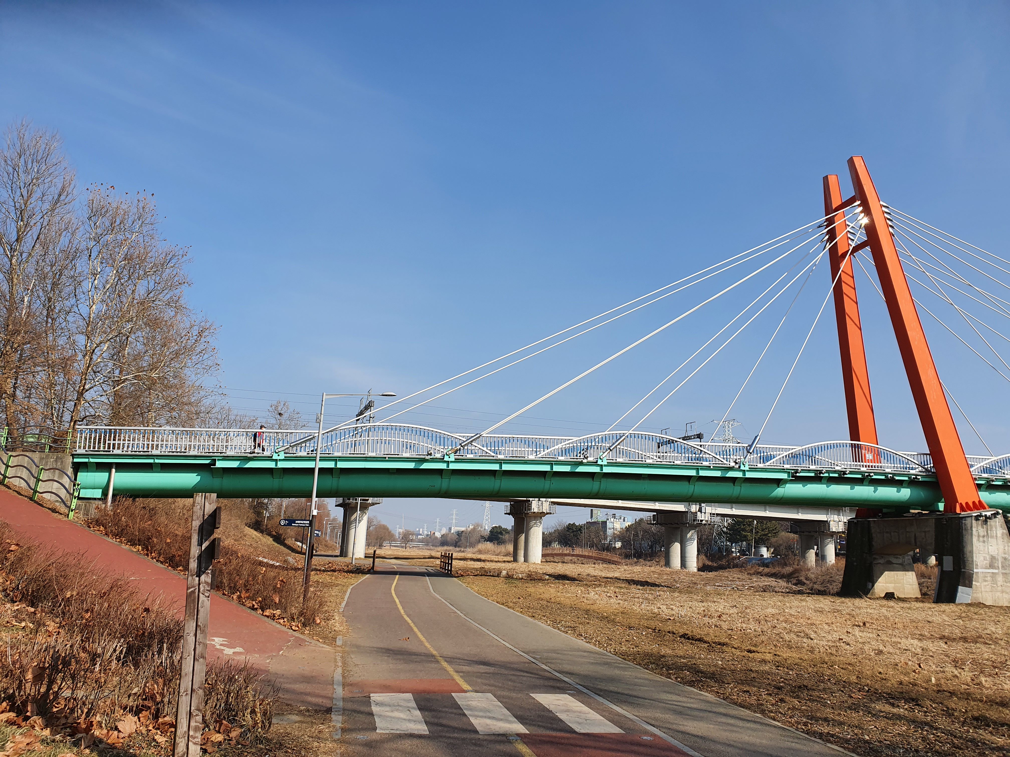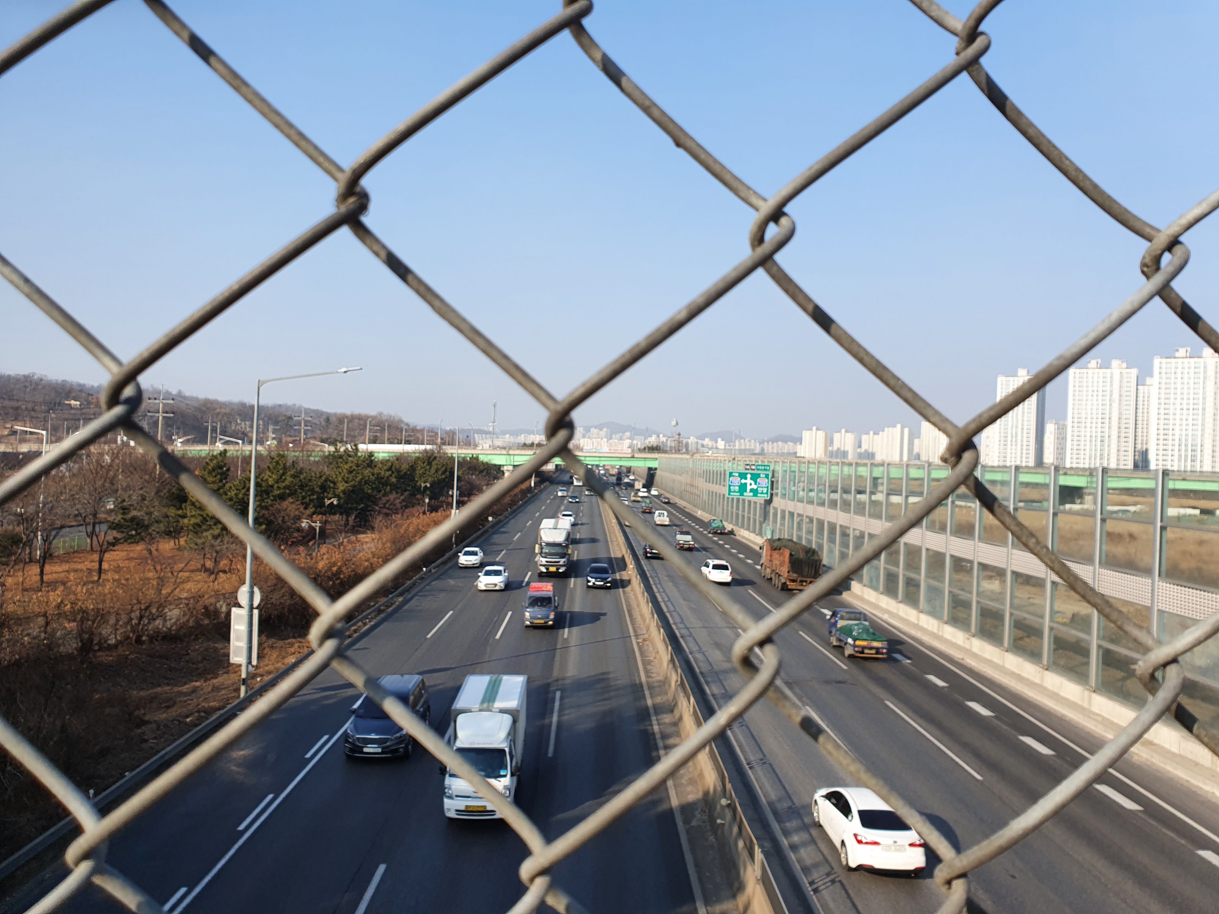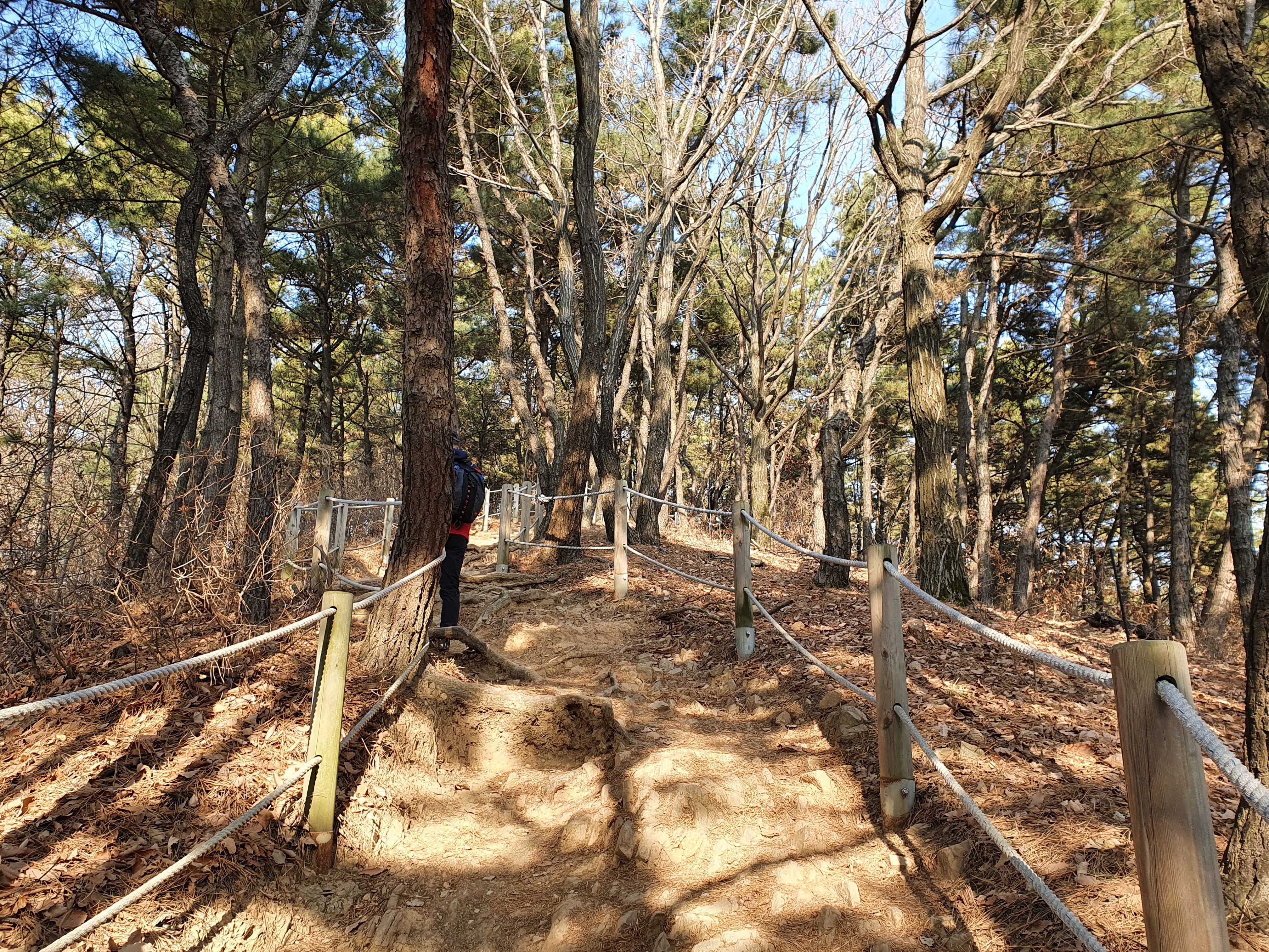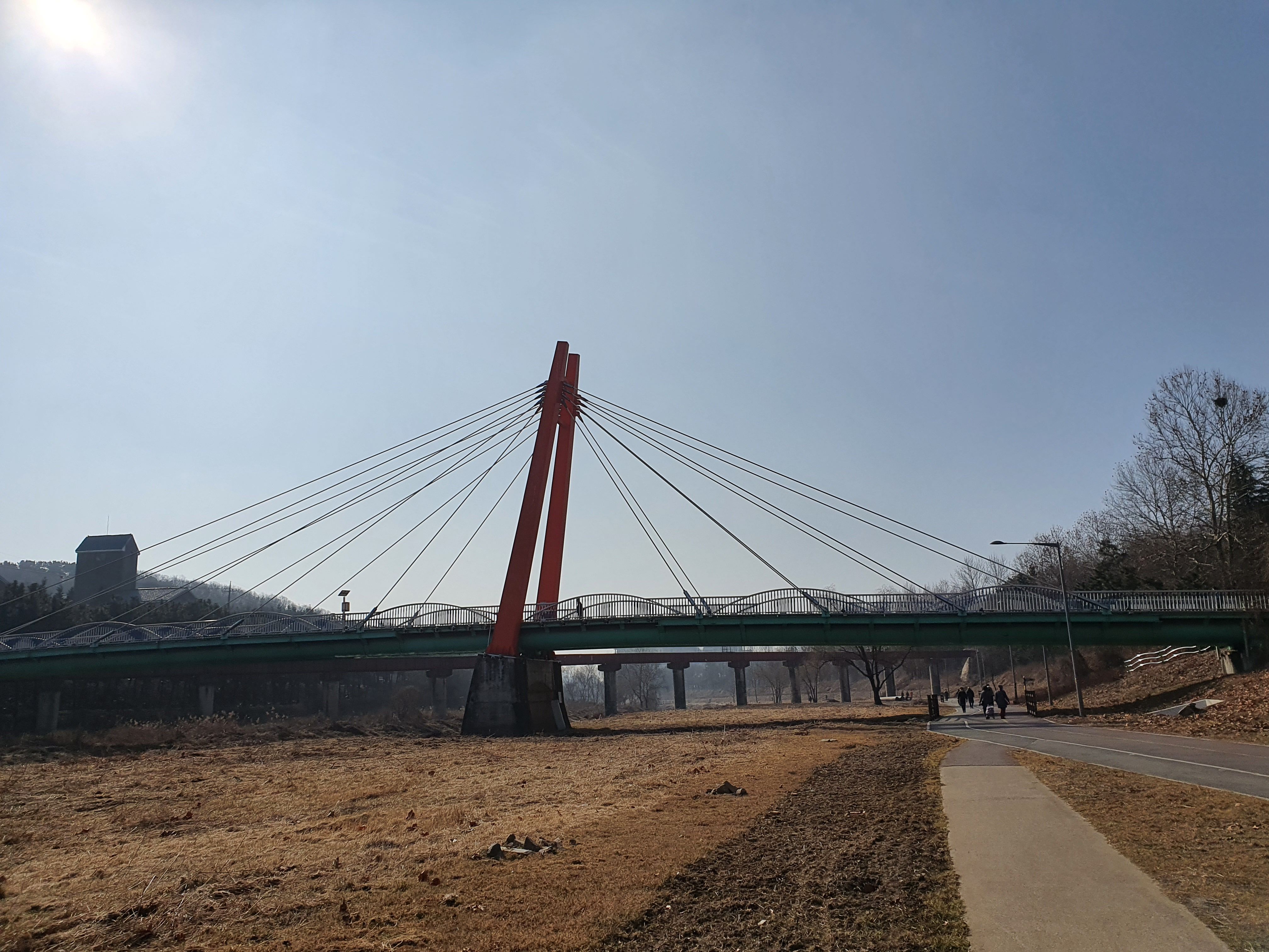 듬배산과 오봉산을 연결해부는 생태통로를 건너간다.