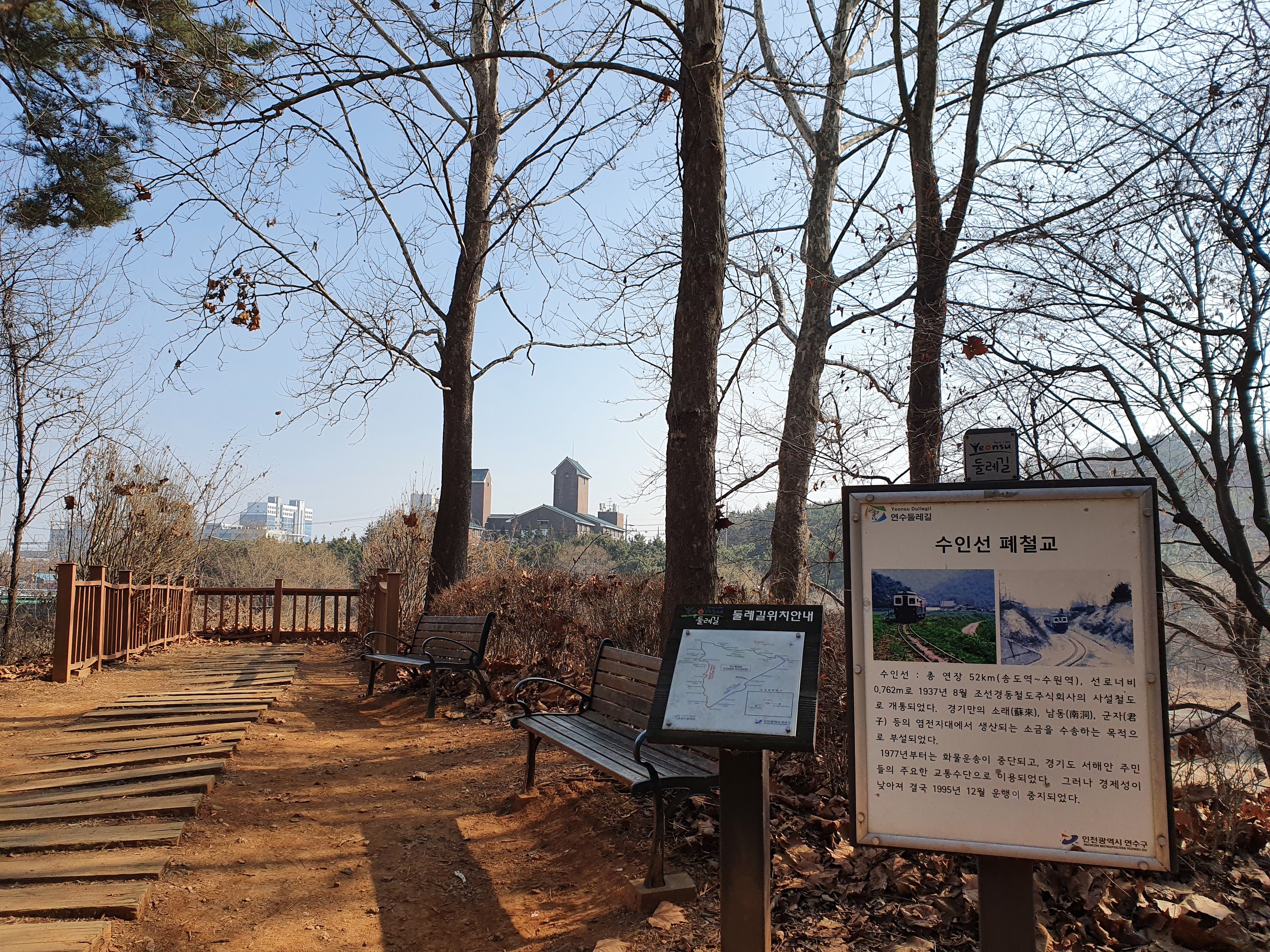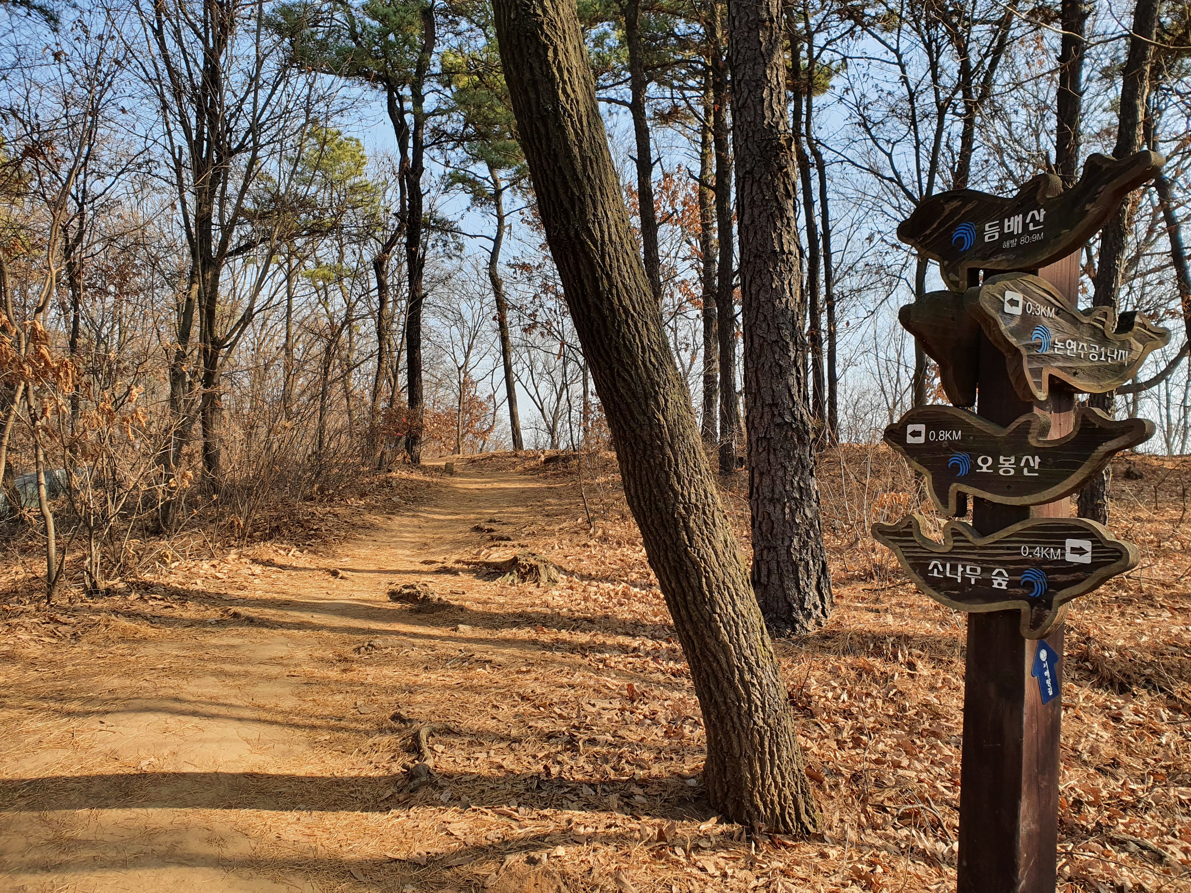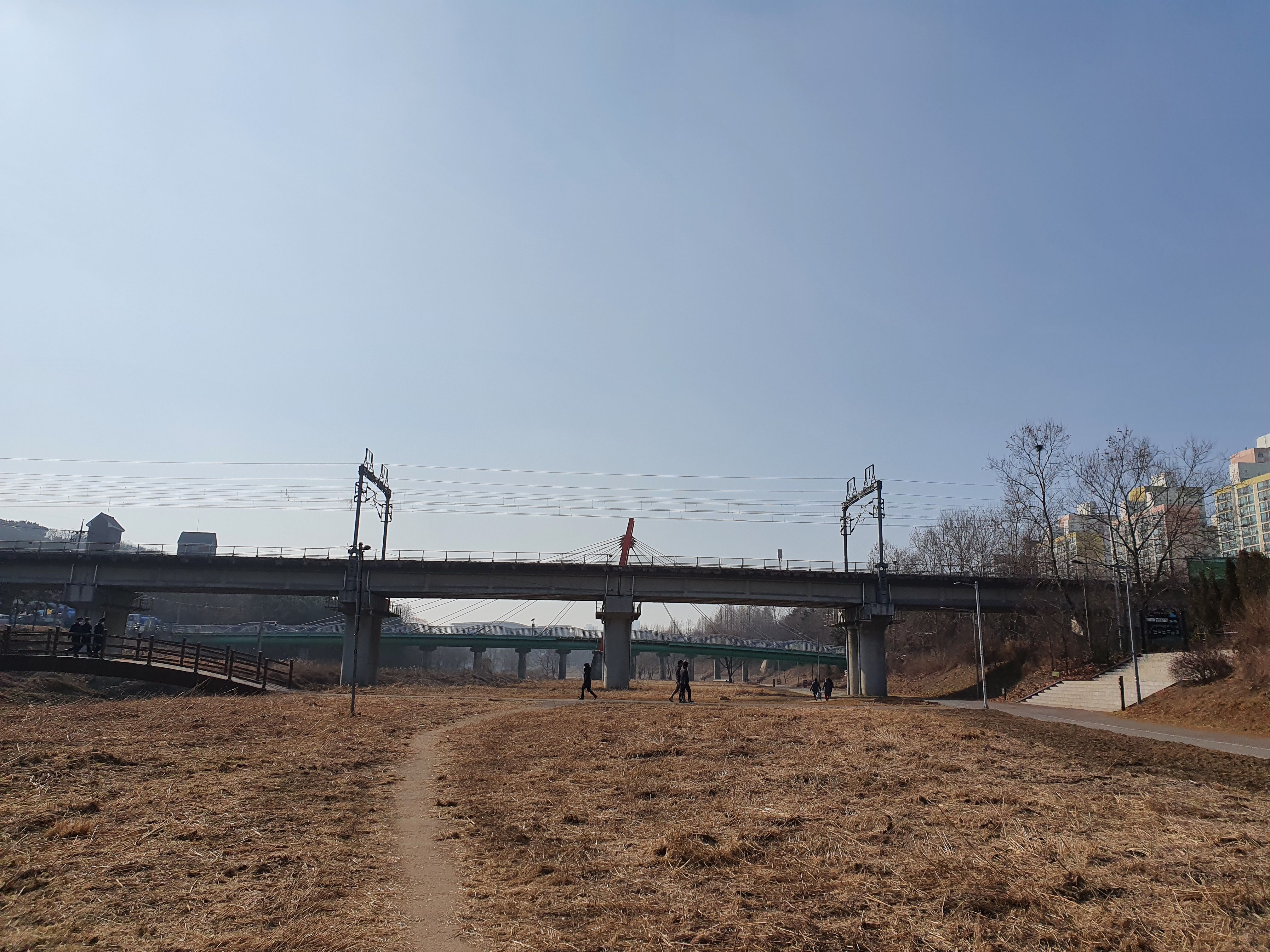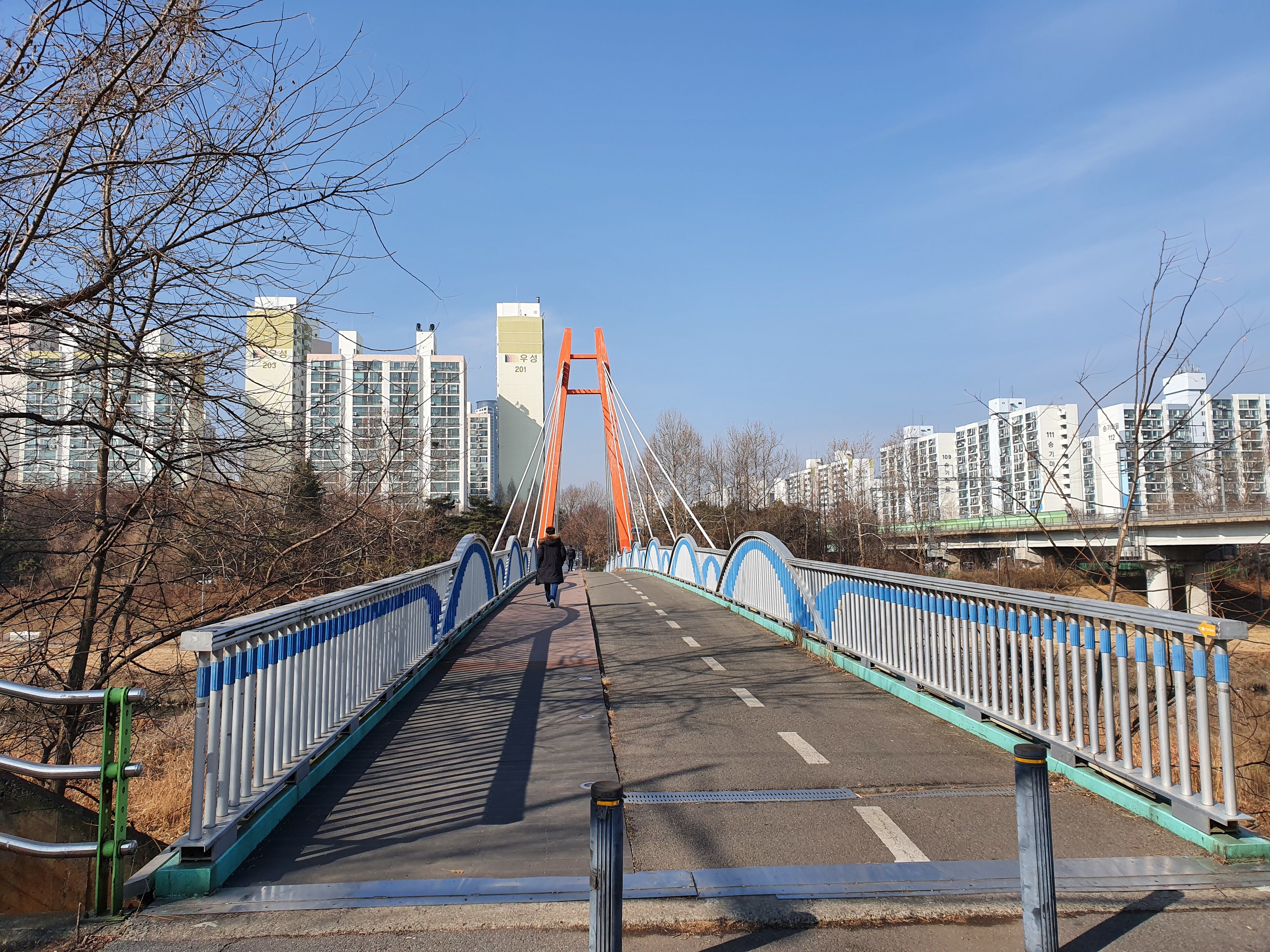 듬배산과 오봉산을 연결해부는 생태통로를 건너간다.