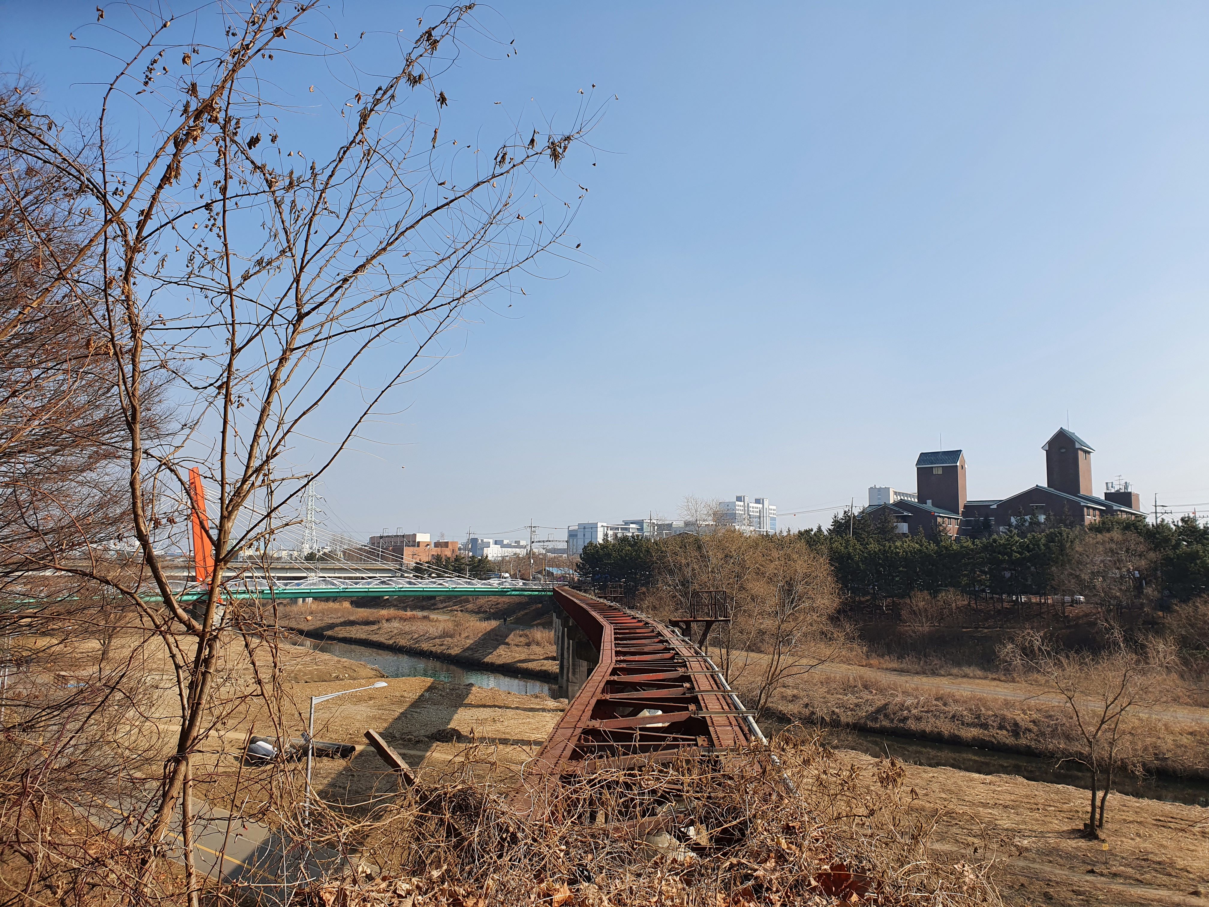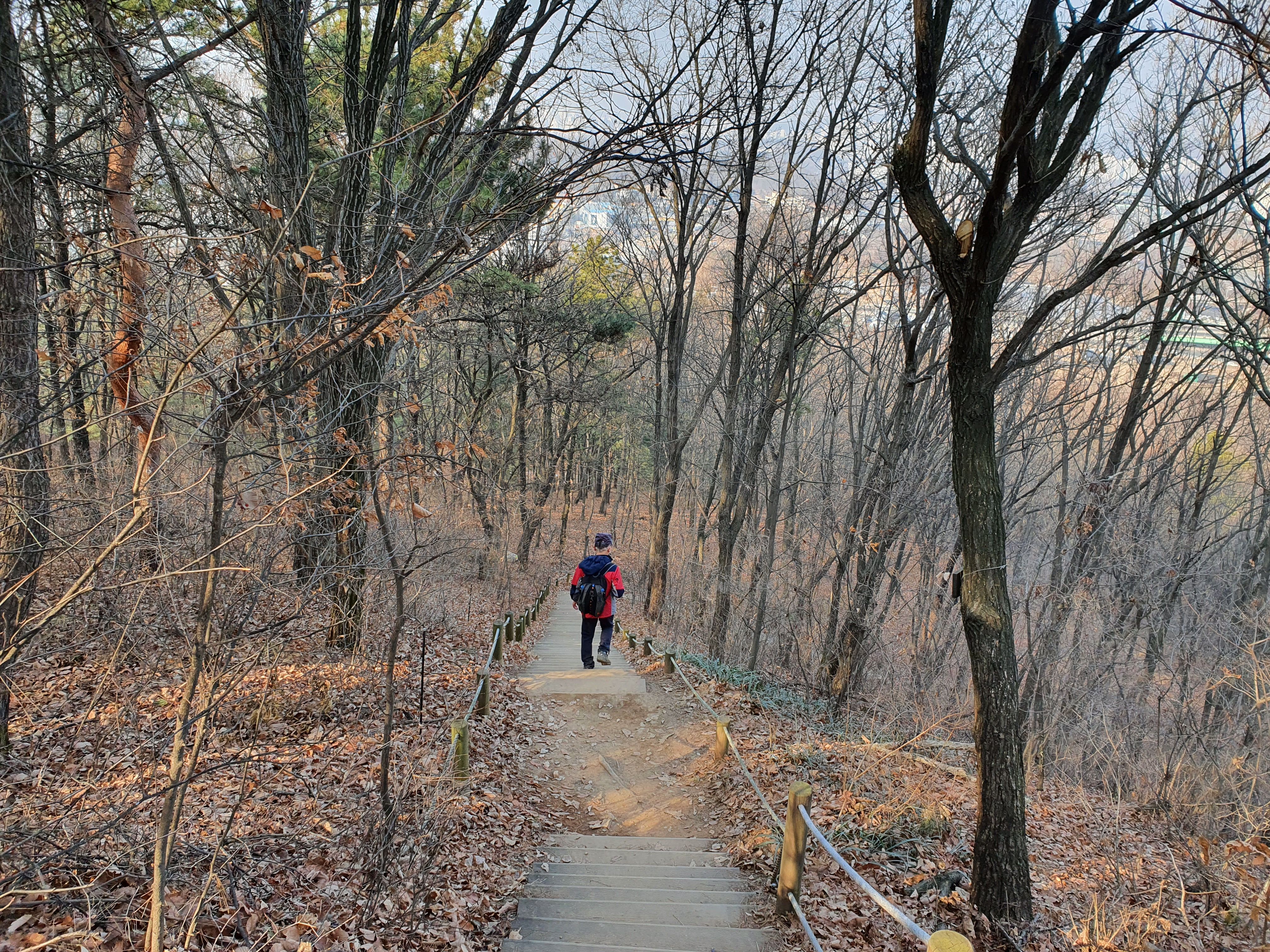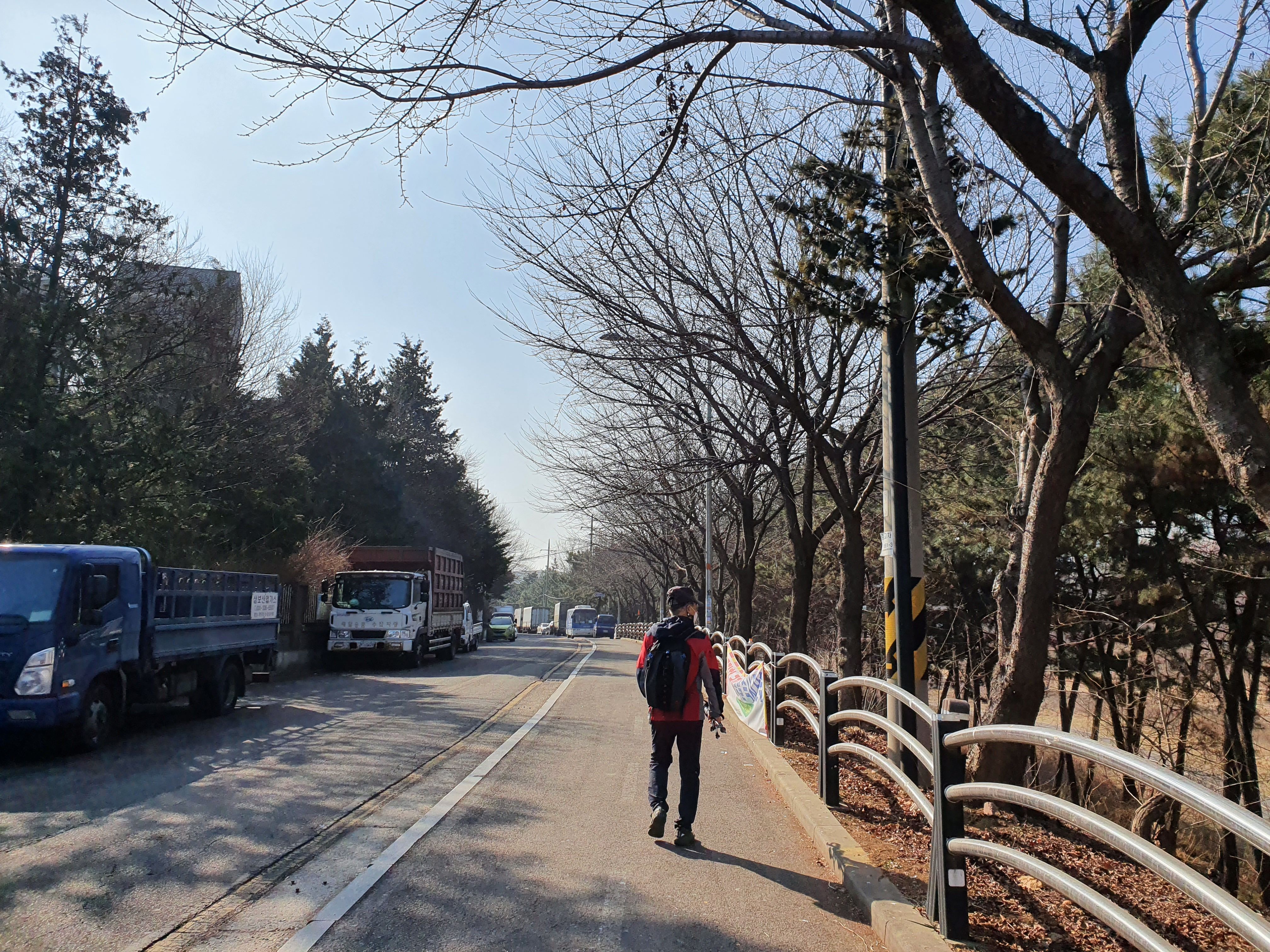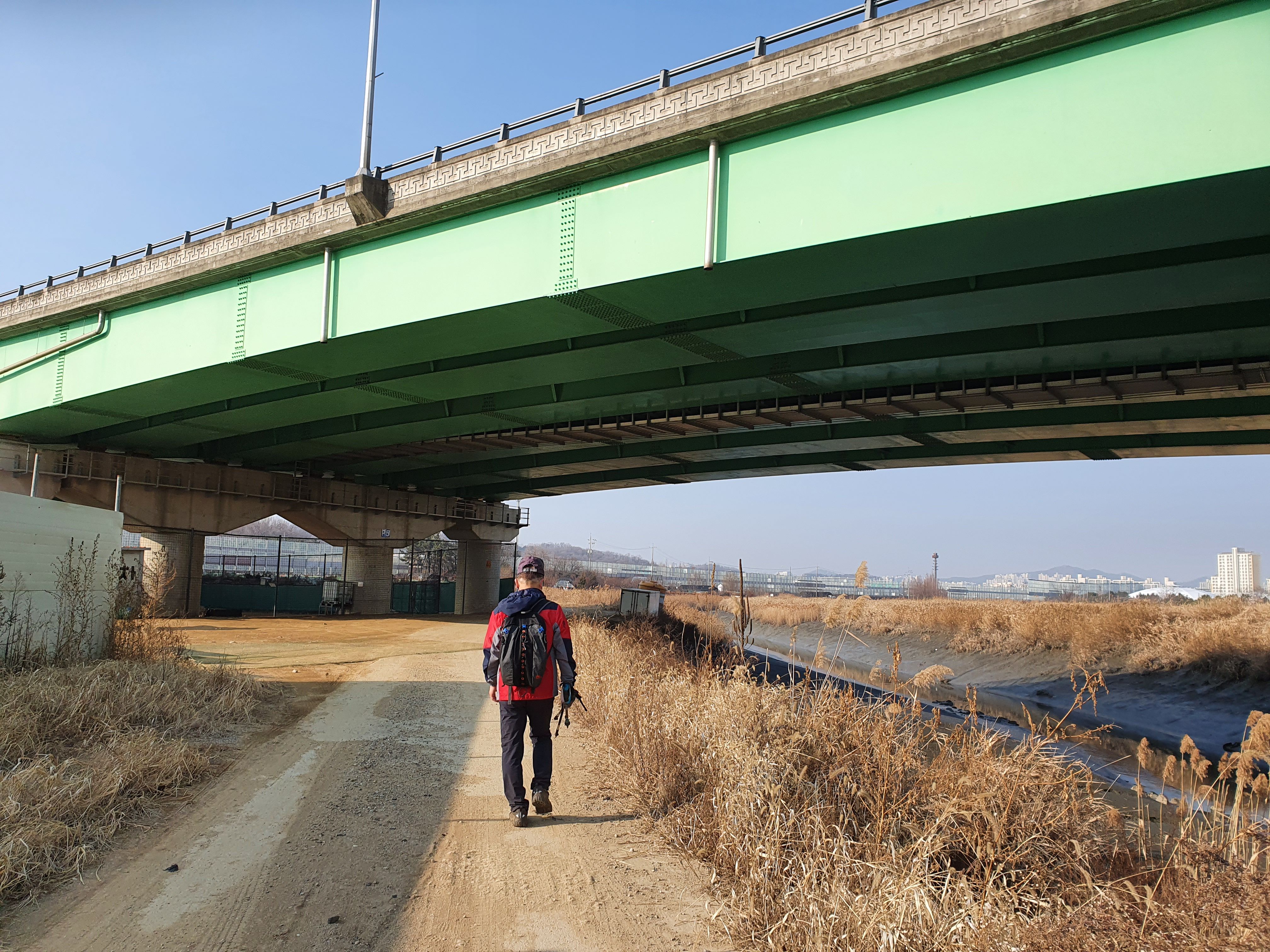 듬배산과 오봉산을 연결해부는 생태통로를 건너간다.