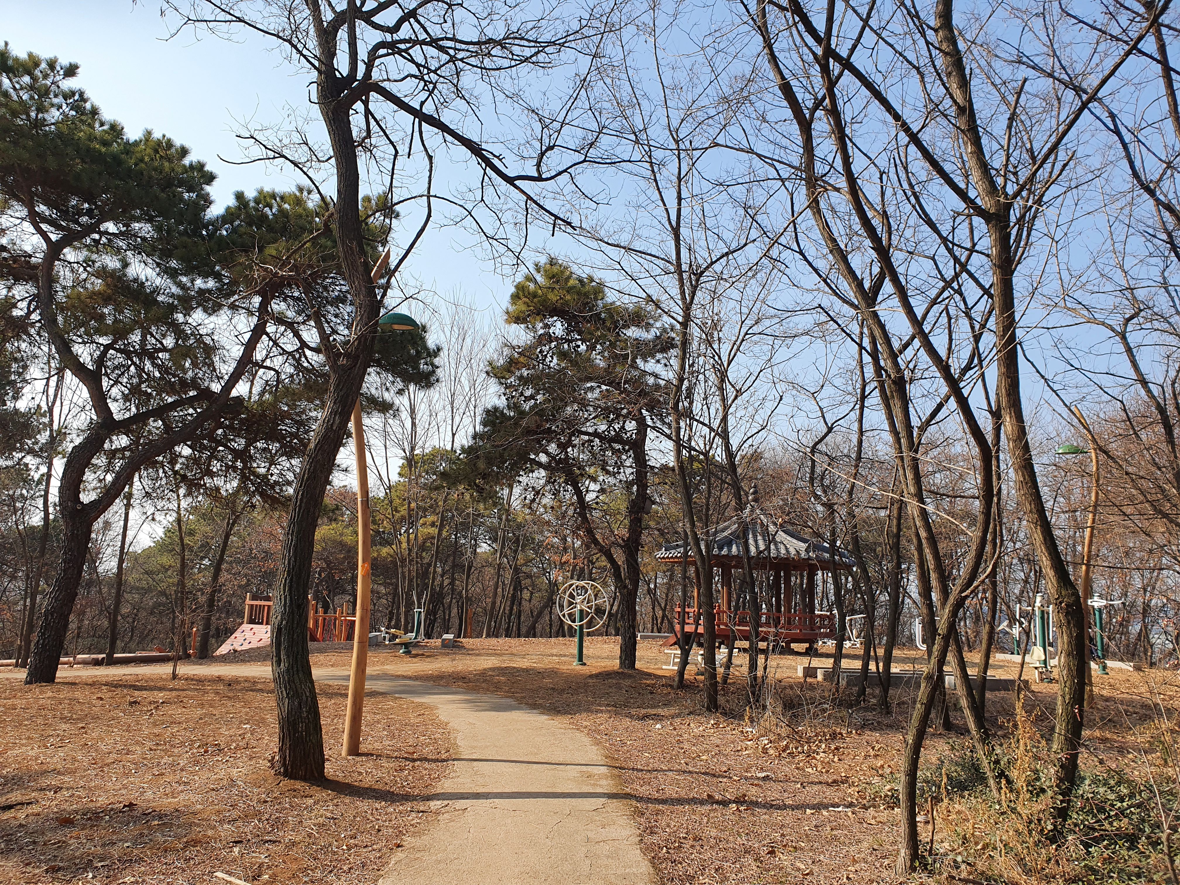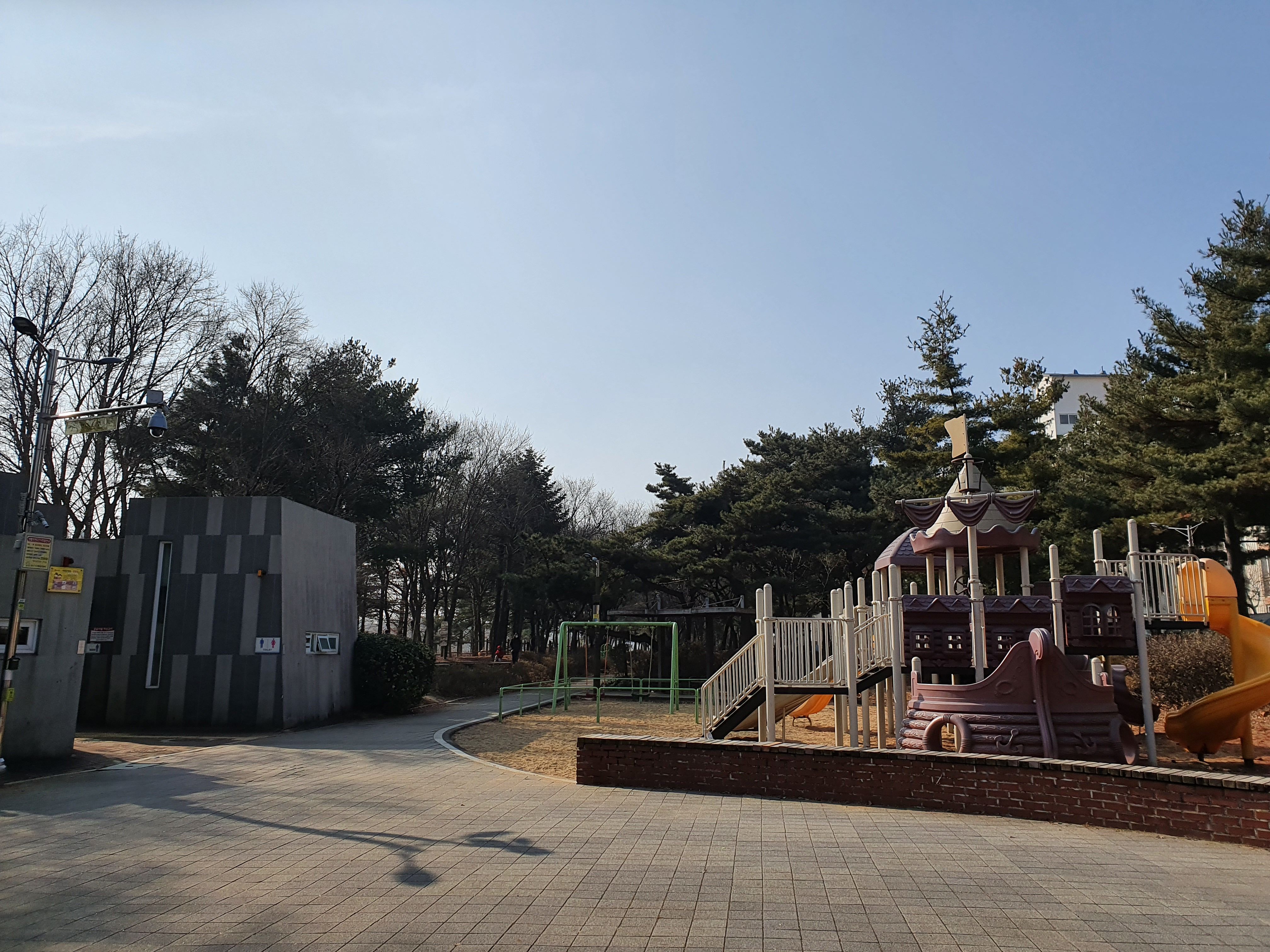 어린이 놀이터와 화장실이 있는 공원을 지나간다.