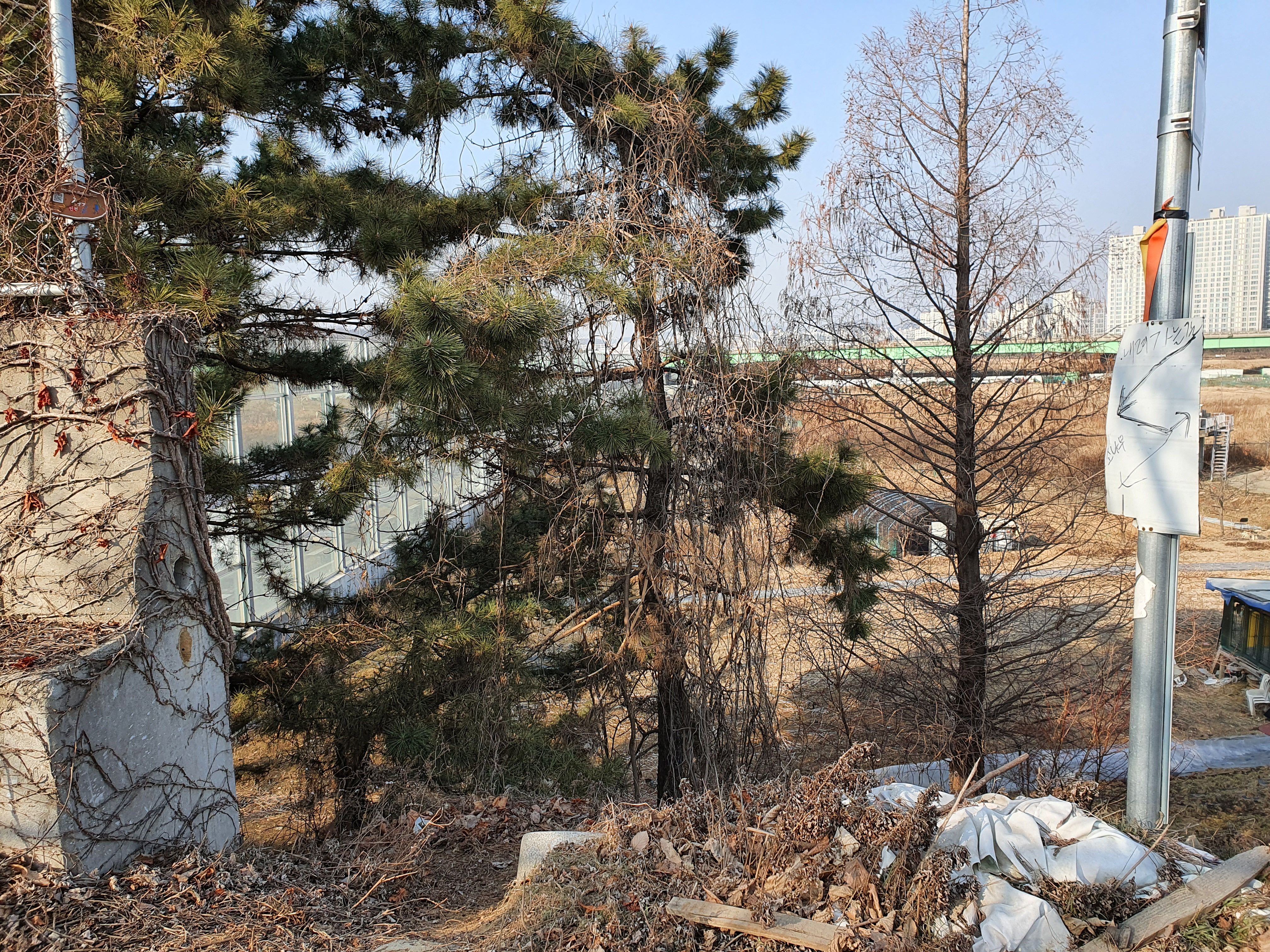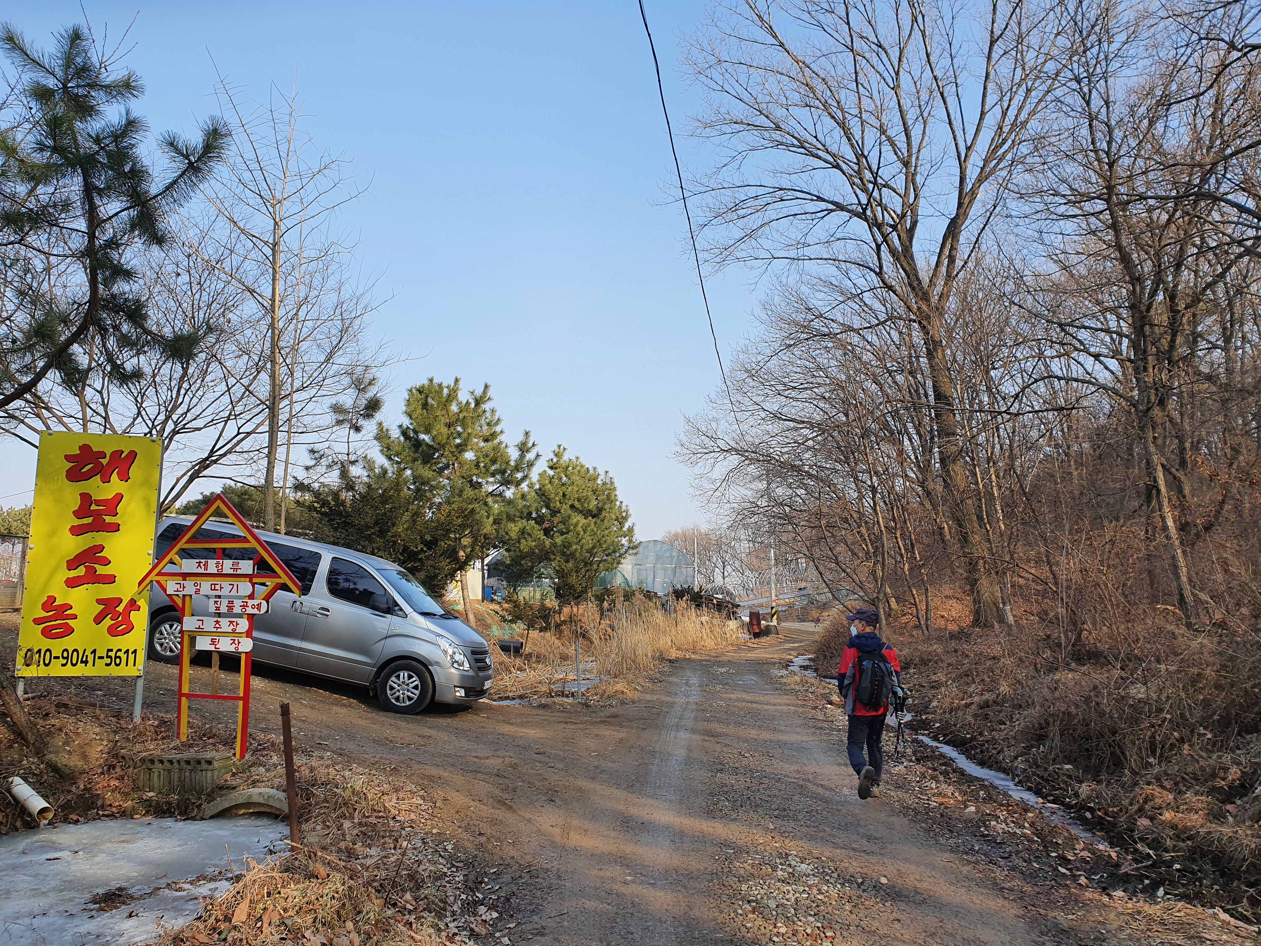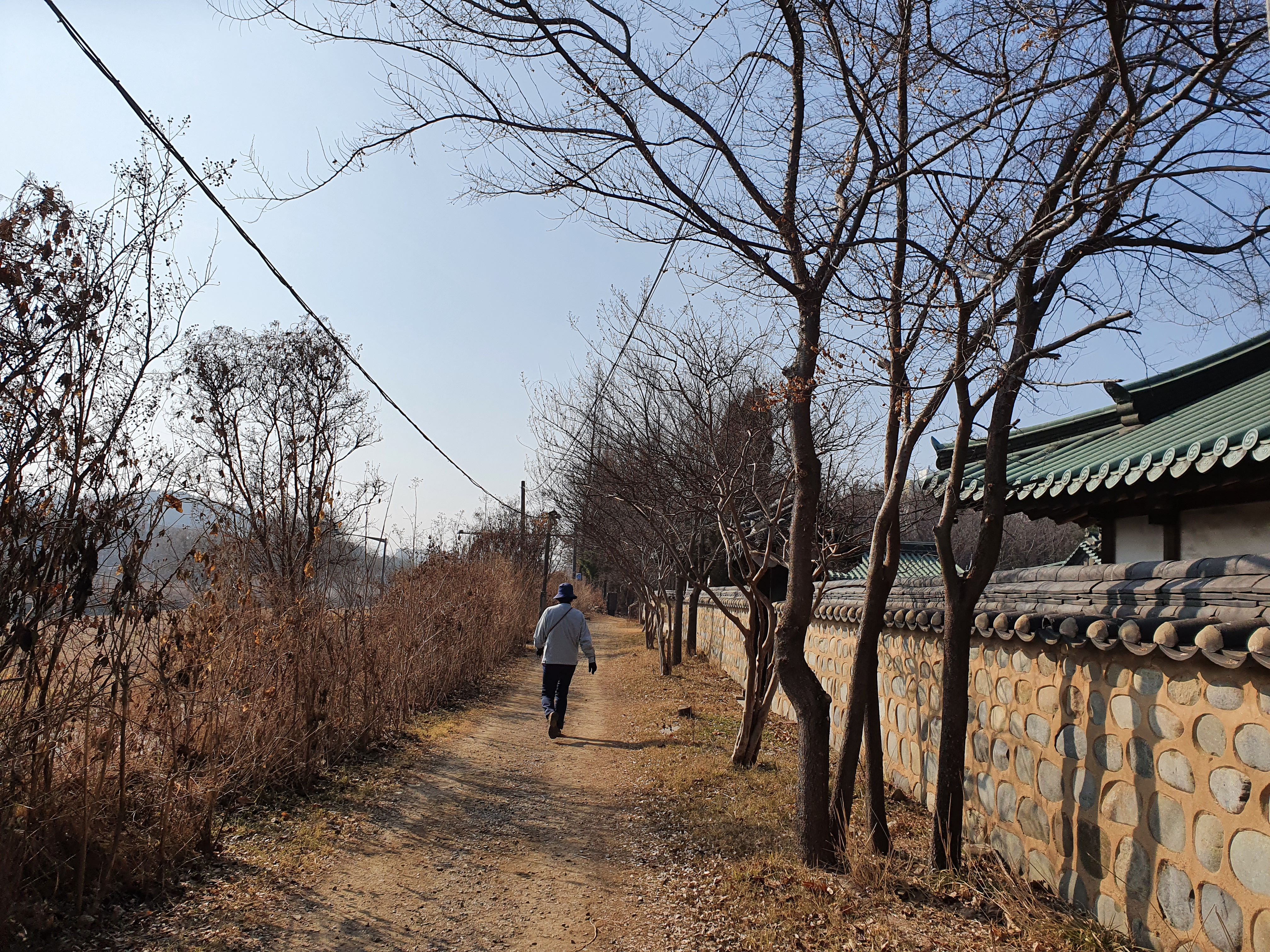 좁은 밭길을 따라 울타리 밖으로 빠져나온다.
