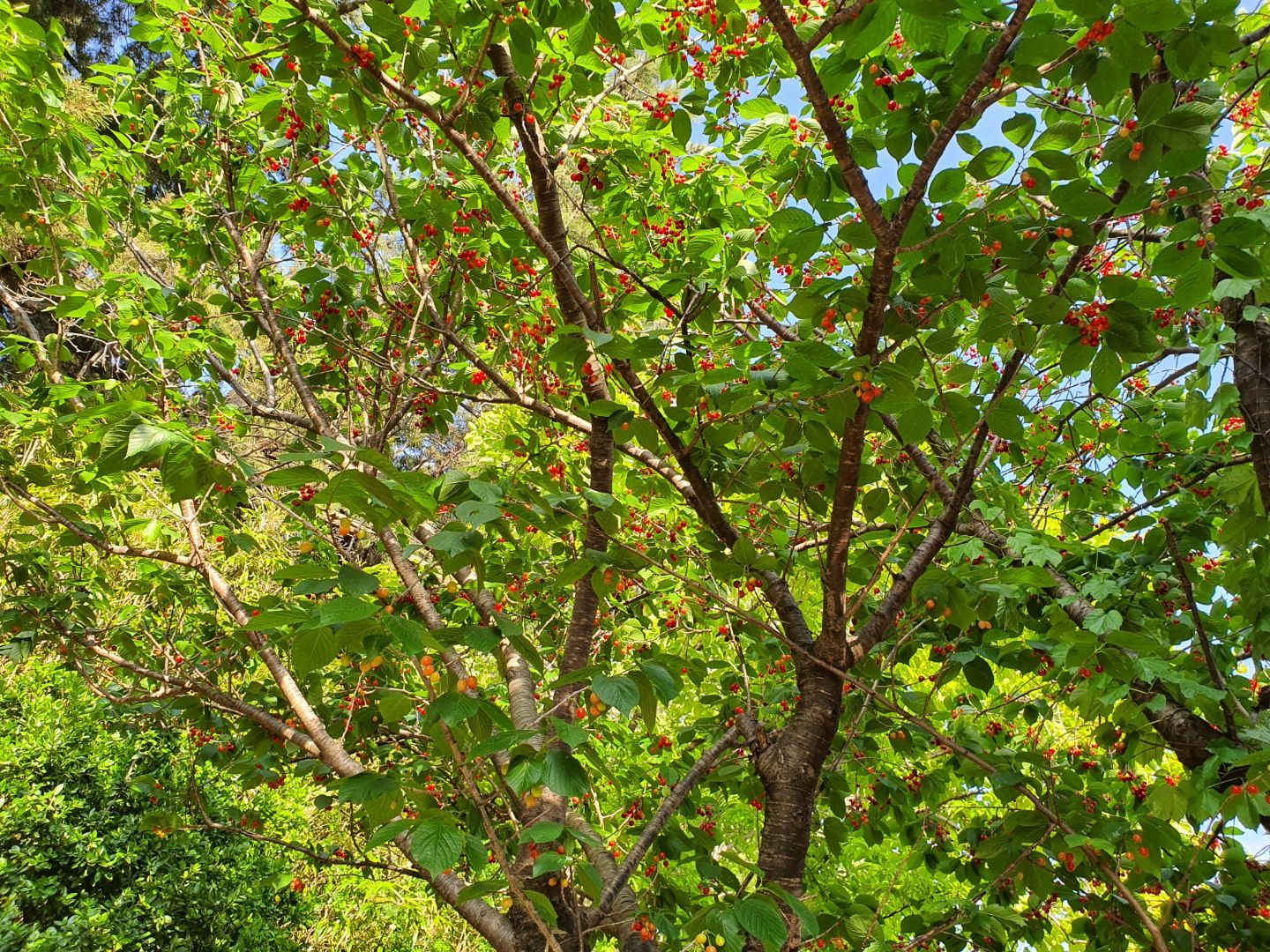 벚지 같아 보이는 달고 맛좋은 열매를 세 사람이