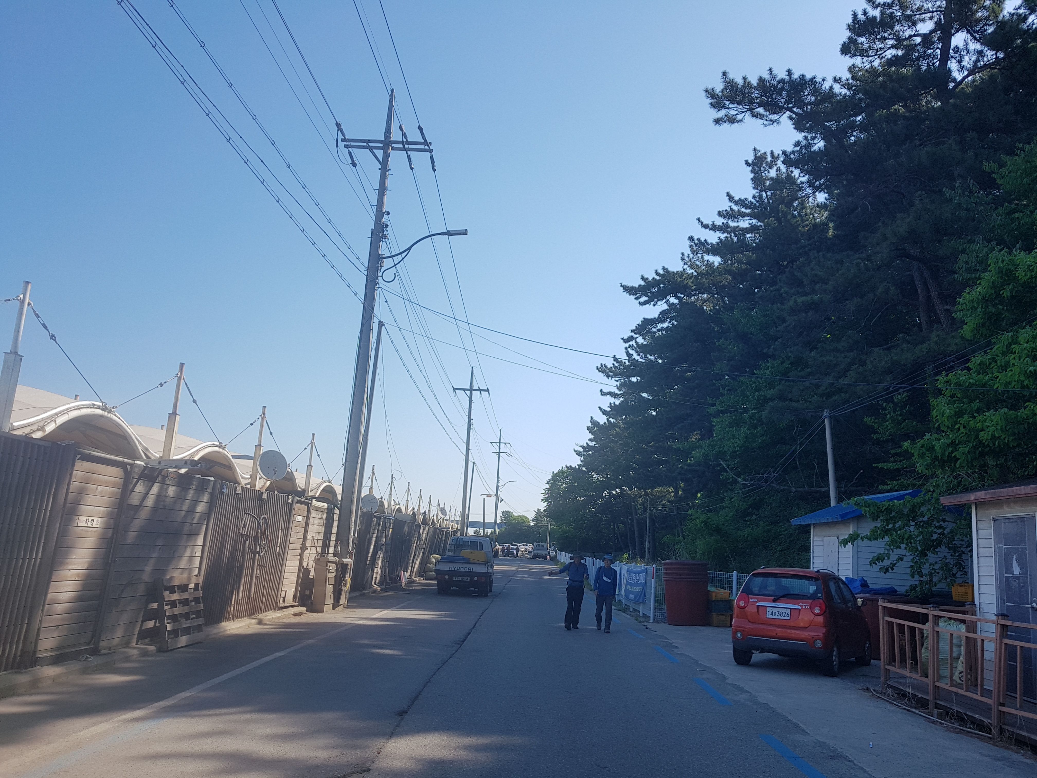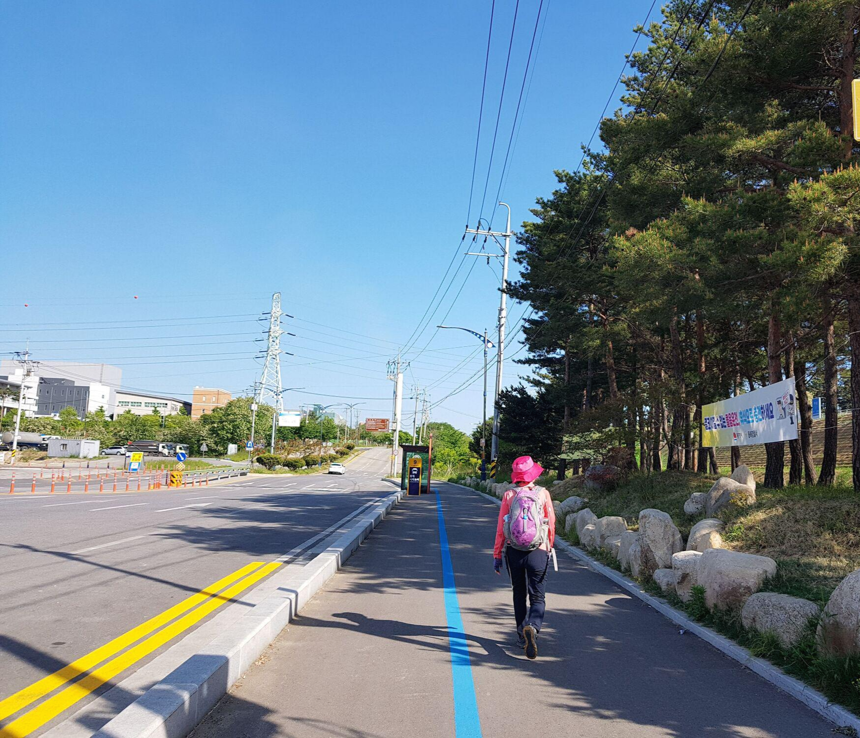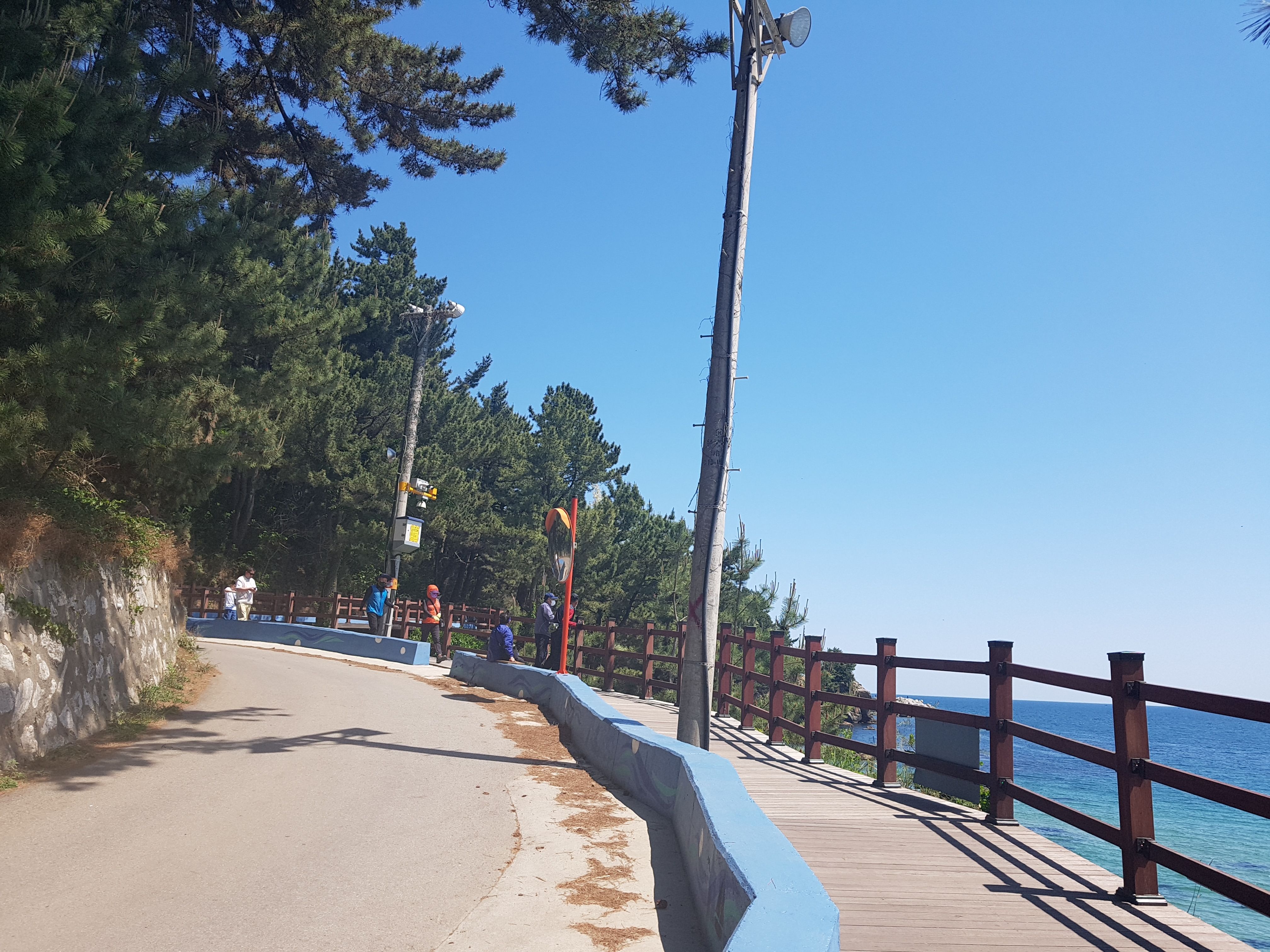 추암해변을 빠져나와 자전거길을 따라 도로변을 걷는다.