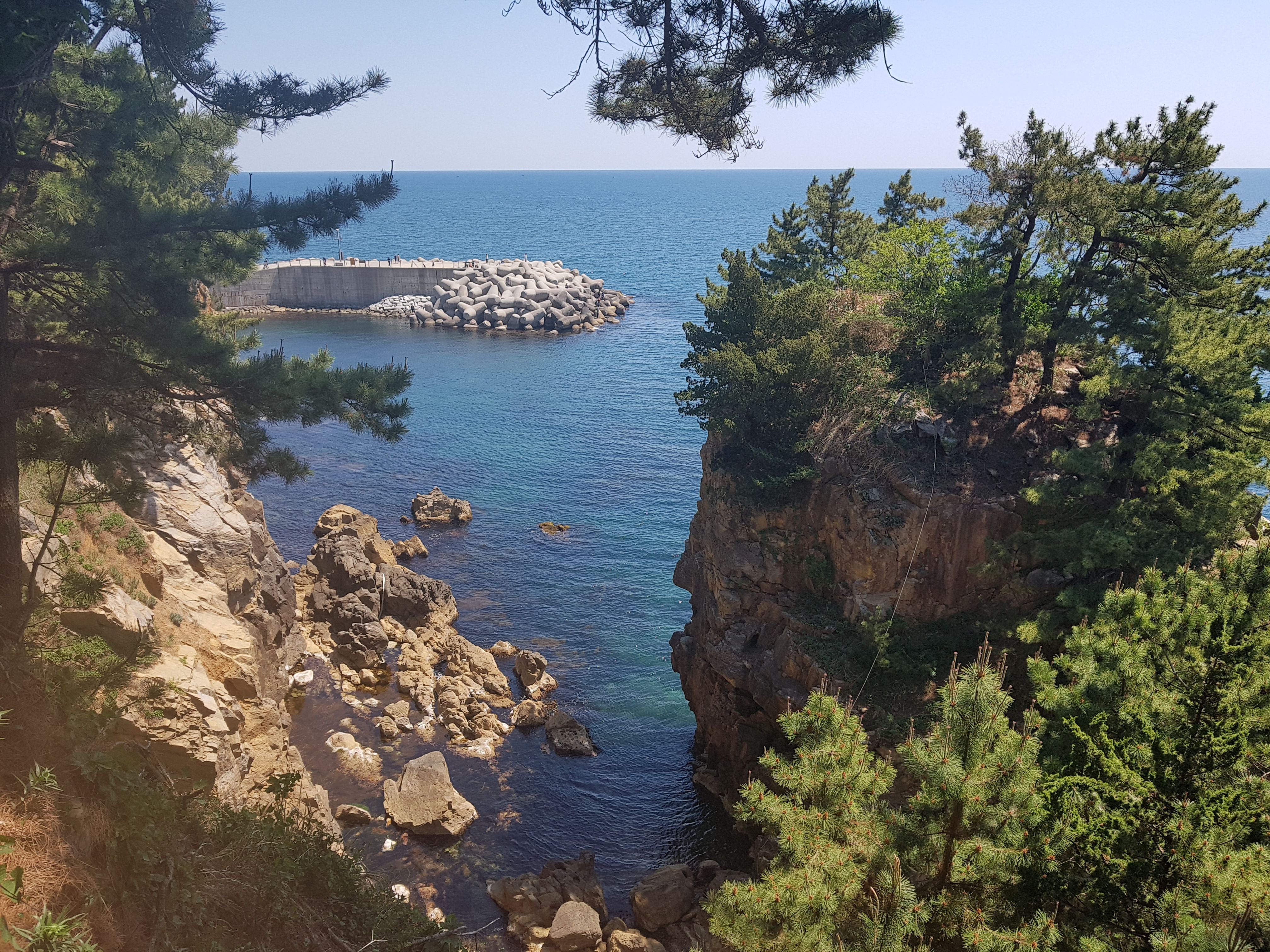 임도로 올라 절벽과 한섬해변을 구경하며 간다.