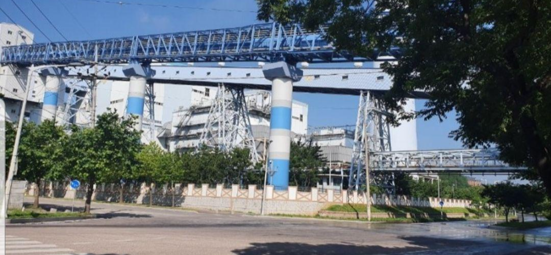 건물과 굴뚝이 눈앞에 펼쳐져 보인다.