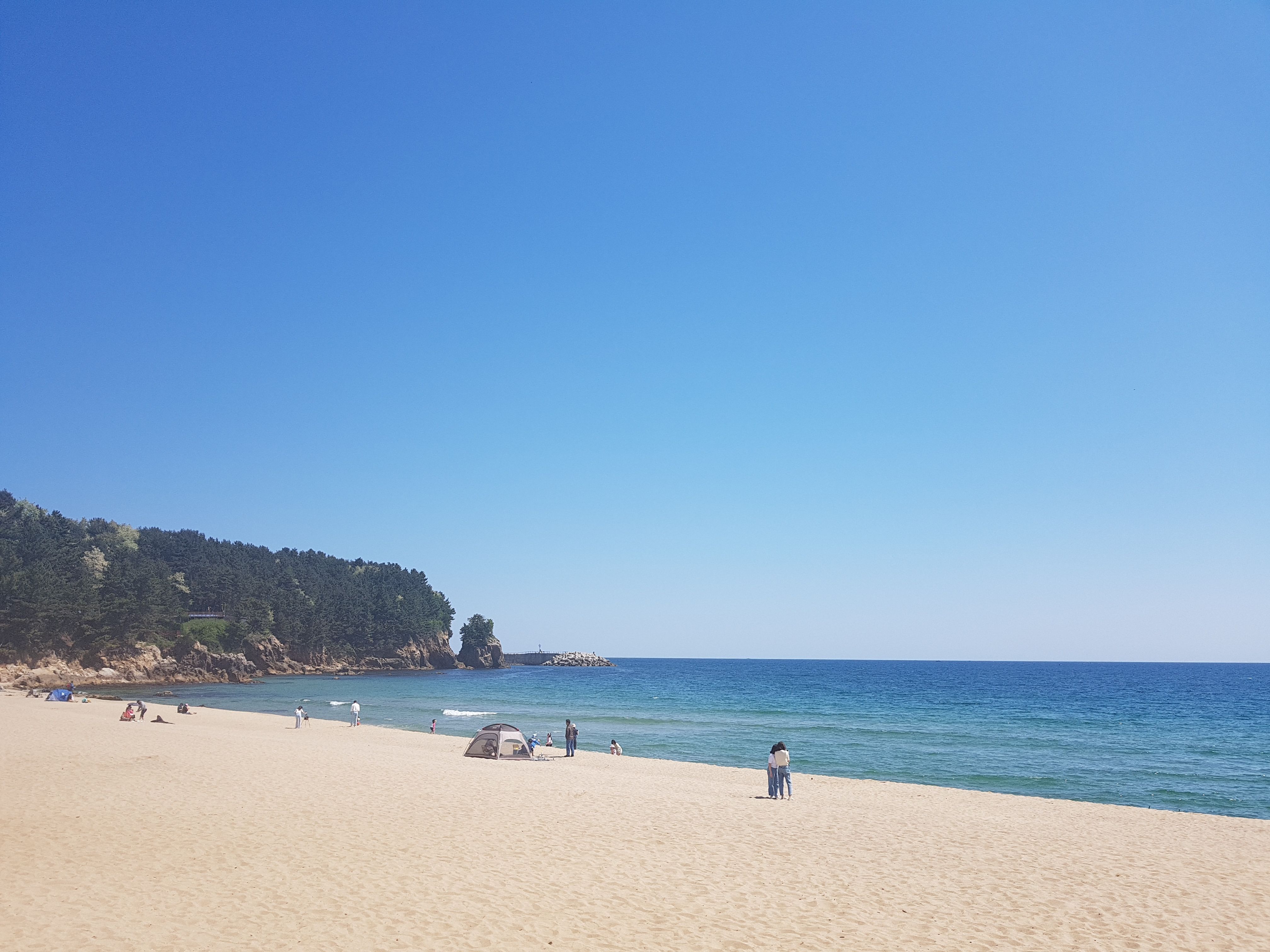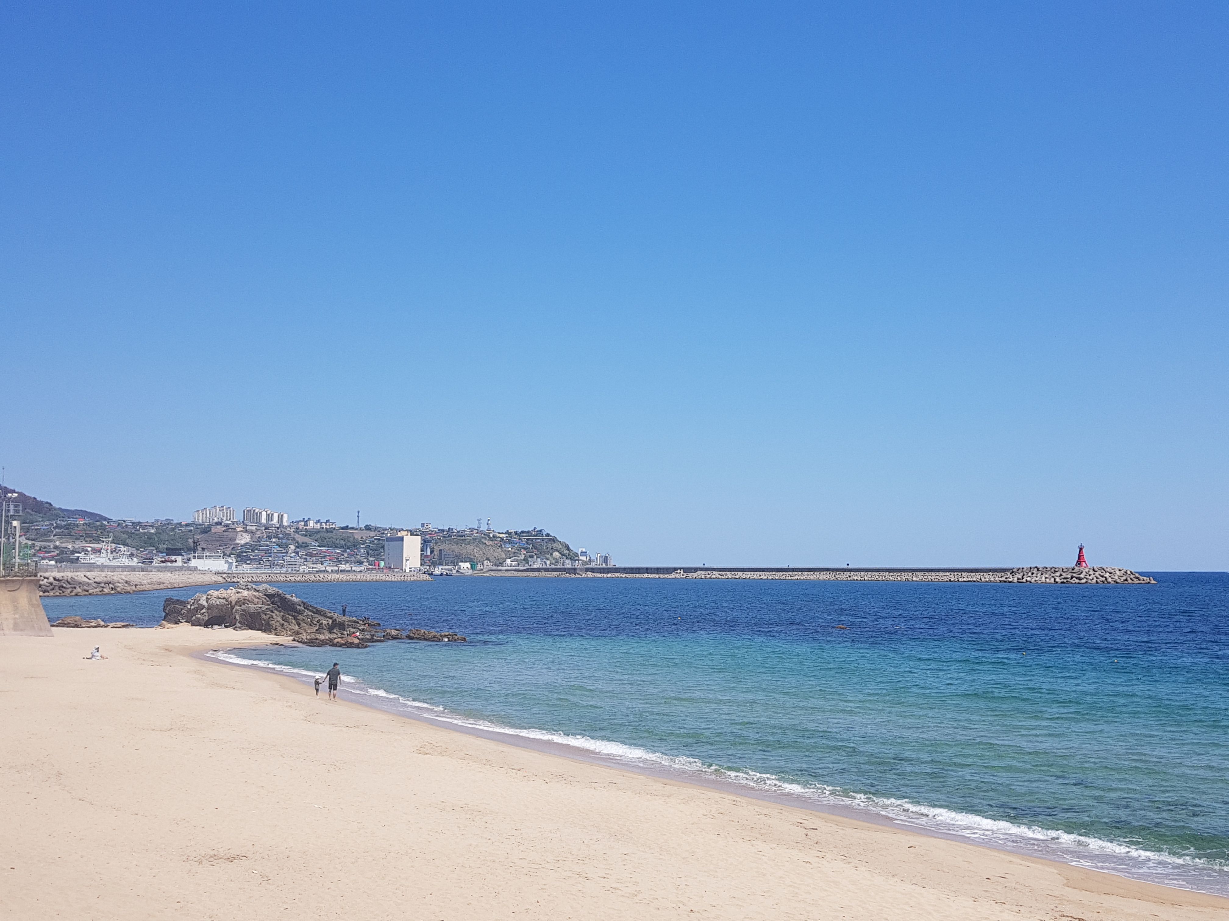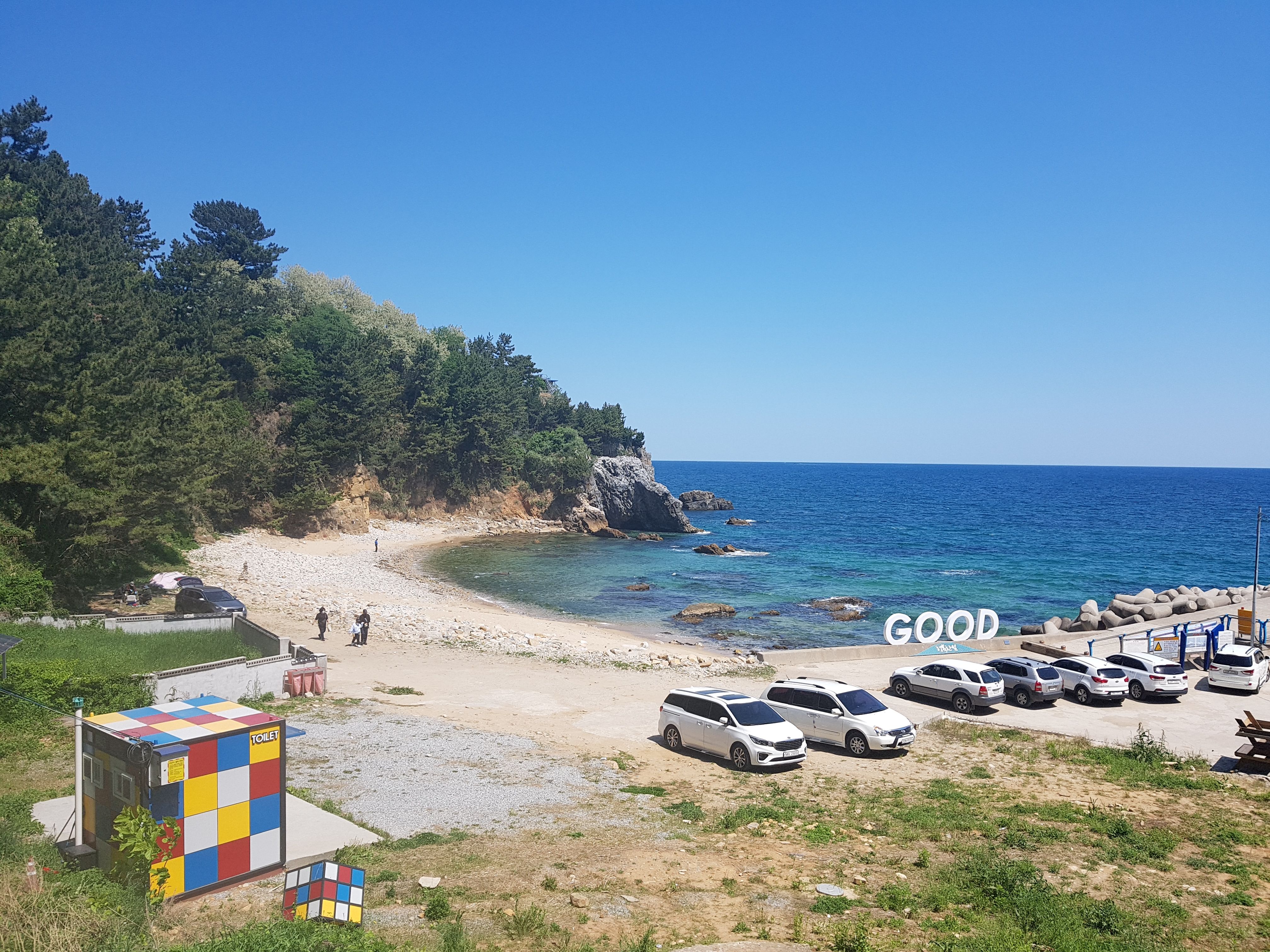 아담한 한섬해변 앞에는 주차장과 편의점이 있어