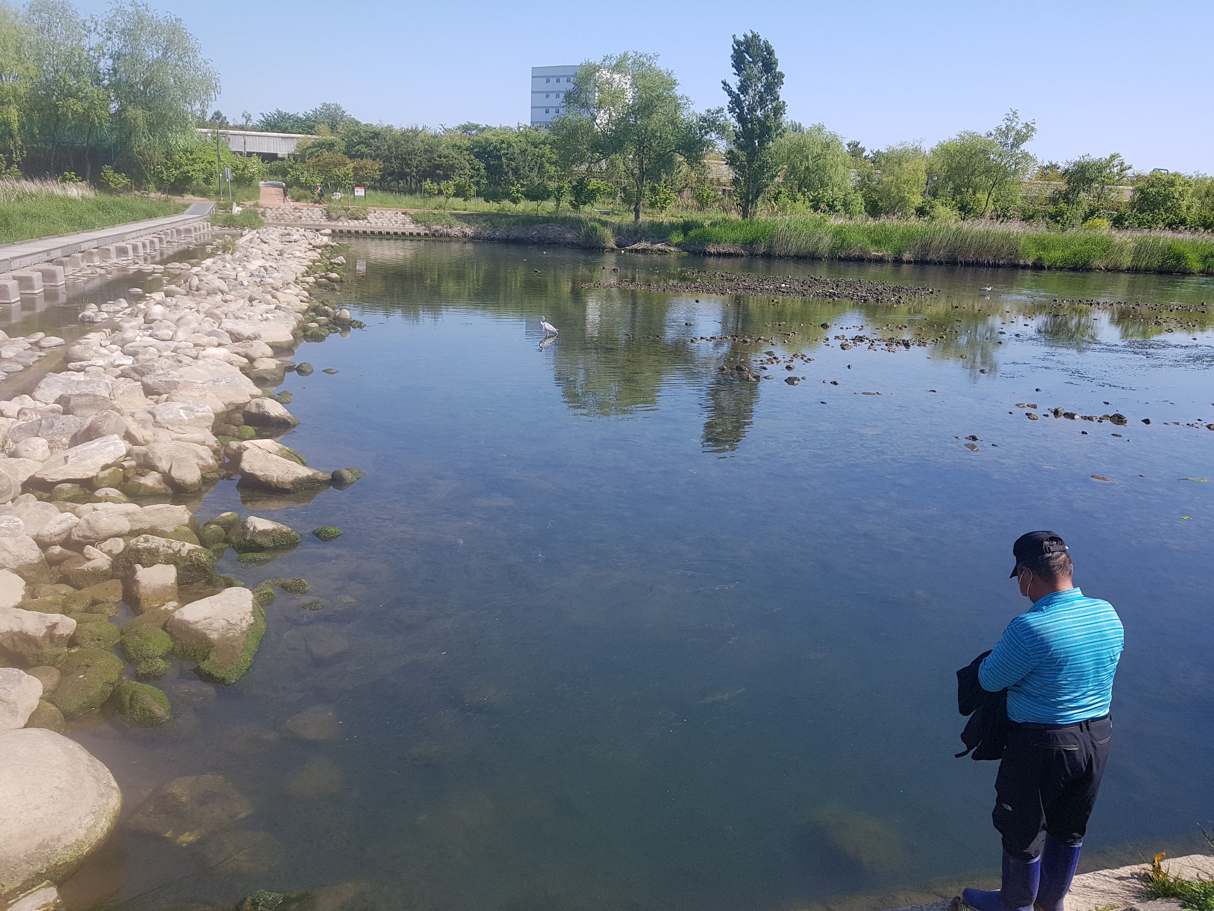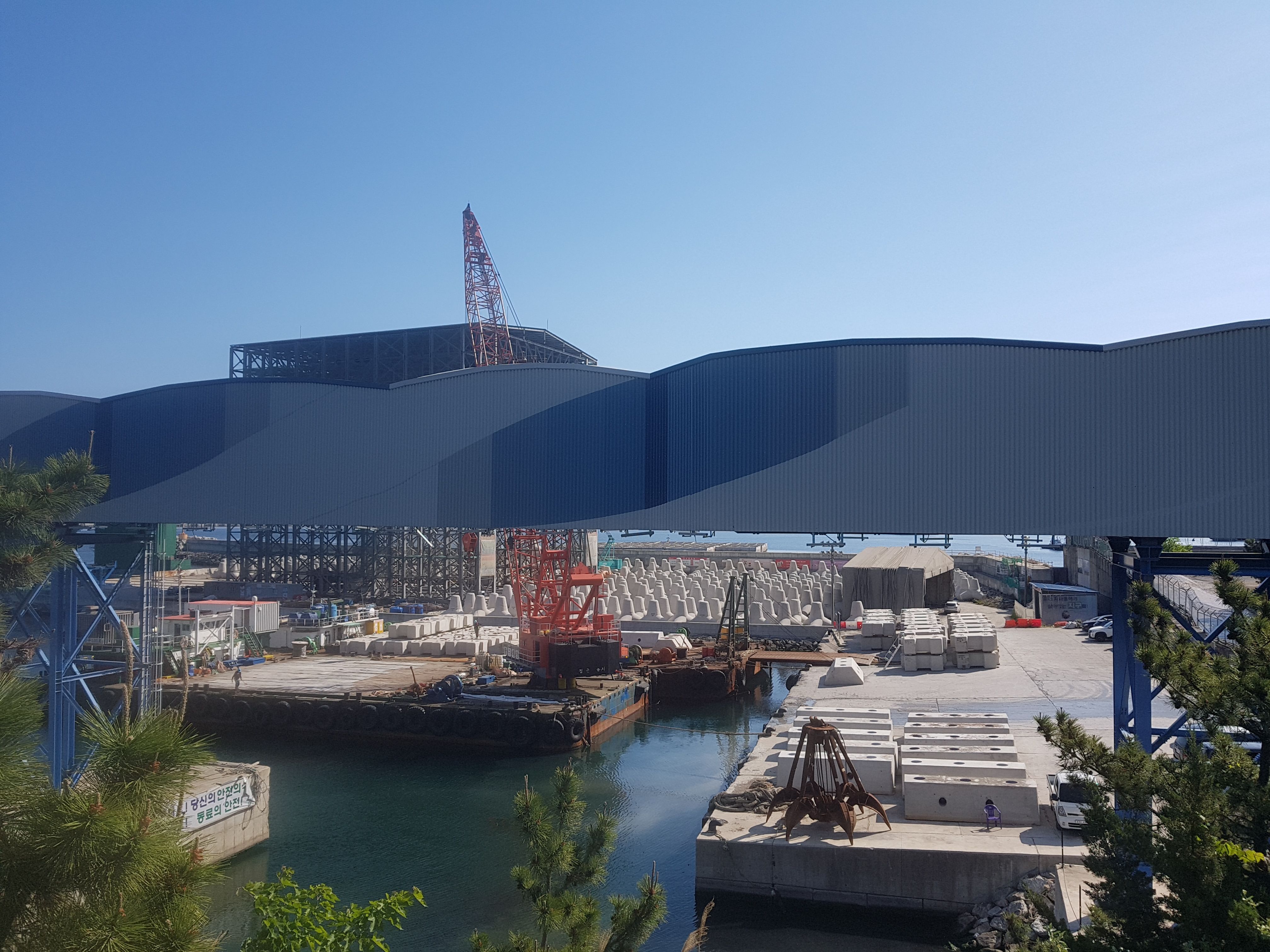 전천을 벗어나 시멘트 운반통로 아래를 통과한다.