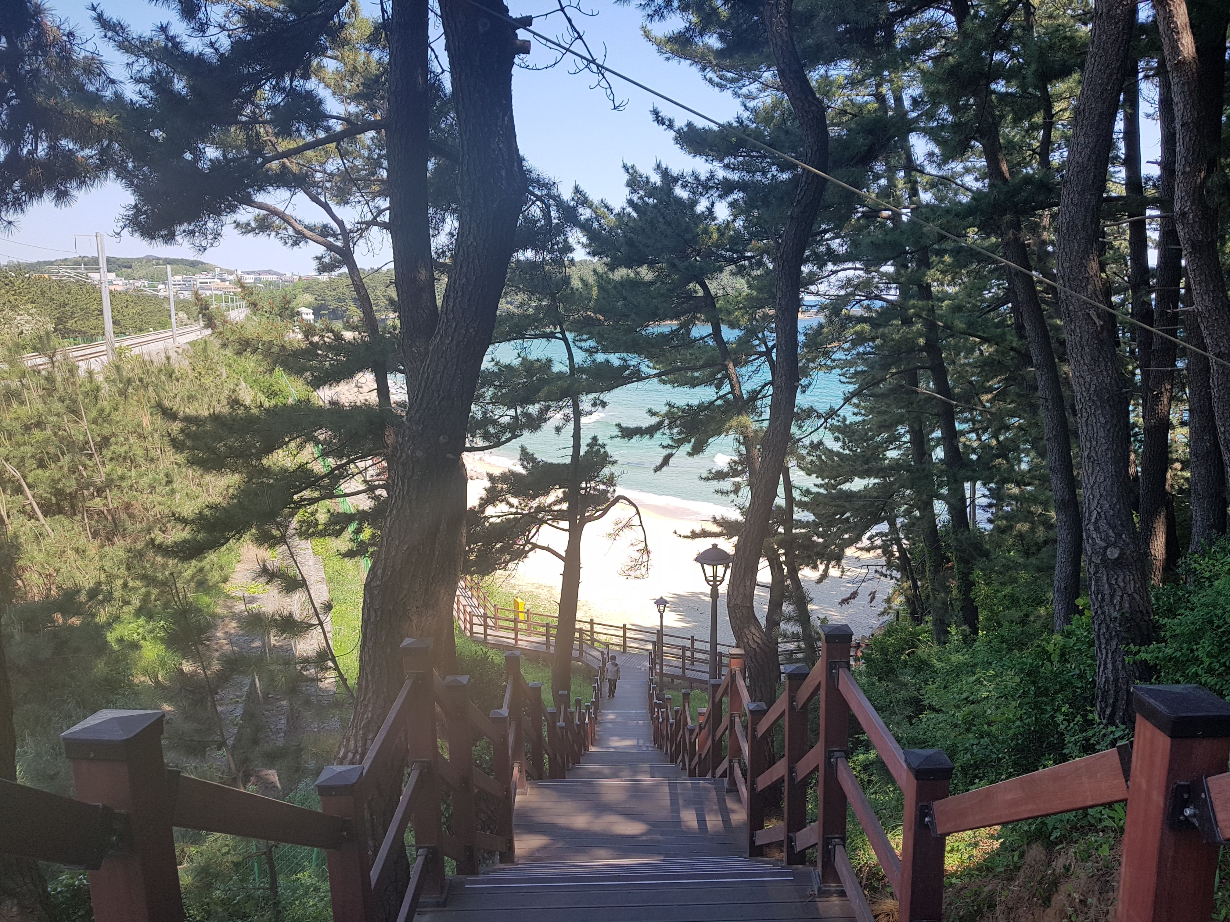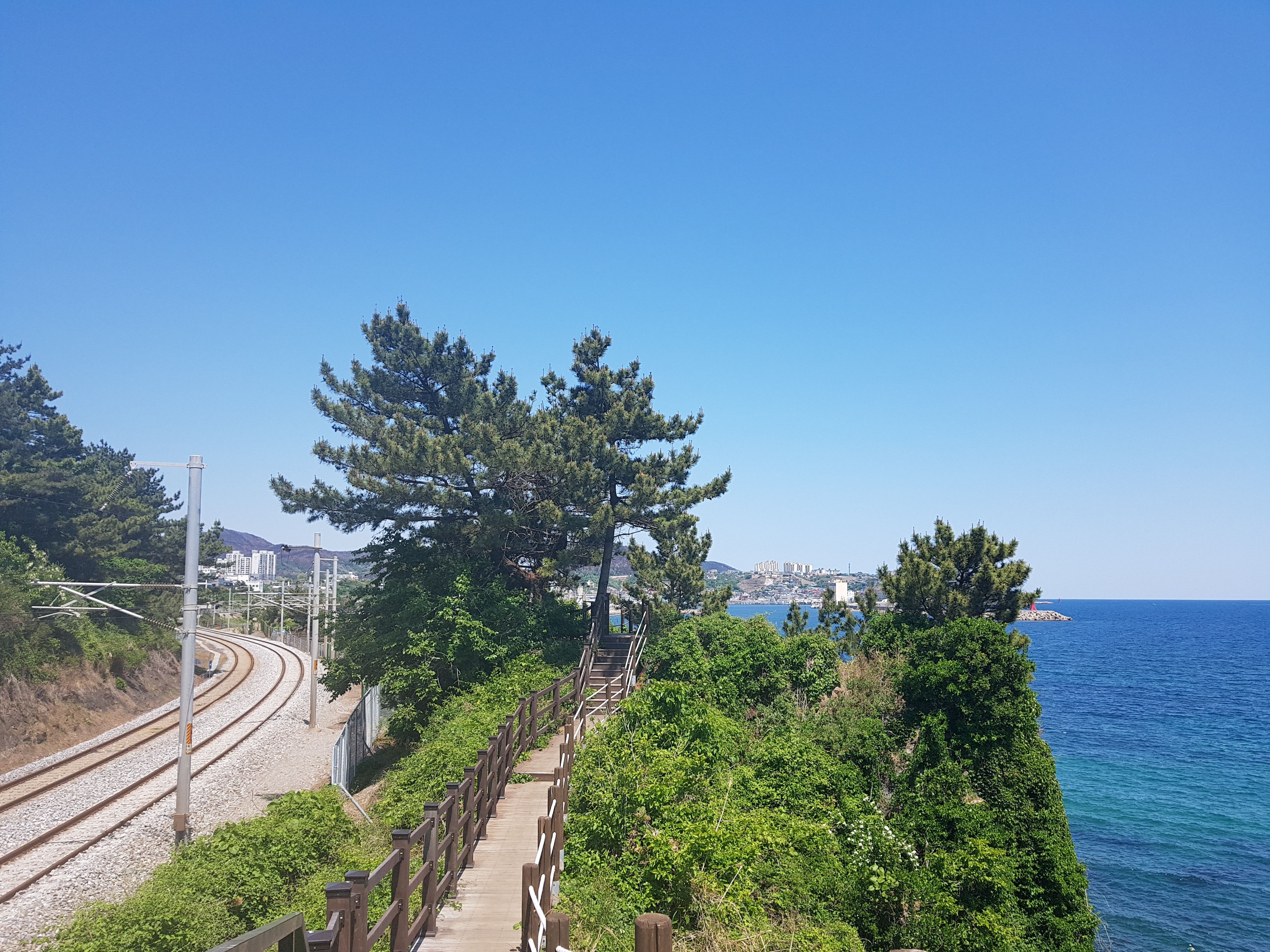 영동선 철로가 보이는 절벽으로 이어지는 해파랑길