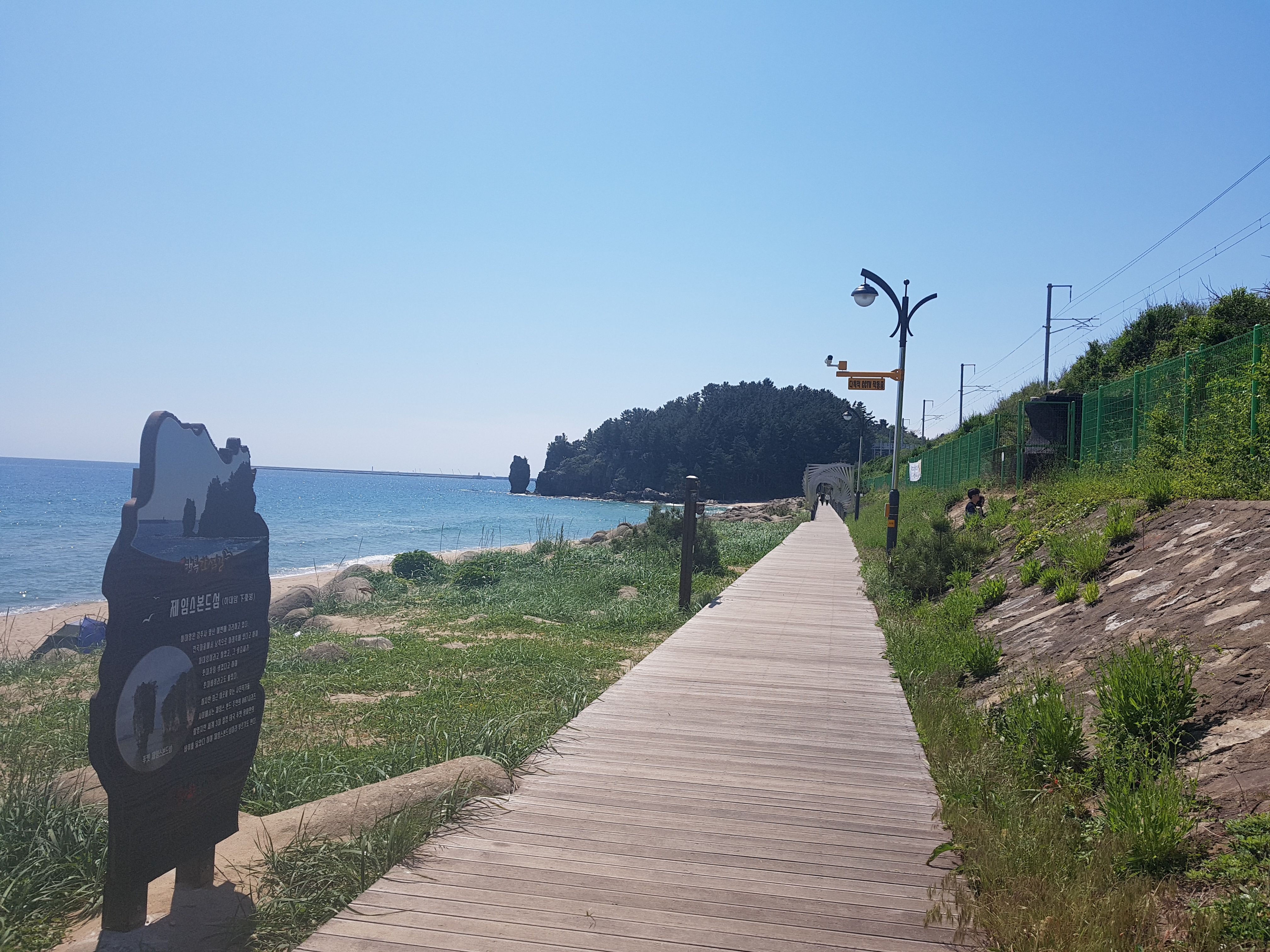추암역앞에 있는 해파랑길 33코스 인증대앞에서
