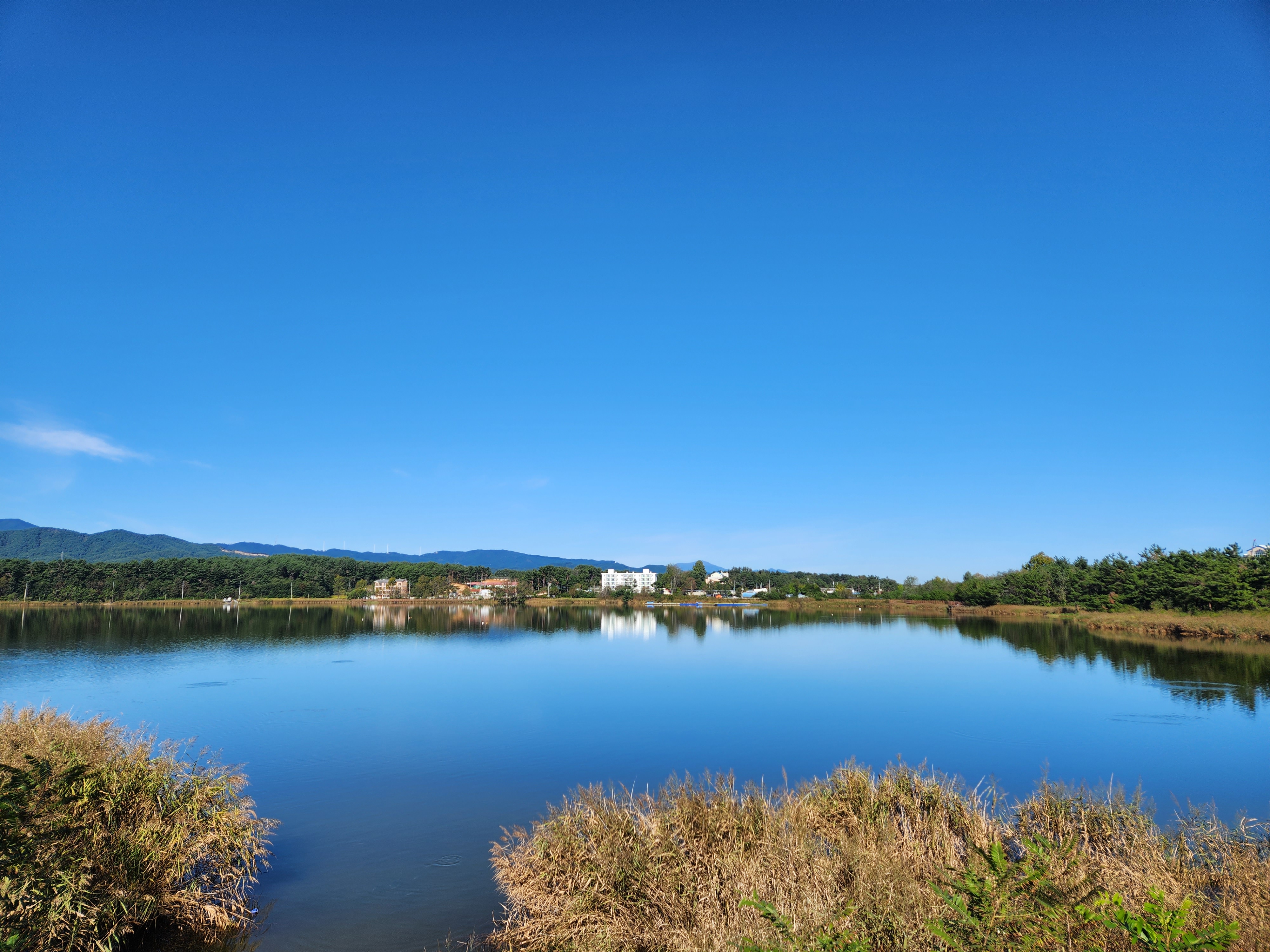 파아란 하늘빛과 물빛이 맞닿아 있는데