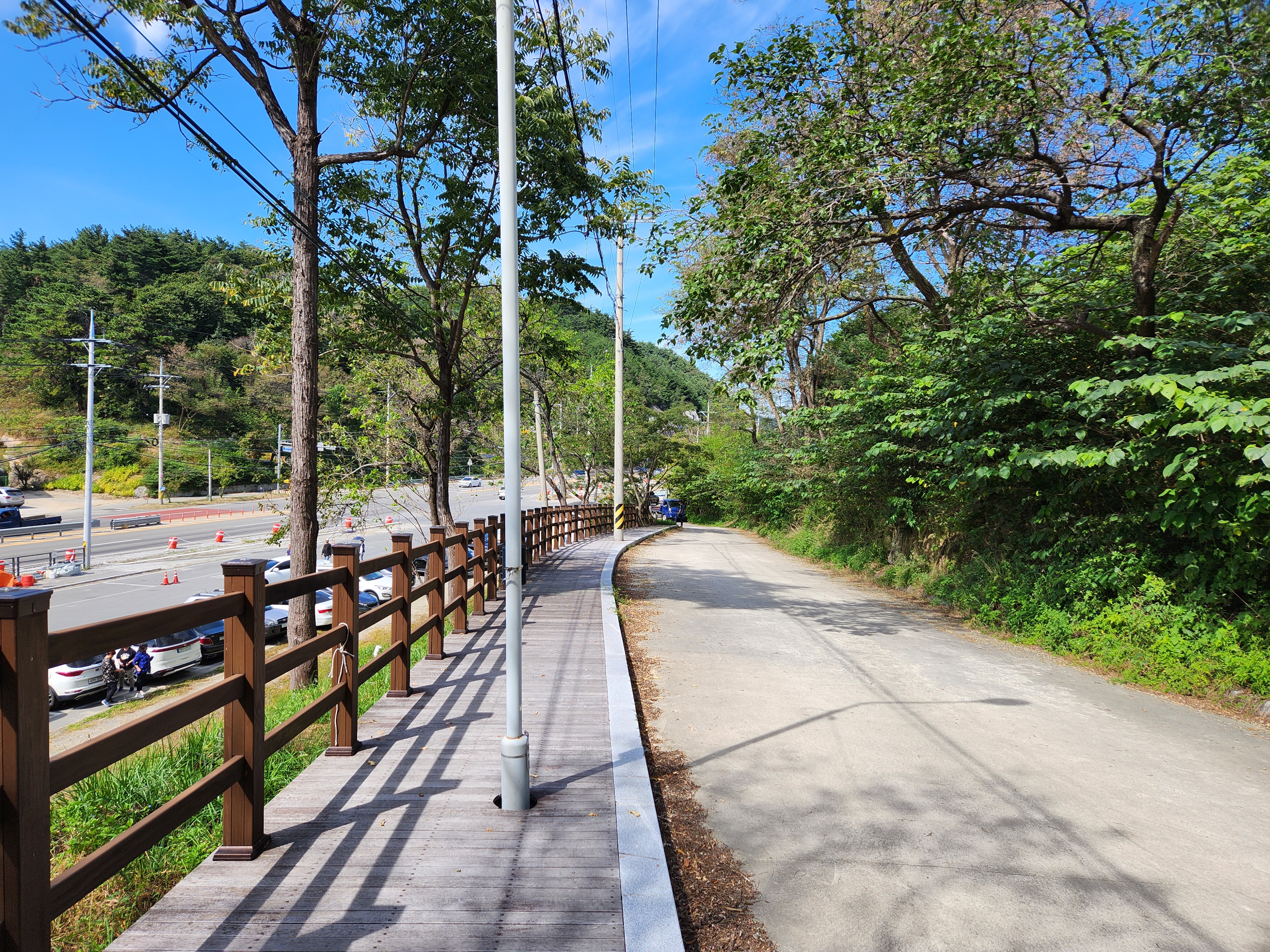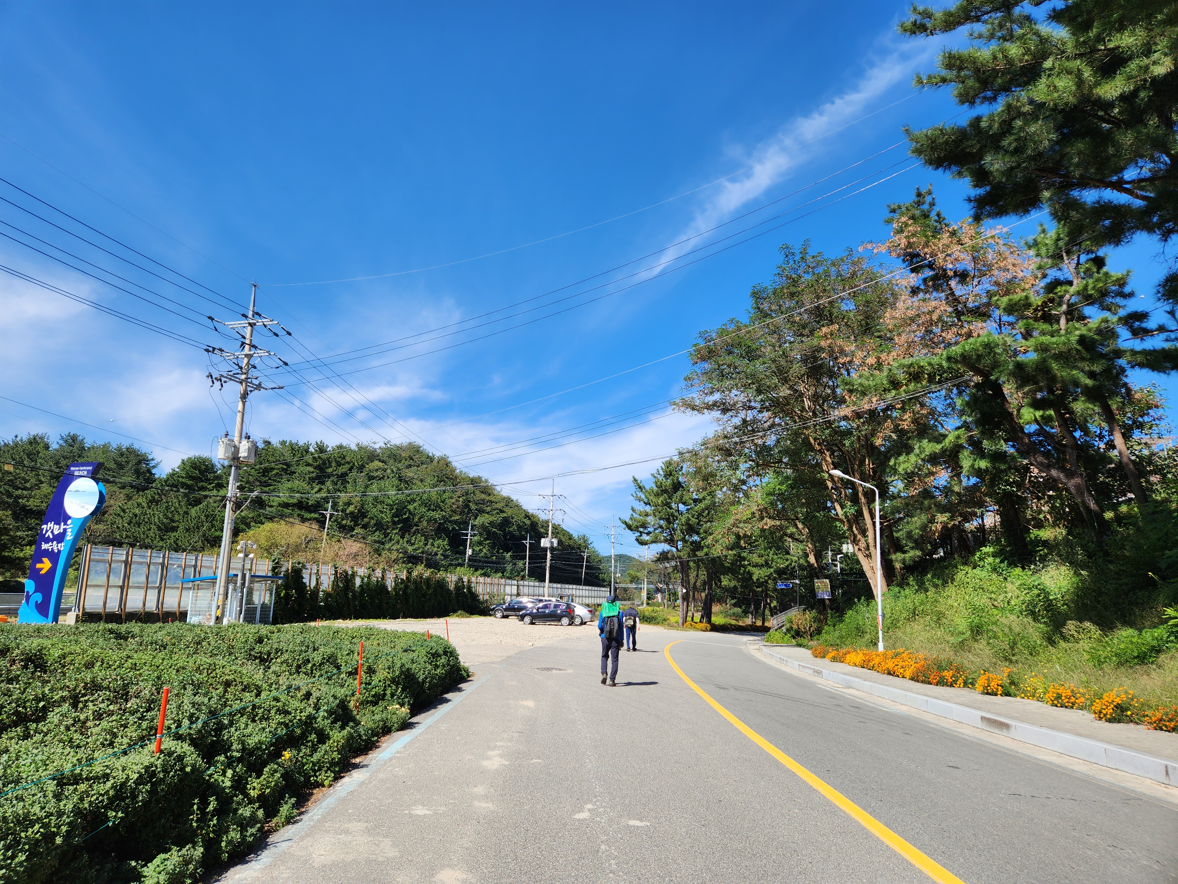 숲에서 나오니 길가에 큰 주차장이 있고