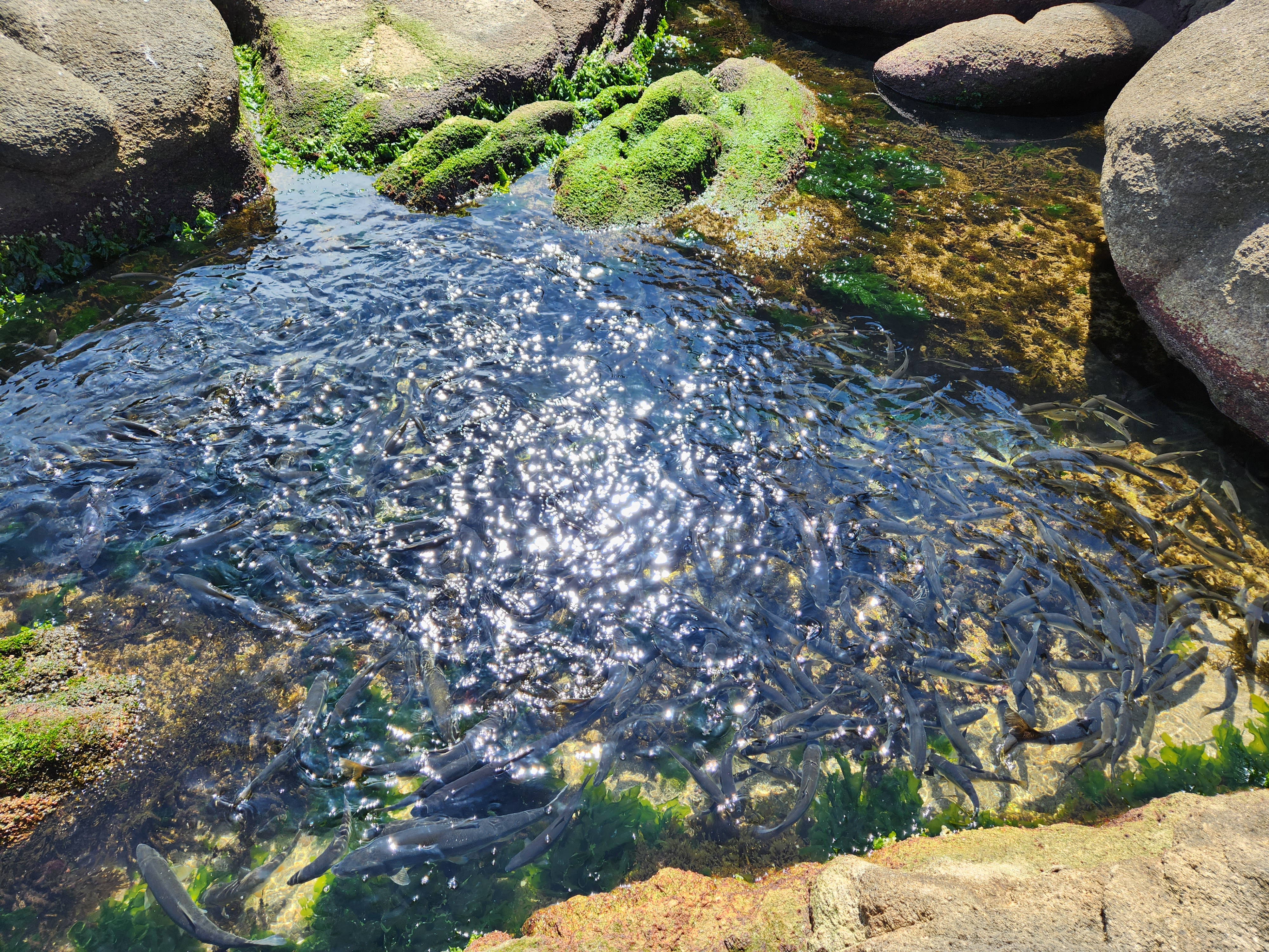 물보다 더 많아 보이는 물고기떼