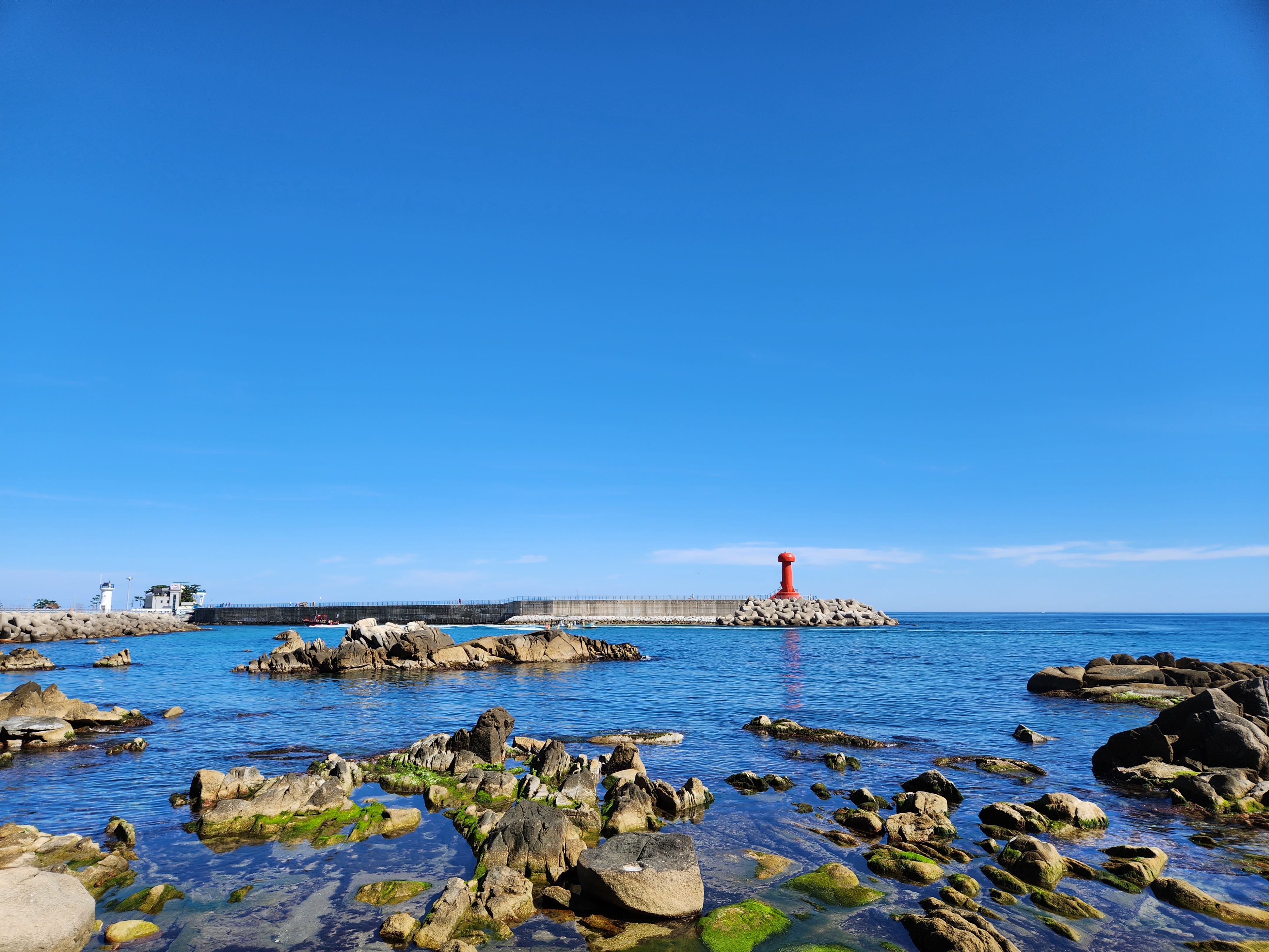 빨간 등대가 하늘과 바다를 구분지어 준다.