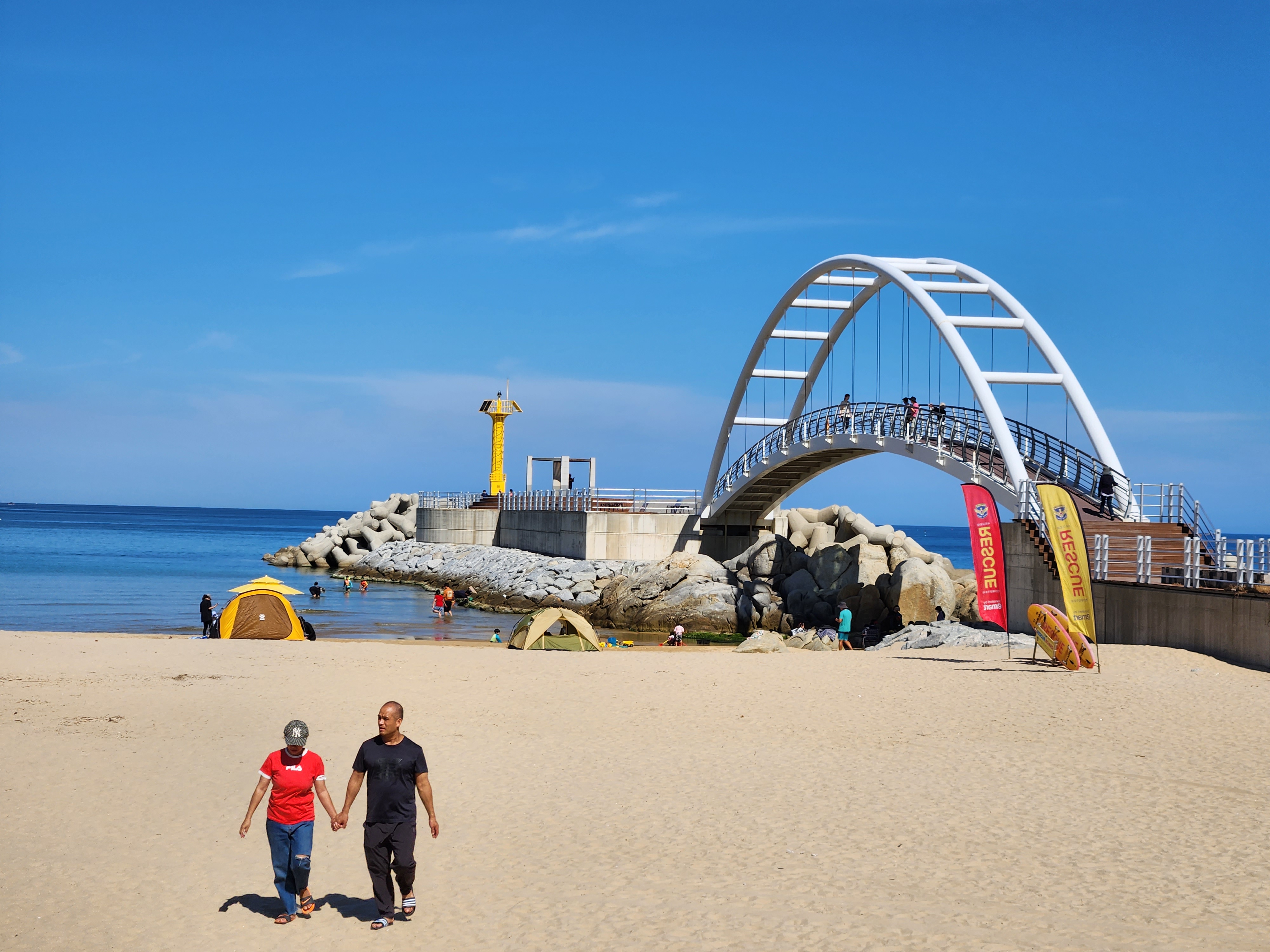 노란 등대로 연결된 예쁜다리를 건너가 본다.