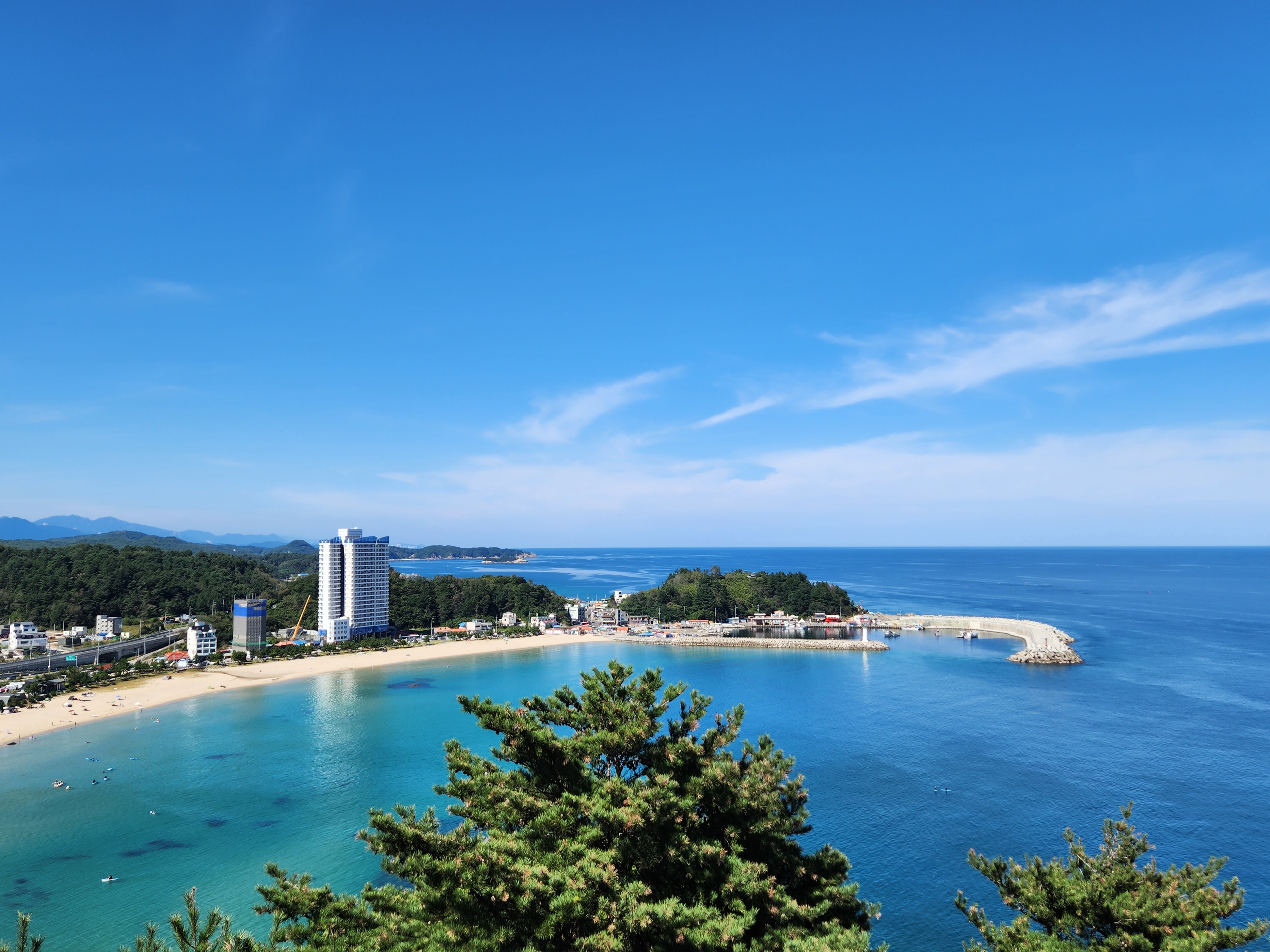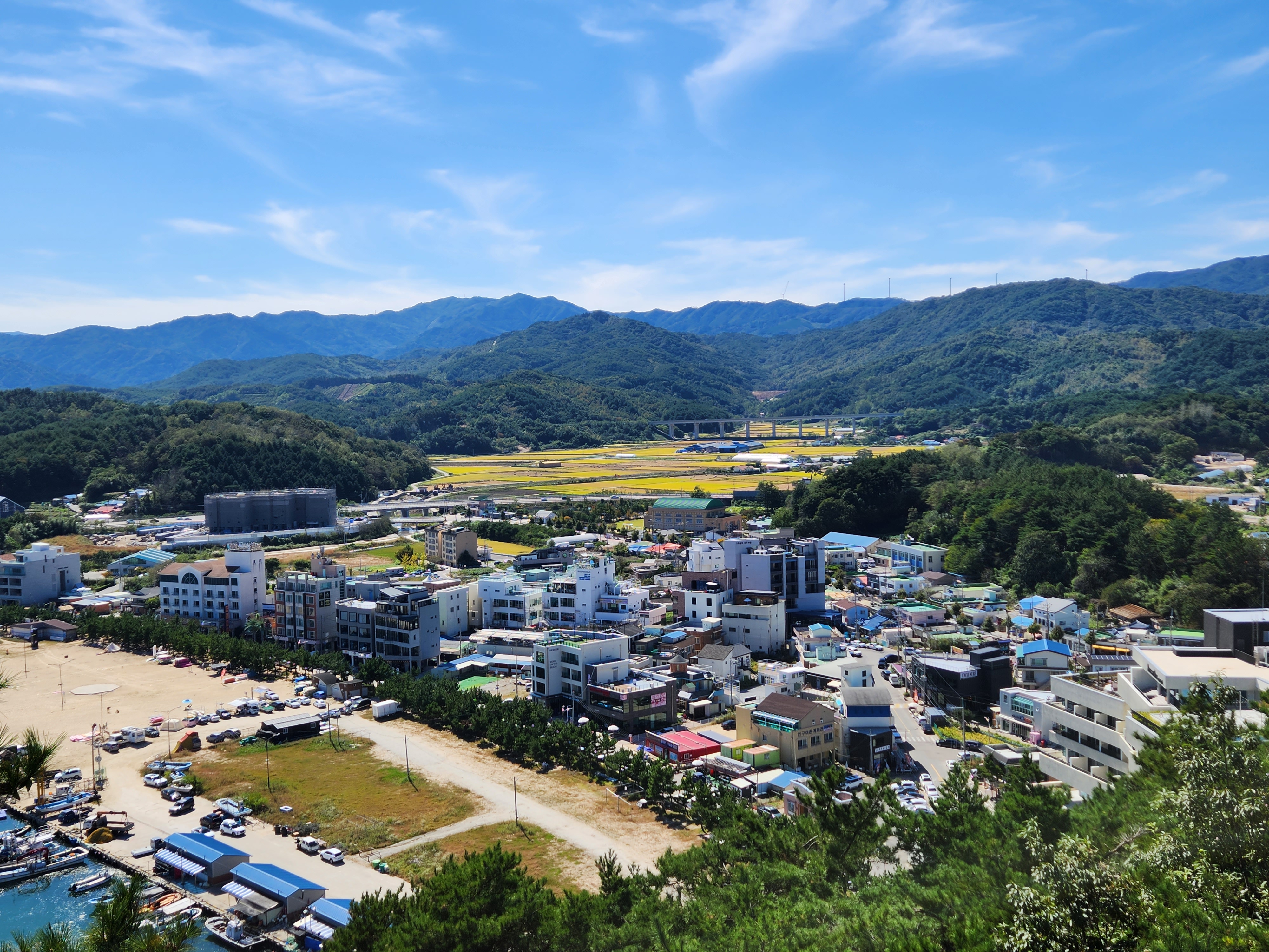 인구해변과 앞쪽 인구항이 보인다.