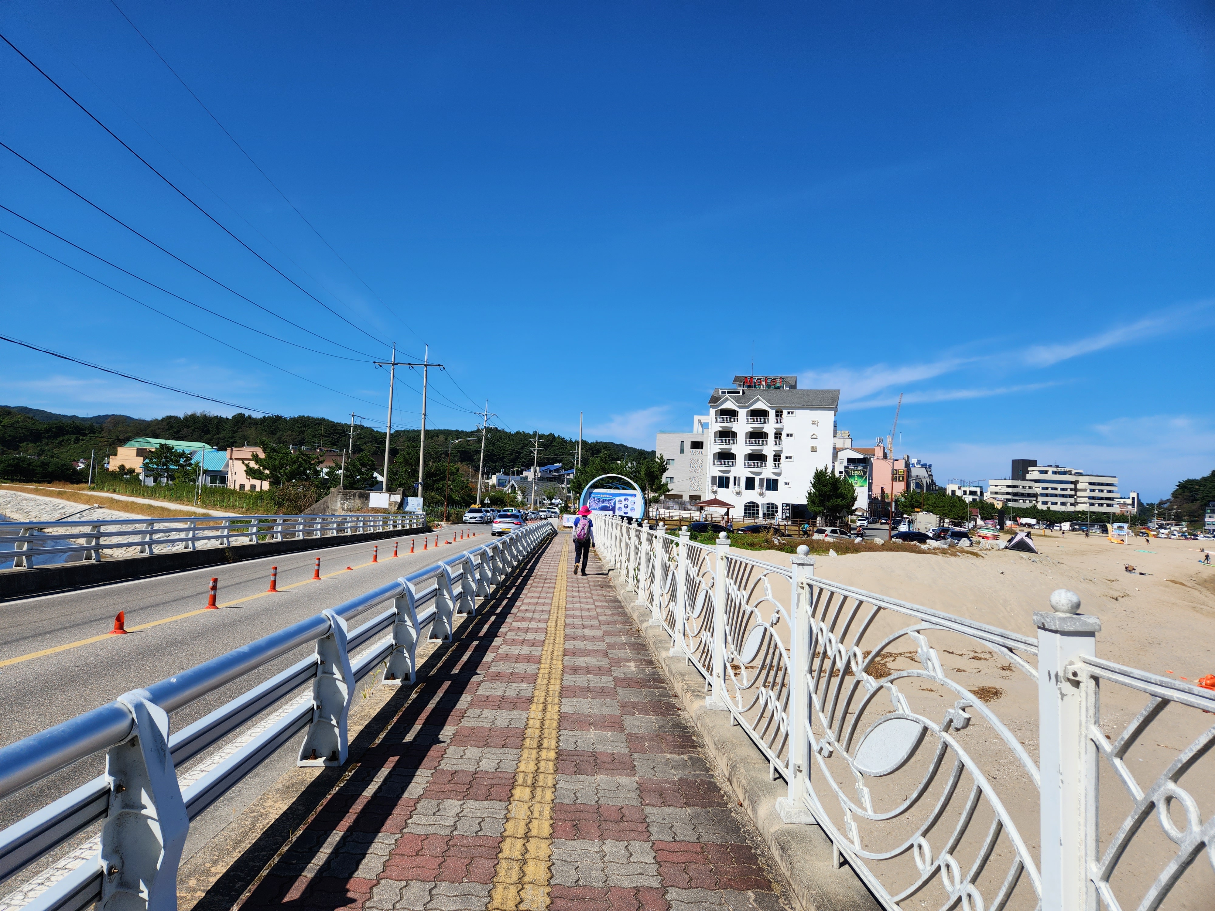 국내최장형 씨사이드 리조트 건설현장을 지나간다.