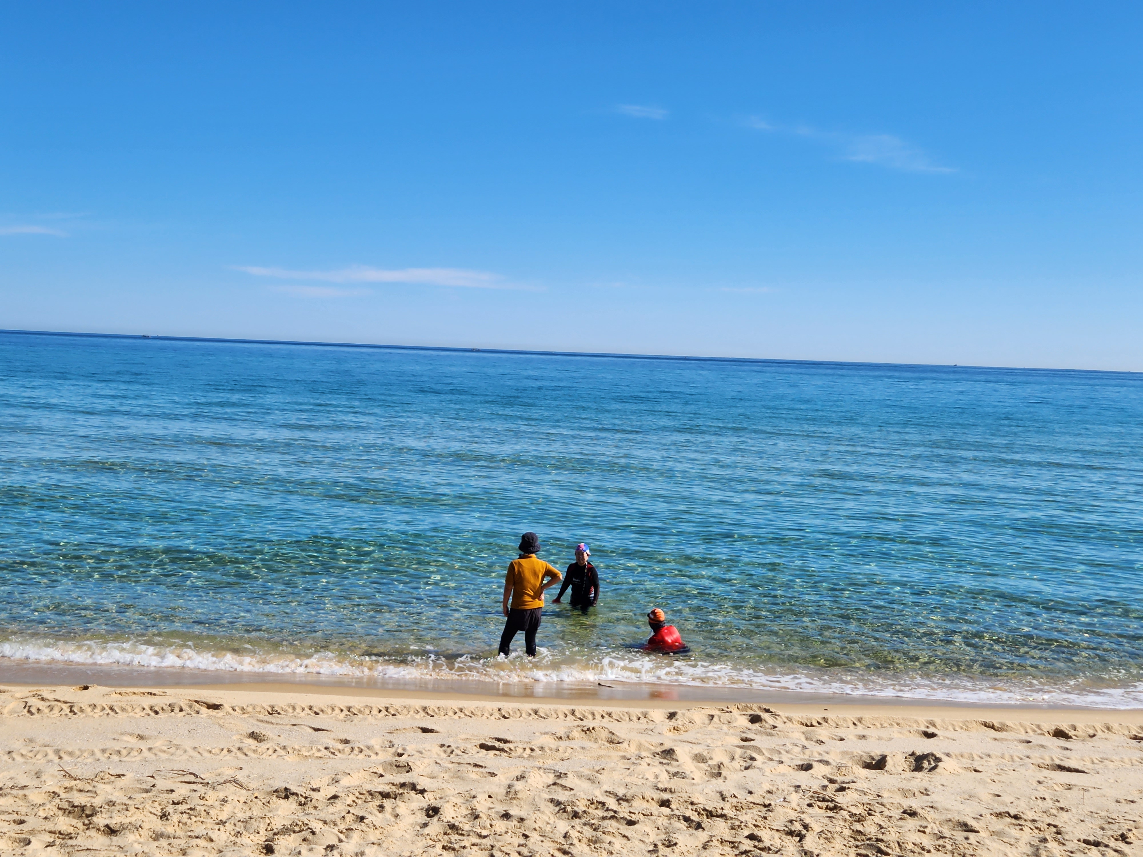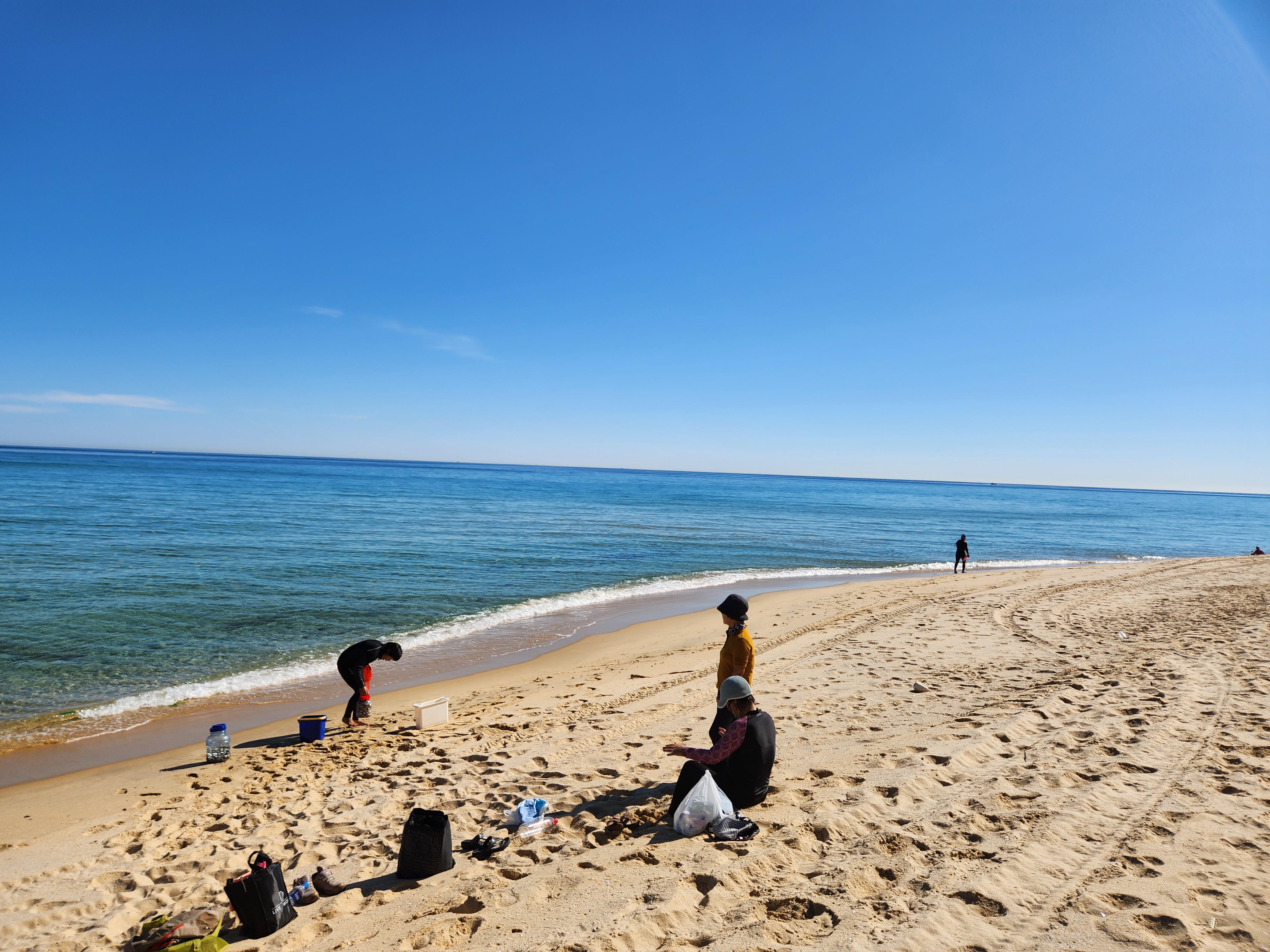 철 지난 주문진 바닷가엔 몇몇 사람만이