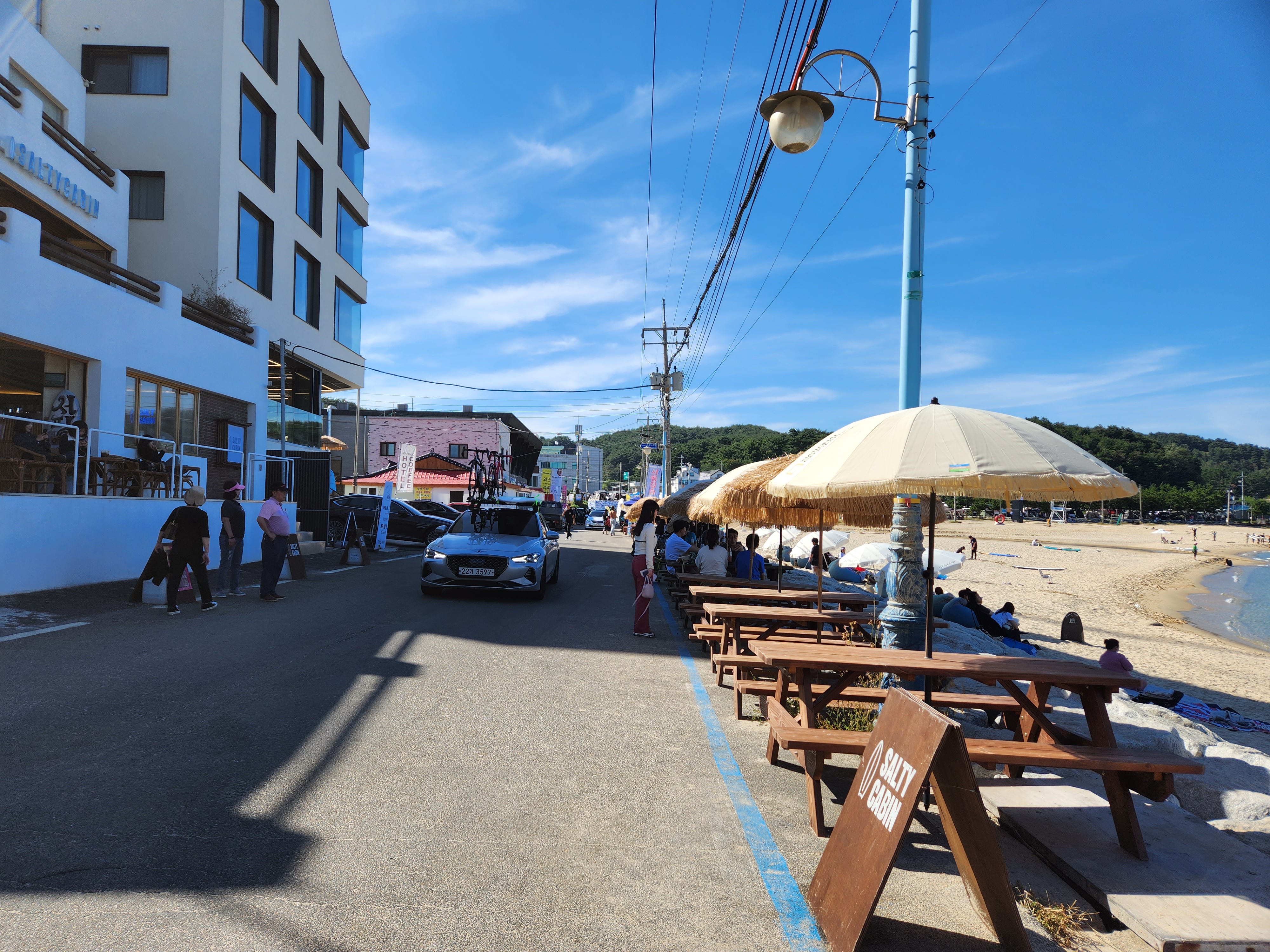 인구해변으로 나가 막국수를 먹고 휴식을 취한다.