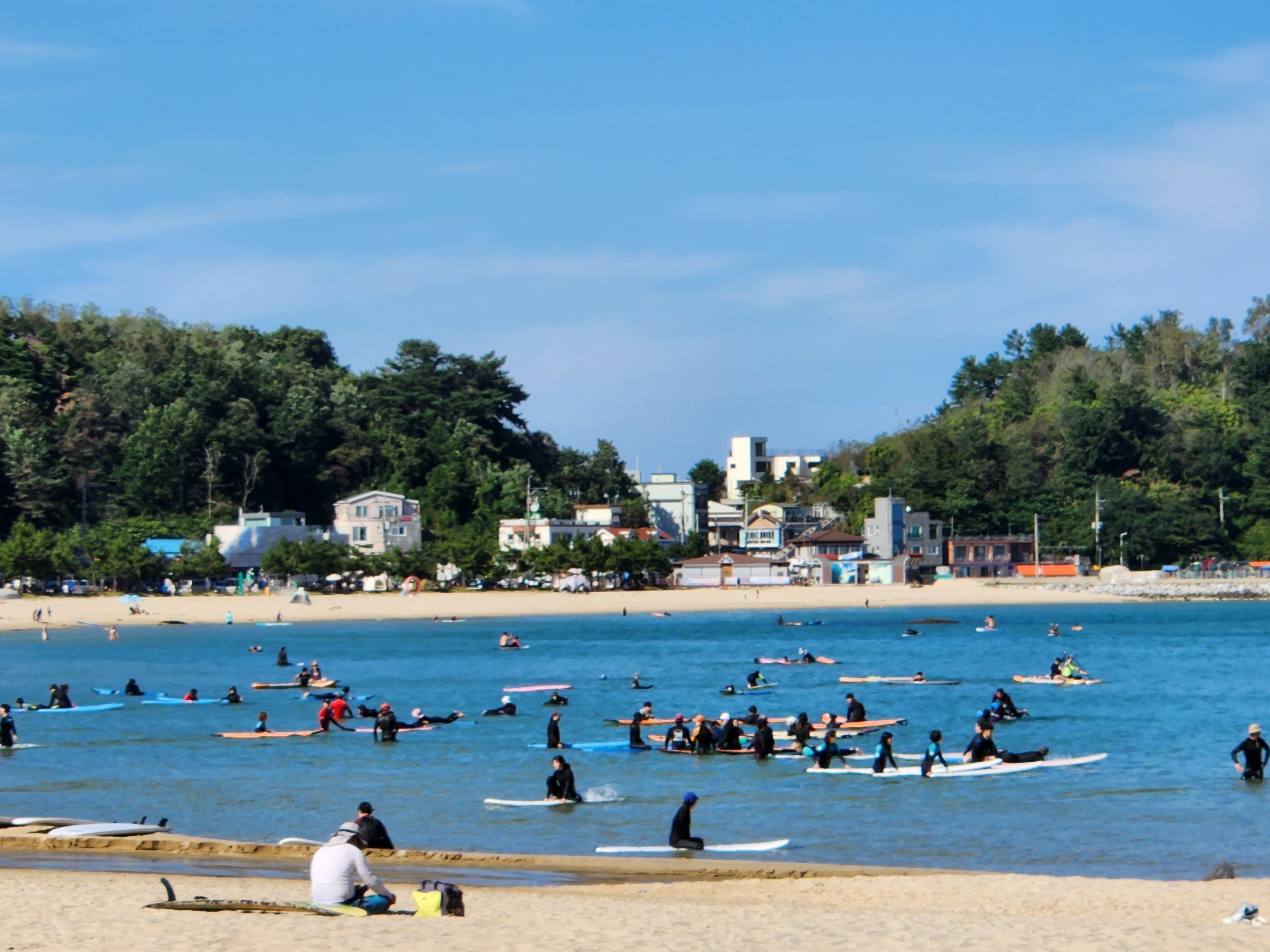 서핑을 배우고 즐기는 사람들로 가득한