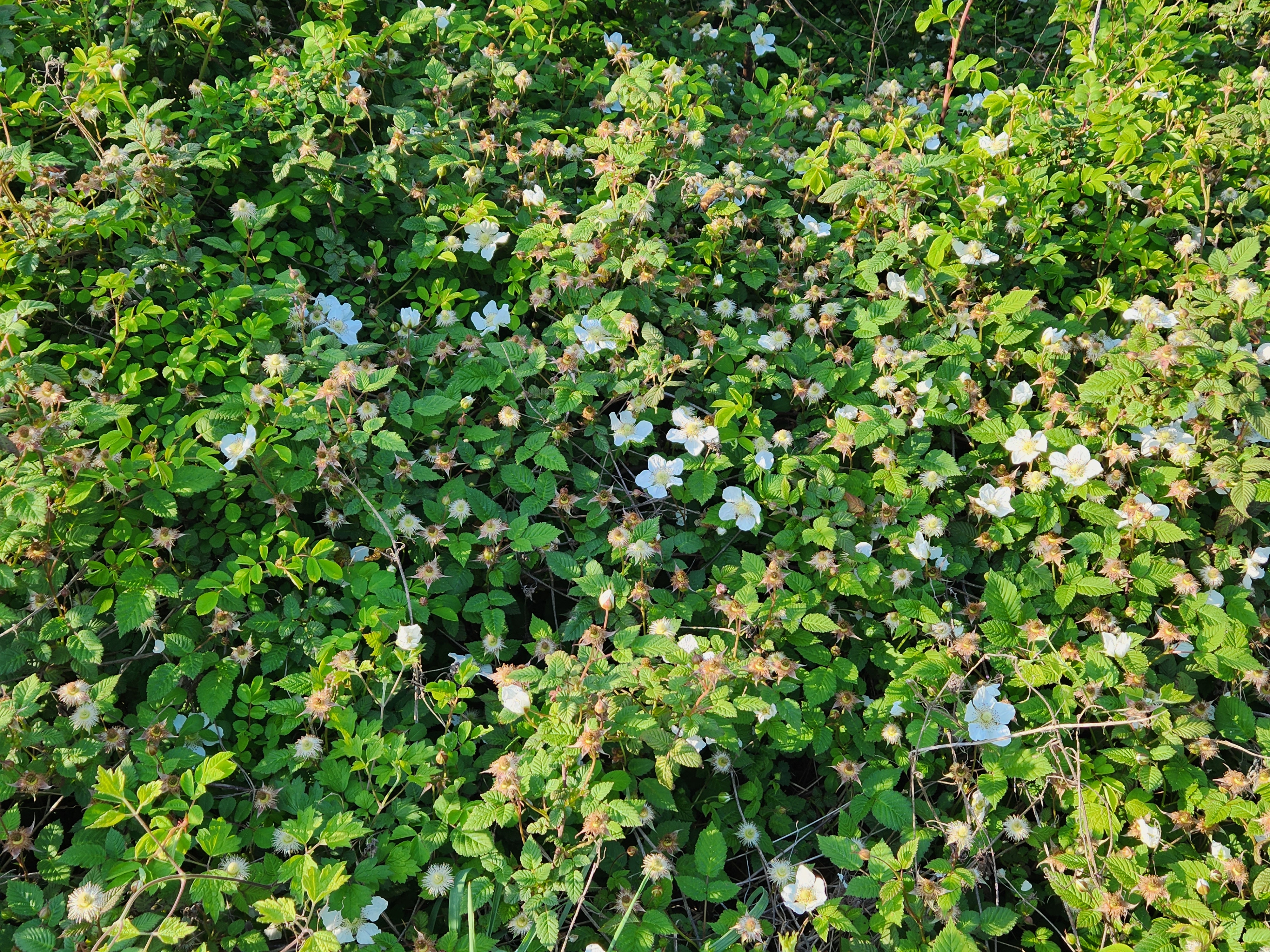 산딸기 꽃이 지면서 열매가 자라고 있다.