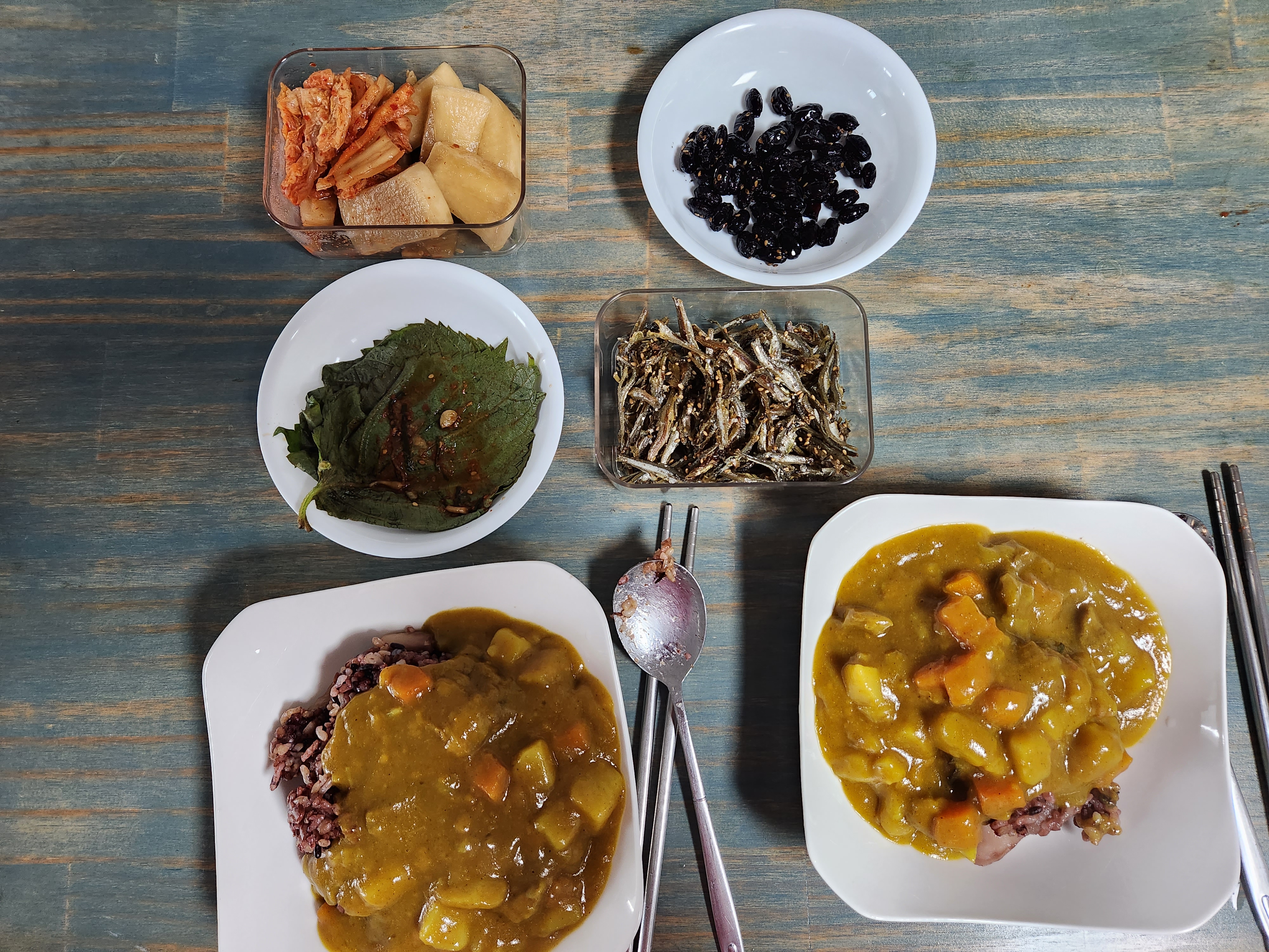 전복 장조림을 하고 저녁에 먹을 카레도 준비한다.