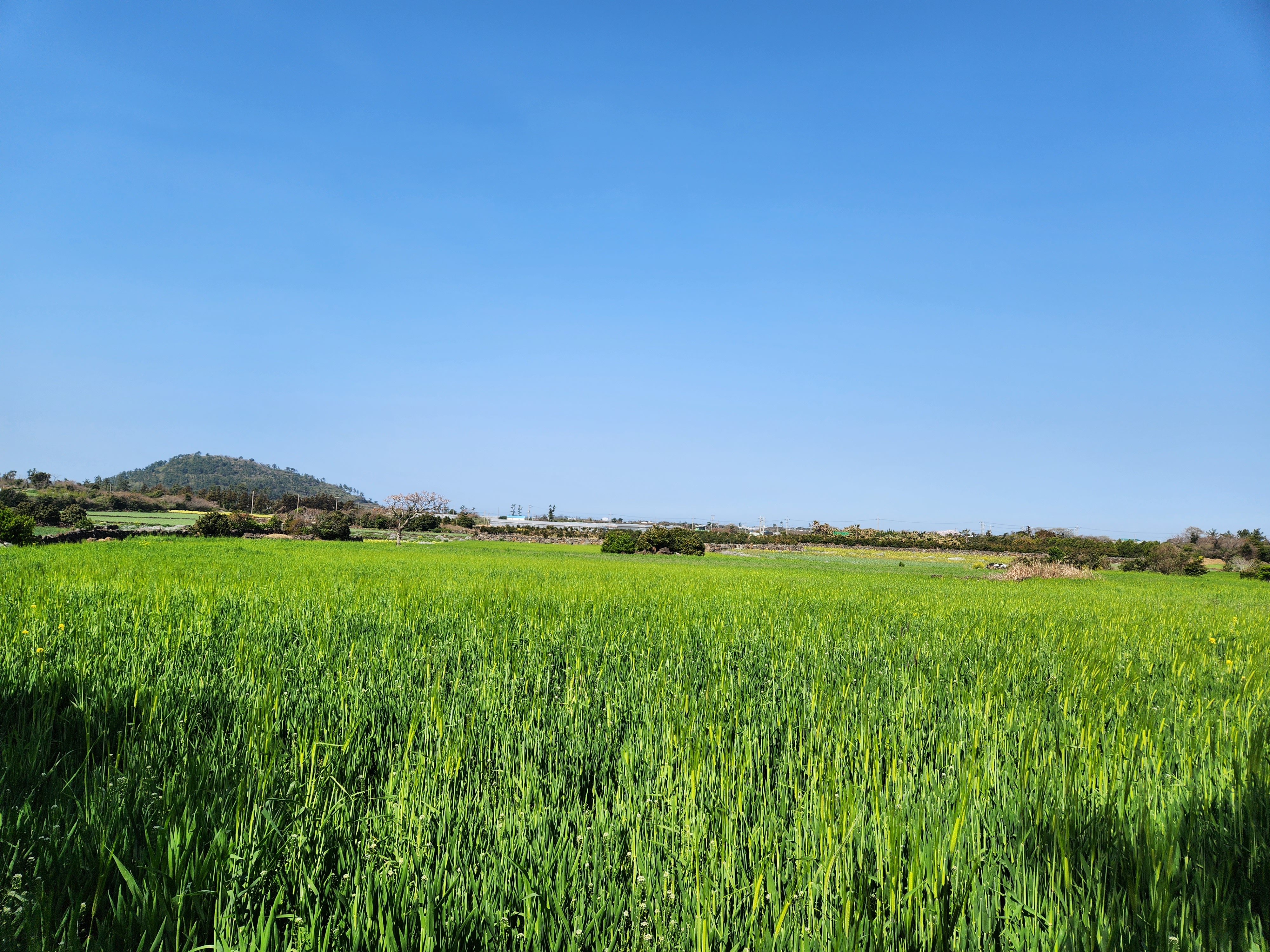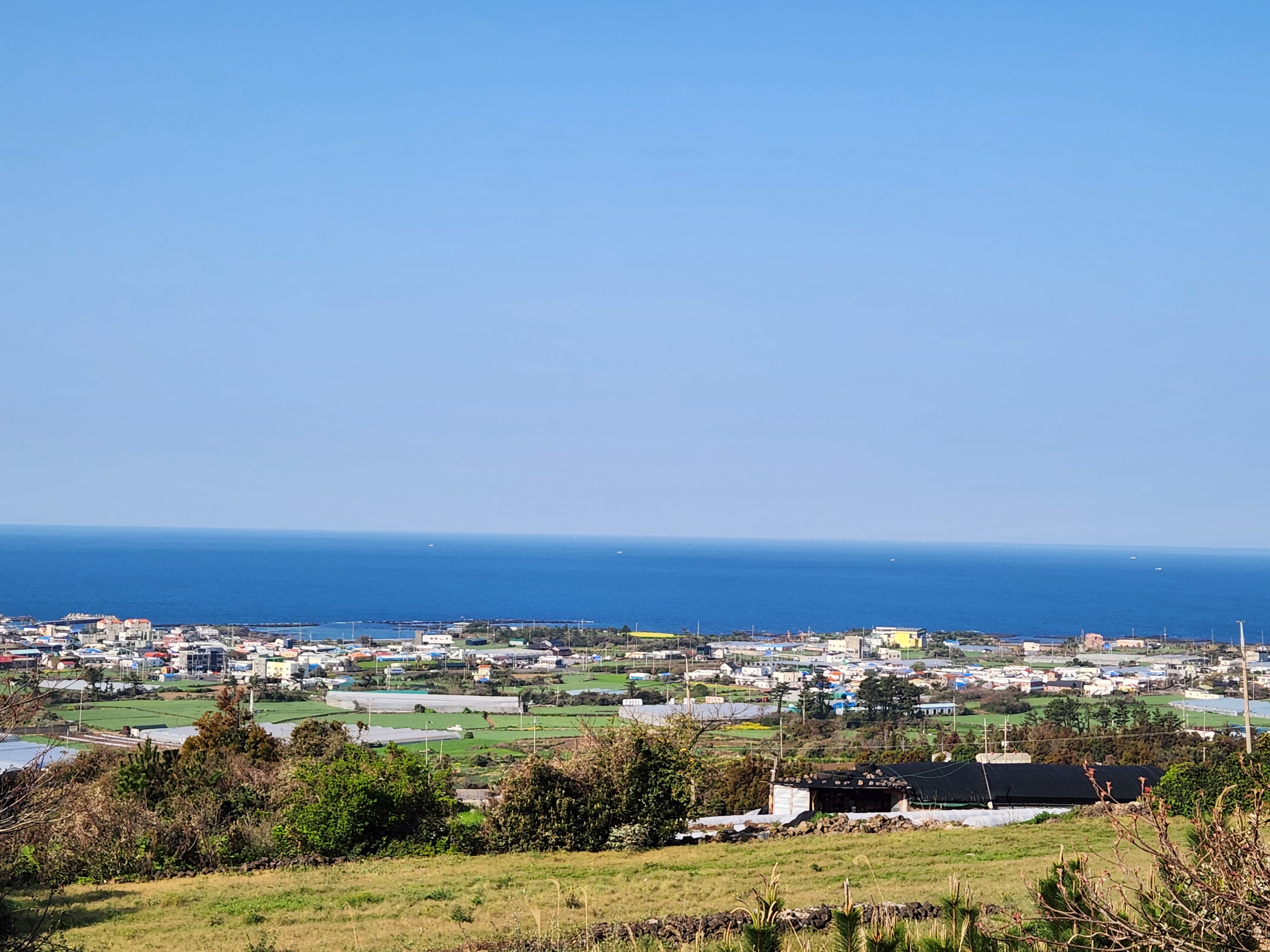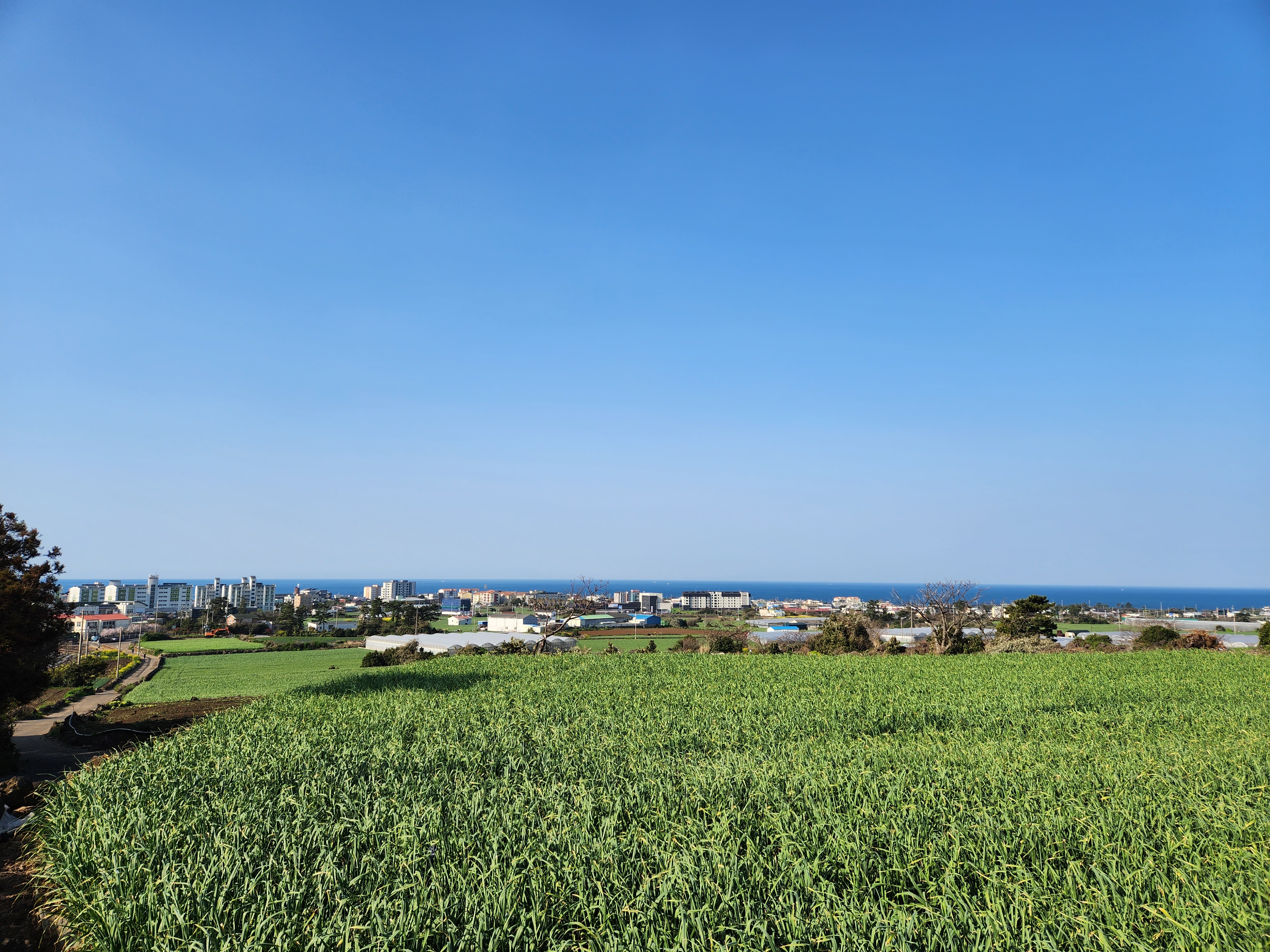 모슬봉으로 오르며 뒤 돌아본 대정읍 전경