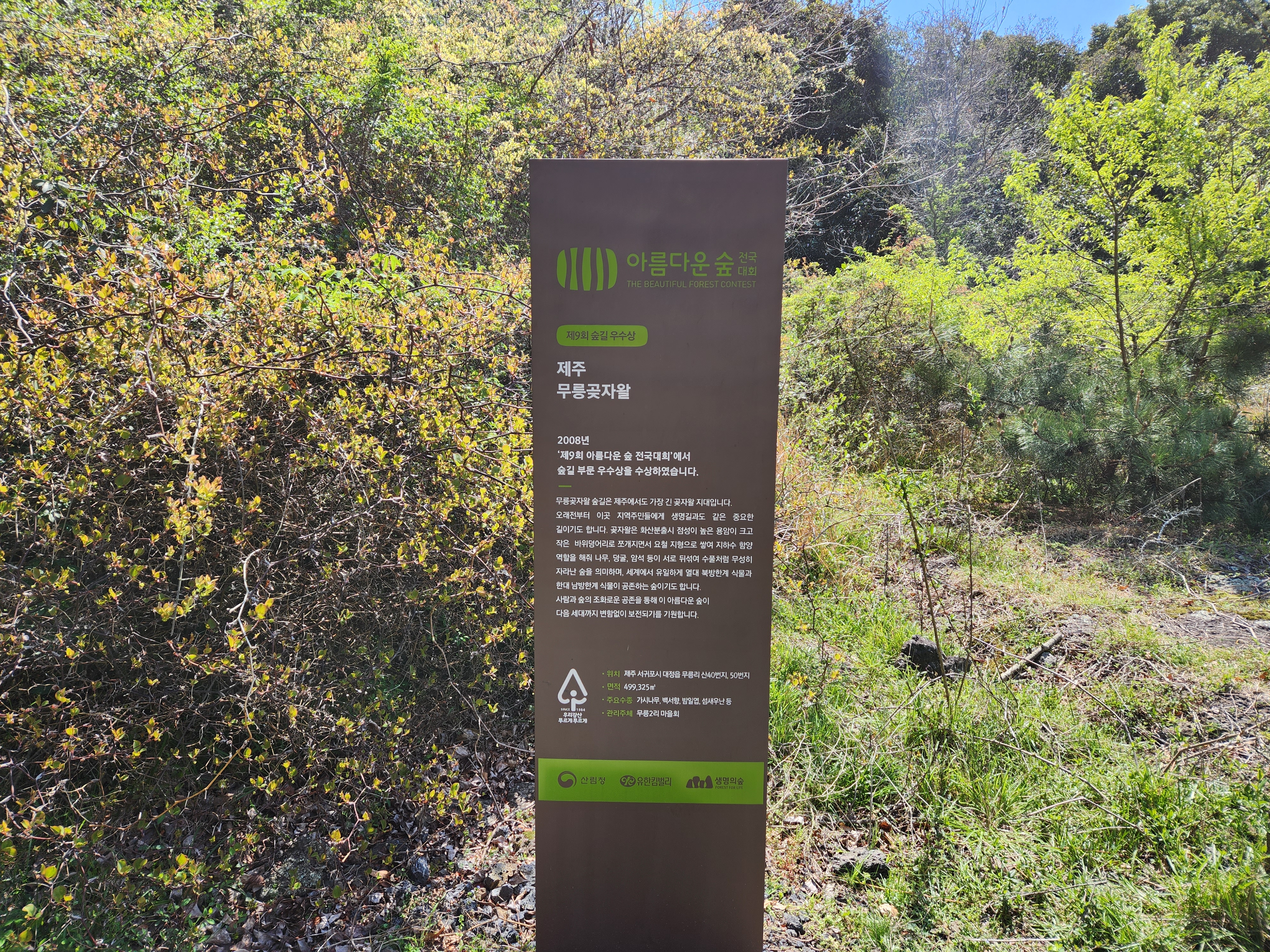 제 9회 아름다운 숲 길 부문 우수상 수상 푯말