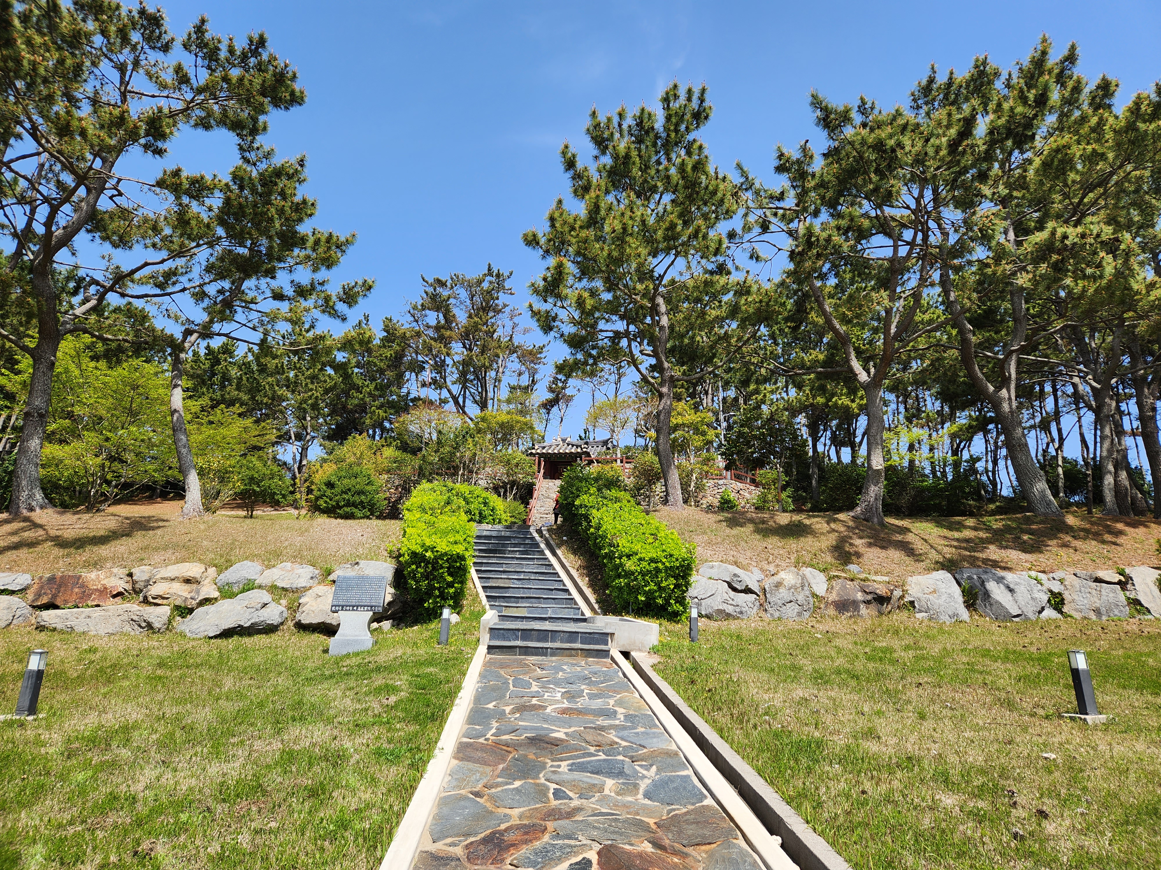 정자에서 잠시 쉬면서 숙소를 예약하려고