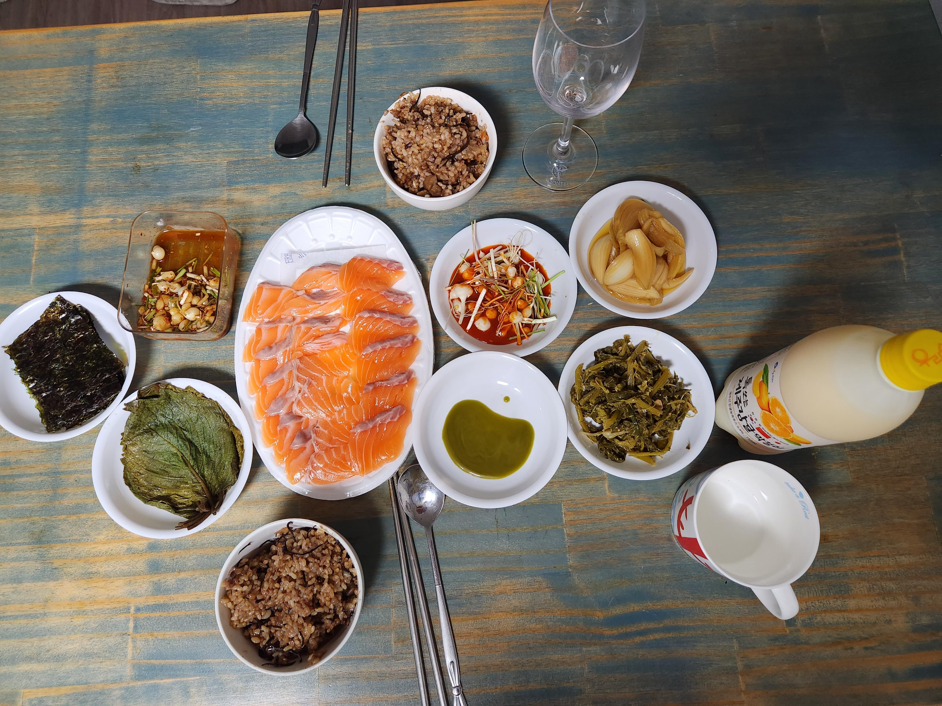 연어회 한 접시가 저녁을 풍성하게 해준다.