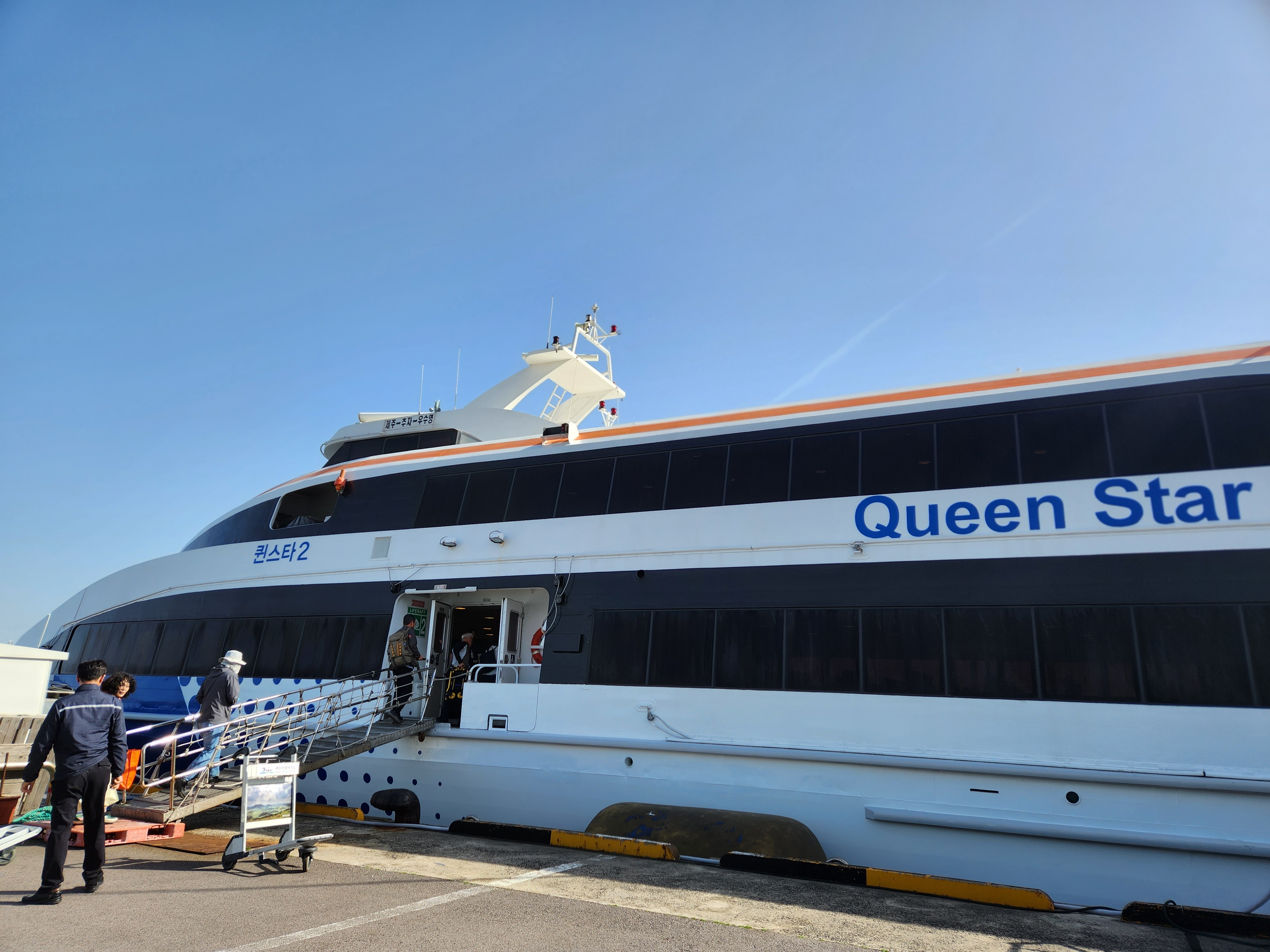 4시 40분 배를 타고 나가려면 바삐 걸어야 한다.